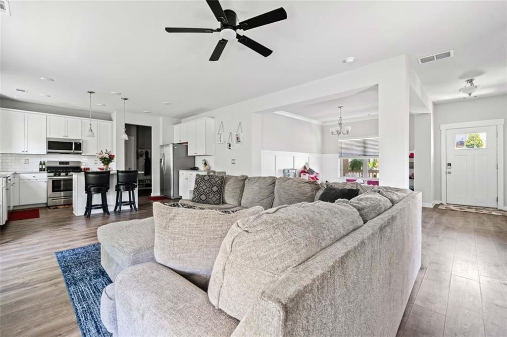 MAJOR PRICE ADJUSTMENT, MOTIVATED SELLER! Don’t miss the chance to make this open-concept, 5-year-young home yours! Meticulously maintained and truly move-in ready, it features LVP flooring on the main, brand-new carpet upstairs, and fresh neutral décor throughout. Bright natural light fills the home, and the covered porch opens to a level, fenced, private backyard—perfect for play or entertaining. The kitchen boasts abundant cabinetry, a huge walk-in pantry, and the refrigerator remains. Upstairs, the spacious Primary Suite offers a spa-like bath with a mega shower and dual rain shower heads. Three secondary bedrooms share a hall bath with double vanities, and the laundry room is conveniently upstairs as well. The professionally finished terrace level is a showstopper: a large rec room, bar area with sink and beverage refrigerator, a bedroom/bath suite, and storage space—plus walkout access to the oversized patio and yard backing to greenspace. Additional upgrades include new attic insulation, two hot water heaters, and near-permanent rubber mulch outdoors. Located in an active swim/tennis community with sidewalks, in the highly sought-after West Forsyth High School District, and close to shopping, dining, and major commuter routes—this home is a perfect 10! Preferred lender, Don Thelen, with Guaranteed Rate Affinity, will offer up to $2,500 in lender credit for closing costs, pre-paids, escrows or home warranty with approved offer. Conditions apply.