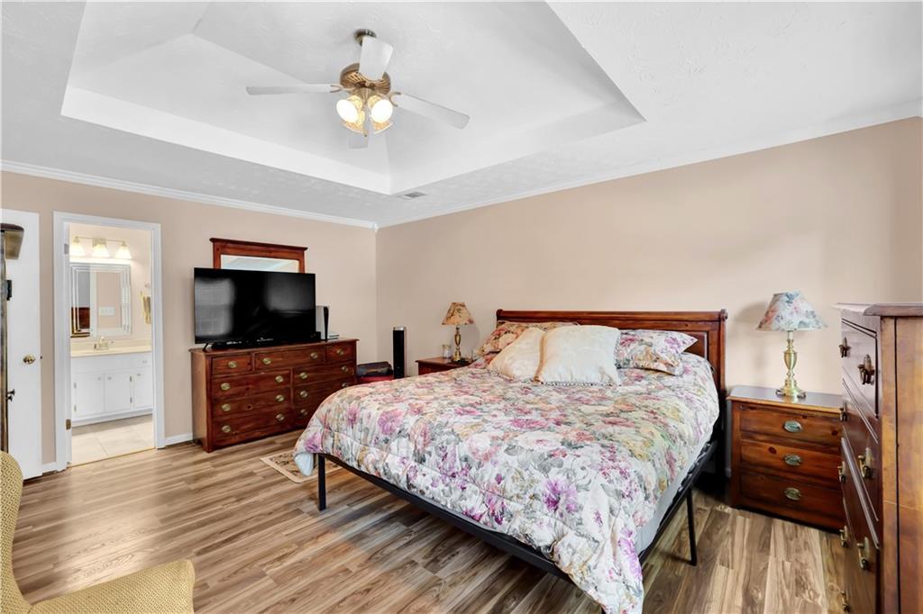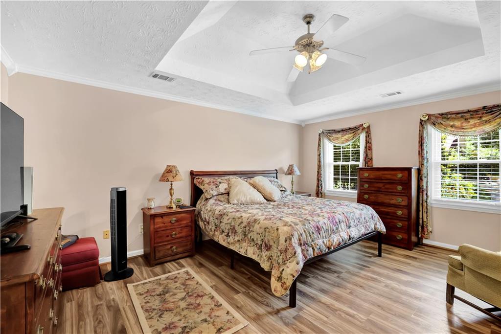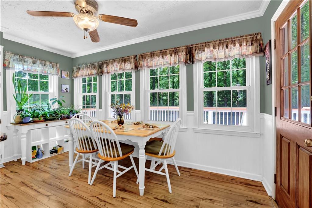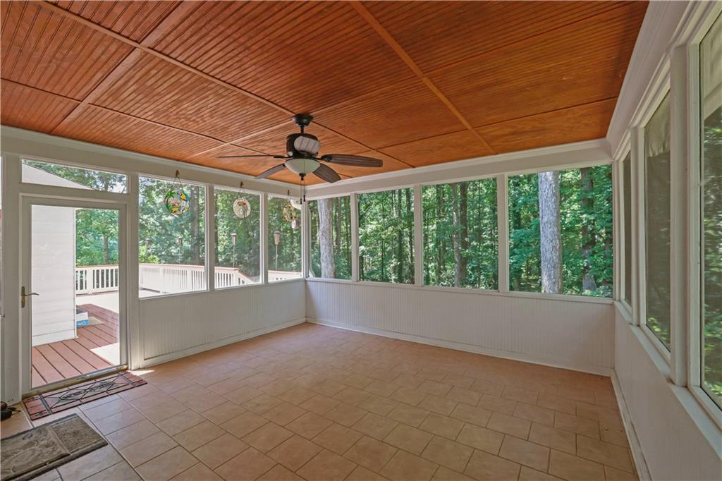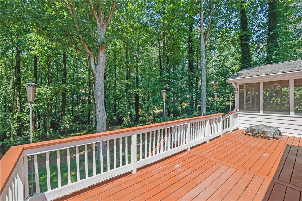 Beautifully updated and maintained 3-bedroom, 2.5-bathroom home in a park-like setting on a minimal traffic 0.67-acre lot with no HOA in Suwanee's Collins Hill School District. Energy-efficient upgrades include Hardie Plank exterior and argon gas tinted double-pane windows. Gas fireplace. Bonus 256 sf (16 x16) insulated all-season room (not included in total sf) opens to a huge 330 sf deck and a 6-person hot tub with built-in entertainment system. New Rheem 2T AC system. Basement: Extra storage/storm shelter in the 316 sf interior-access basement (also not included in total sf). Chef's kitchen features a gas stove, new dishwasher, French door refrigerator, food prep island, granite surfaces, plenty of cabinet storage. Laundry closet with front load washer and gas frontload dryer with matching pedestals. Engineered hardwood flooring provides an elevated low-maintenance finish. The owner's suite boasts crown molding, tray ceiling, spacious walk-in closet, and a spa-like luxurious marble tile shower. With ample space to entertain and a private backyard, this home offers the perfect blend of southern charm, comfort, privacy, and convenience. Don’t miss the chance to make this stunning property yours!