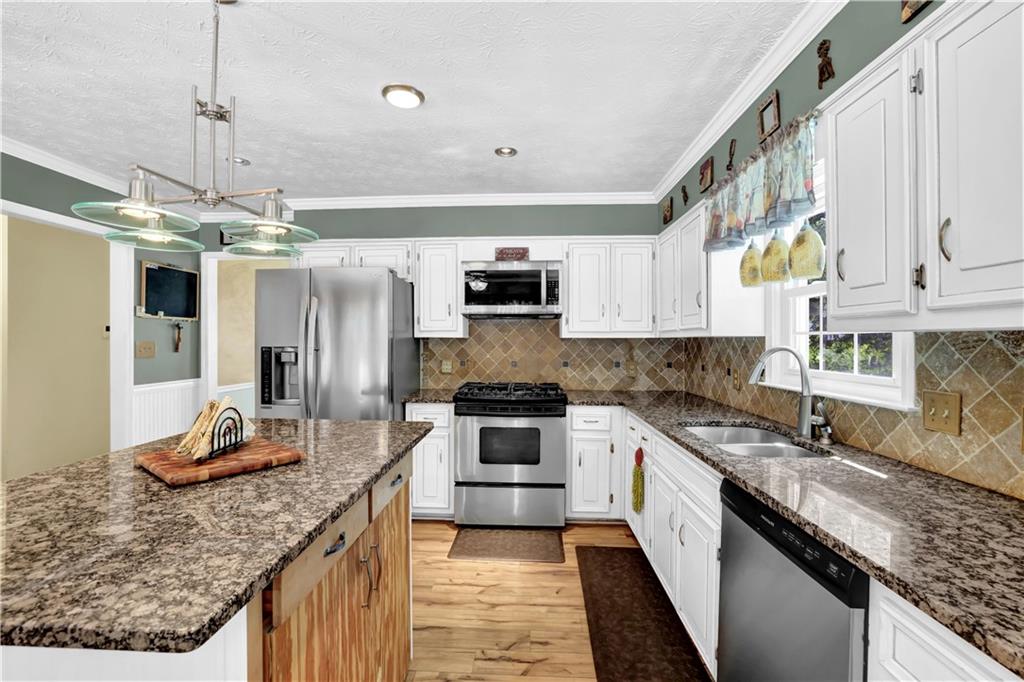 - KitchenCabinets White, Eat-in Kitchen, Kitchen Island, Pantry