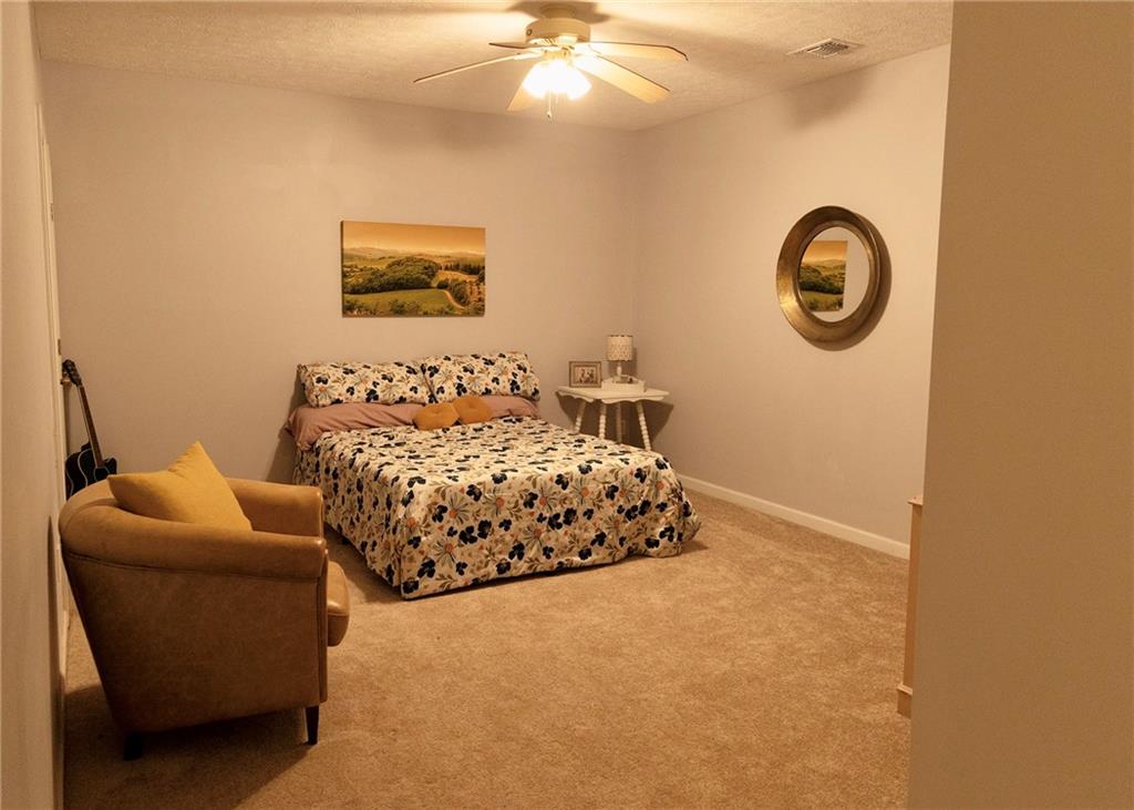 Step into this beautifully maintained home that welcomes you with charm and character at every turn! Soaring ceilings and large windows fill the space with natural light, creating a bright and airy feel. The main-level master suite offers comfort and convenience, while two additional bedrooms upstairs provide plenty of space for family or guests. Downstairs, the finished basement features its own bedroom and bathroom--perfect for a guest suite, home office, or cozy retreat. Nestled on a private, fenced-in half-acre lot, the backyard feels like your own personal oasis--peaceful, quiet, and perfect for relaxing or entertaining. This gated community offers a wealth of amenities, including 3 lakes, water skiing, fishing lake, 2 restaurants, marina, tennis courts, pickle-ball courts, 2 pools, private beach, walking trails, golf course, 24/7 security, recreation center, and country club.