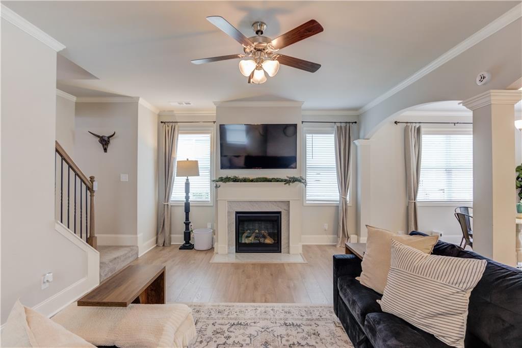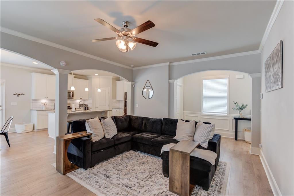 MUST SEE!!! Charming home in the dream neighborhood of Sterling on the Lake! Amazing opportunity to enjoy resort like AMENITIES...including multiple pools and playgrounds, tennis courts, clubhouse, fitness center, walking paths and its very own Lake Sterling w/private dock! Built in 2020 this stylish 4 bed/2.5 bath has a luxurious feel. Step in to the open concept, with BRAND NEW FLOORING, featuring an eat-in kitchen, with high end appliances (Samsung touch screen fridge) & a large island overlooking the living room and its cozy fireplace. The main floors natural & spacious flow steps out to a patio & large fully fenced back yard, ideal for entertaining. Head upstairs to the oversized primary bedroom and walk-in closet with a massive bath featuring dual vanities and a separate tub/shower combo, perfect for relaxation. Find 3 additional upstairs bedrooms and a full bath. This home is the perfect combo of style, comfort and charm. Don't miss out on a chance to live in this highly sought after neighborhood and its 75 acre lake and endless amenities. Close to top rated schools, dinning and Lake Lanier this LOCATION LOCATION LOCATION can't be beat. Schedule a showing to come see this flawless smart home today!