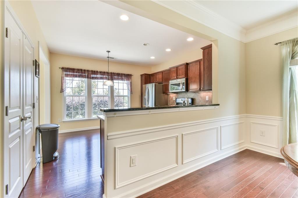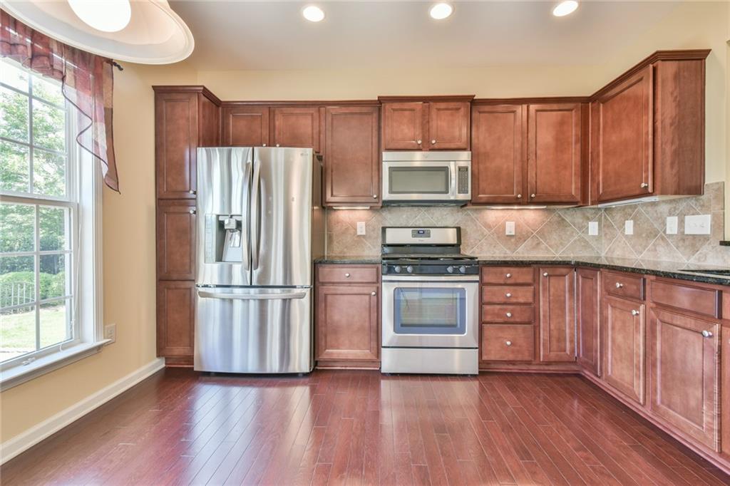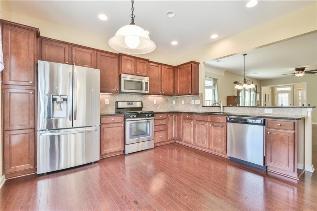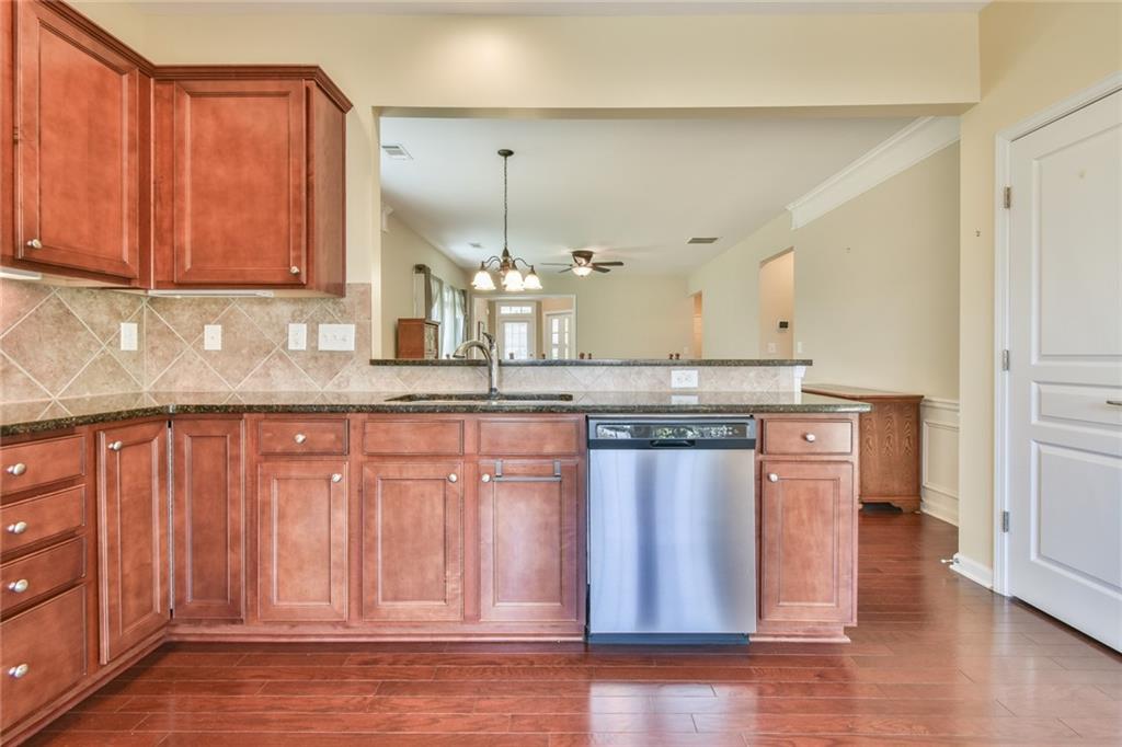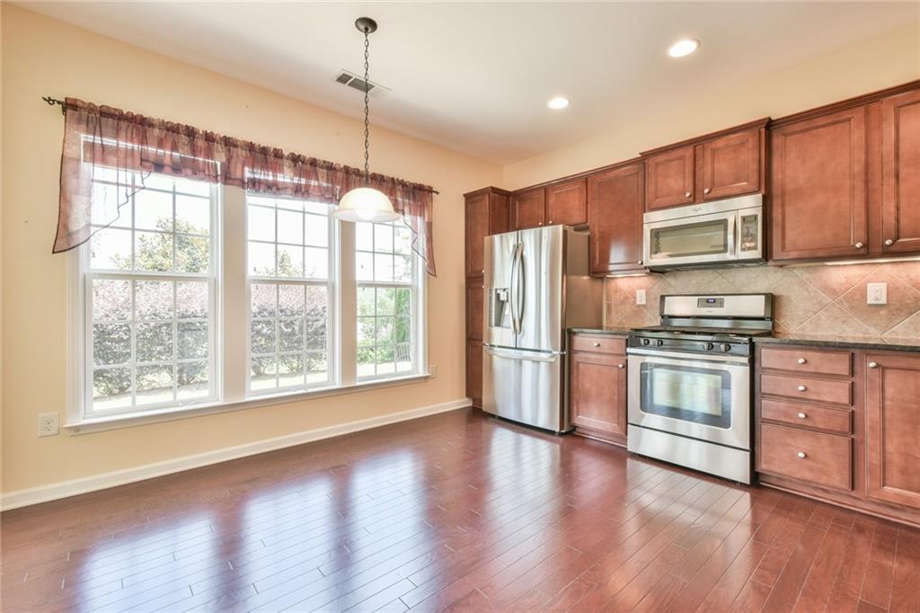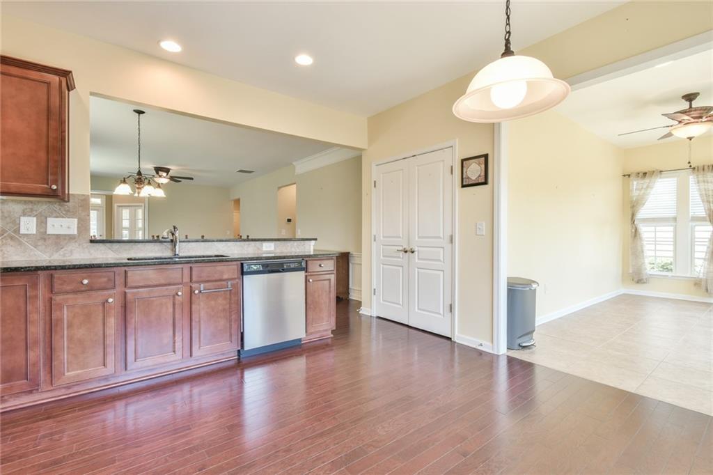 - KitchenCabinets Stain, Eat-in Kitchen, Stone Counters, View to Family Room