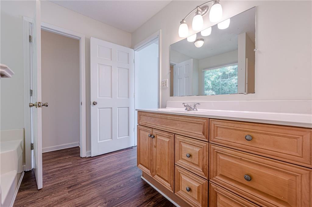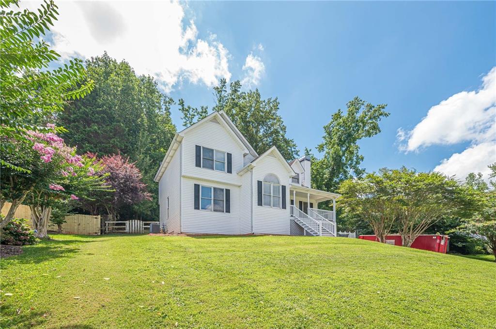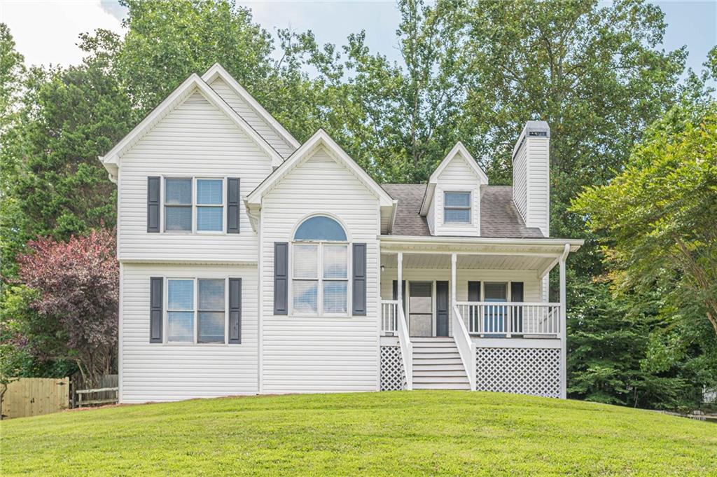 Gorgeous and unique home located in the HOA free community of Kensley Park in Dallas Georgia. As soon as you step up to this home you're greeted by covered rocking chair front porch. Inside dark luxury vinyl plank flooring throughout and neutralL walls means its awaiting your unique touch. Fireside family room is there as you enter with stone fireplace. Dining area is overlooked by the white cabinet kitchen with laminate floorings, tile backsplash and stainless steel appliances. Primary suite on the main is well sized with private bath, walk in closet and private water closet. Upstairs includes three full bedrooms that share a full bath. Downstairs includes finished basement with bonus room and bathroom. Two car drive under garage means storage is plentiful. Private backyard, located near shopping, restaurants, schools and more.