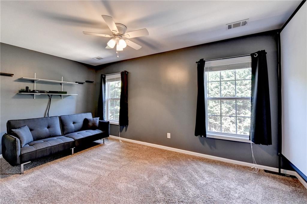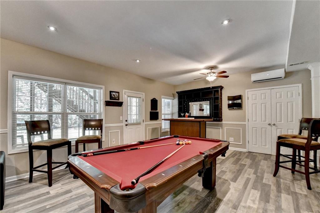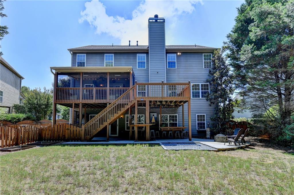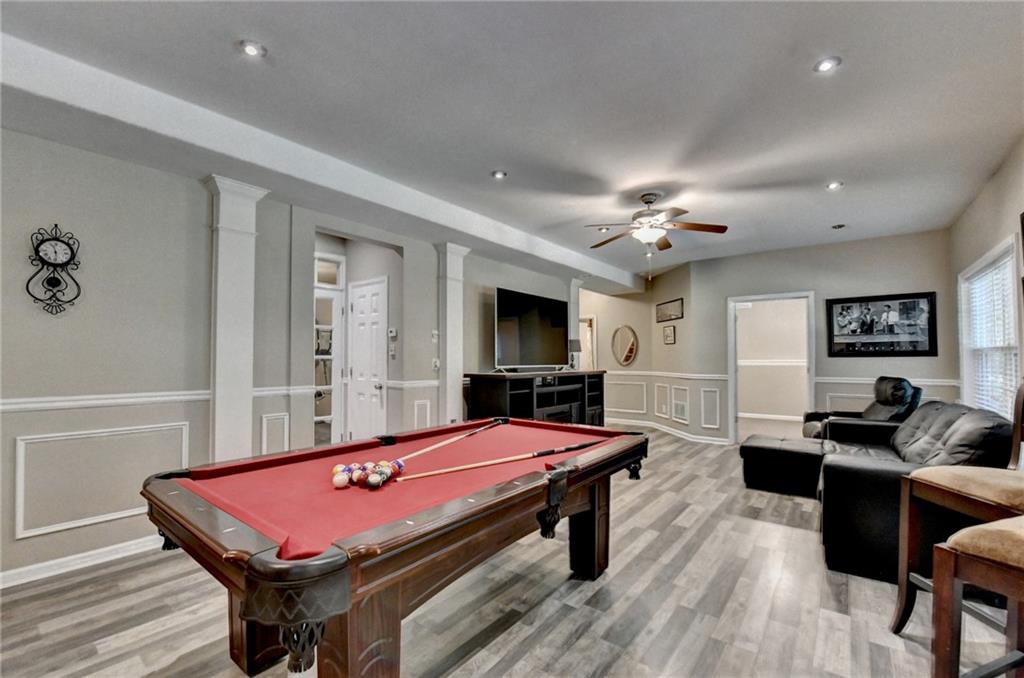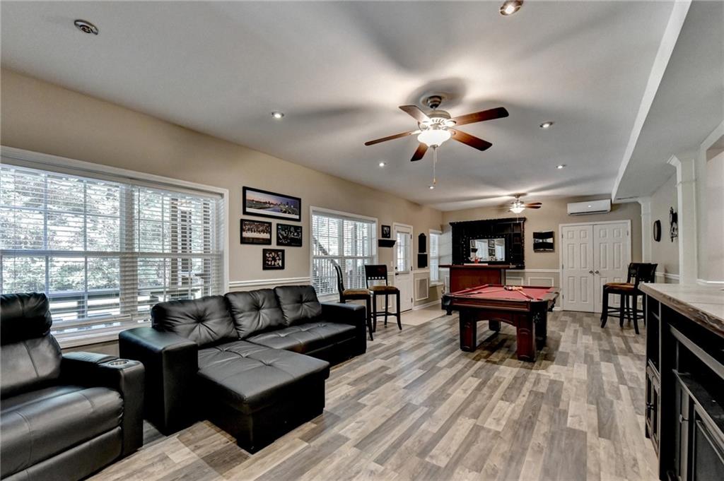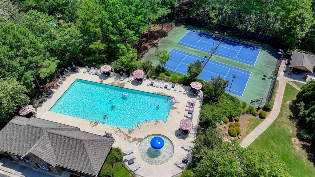 PRICE IMPROVEMENT!! Family friendly BEAUTY! ---- Welcome to this beautiful 6-bedroom, 4 full bath home in the sought-after award-winning South Forsyth School District It's a true must-see! Bright entryway with gorgeous, upgraded hardwood floors throughout, soaring foyer, a quiet office or possible main level 7th bedroom/flex space, that is connected to a full bathroom on main level. Formal dining room perfect for hosting, and a quiet living room with pocket sliding doors for privacy. Gourmet kitchen includes 2 pantries and an abundant center island for family gatherings that connects to the open family room, screened-in porch with skylights off the kitchen leading to a spacious deck for grilling and entertaining. Continue your tour to the finished daylight walkout basement you have been waiting for!! Entertainment paradise to please everyone - Includes an exercise room, kitchenette, pool table, bar, bedroom and full bath, along with 2 abundant storage rooms! Enjoy a fun family movie night in the upstairs in-home theater! Ample driveway parking for up to 6 cars, garage is extended to 2 and a half size with an exterior door for outside access. Private backyard with firepit area, putting green, under deck outdoor kitchen and game area with built in wrap around bar! This home has it all! upgraded roof with 25-year shingle warranty and all new or newer windows. Fun community neighborhood with great amenities for swimming, tennis and kids play area! All of this plus the refrigerator, futon and couch remain with the house! This home combines traditional style with modern touches, making it perfect for any family size. 3K lender credit available with Summit Funding! Come and take a look!