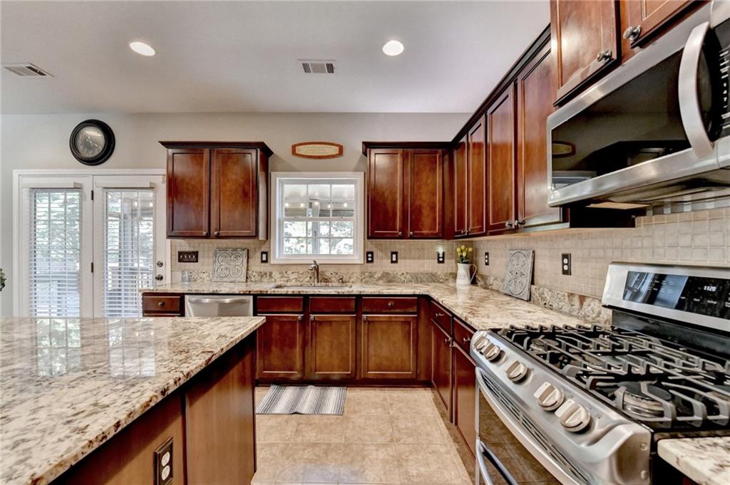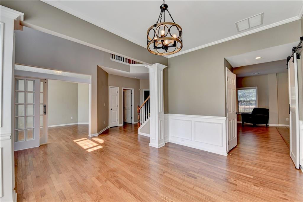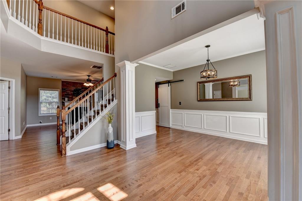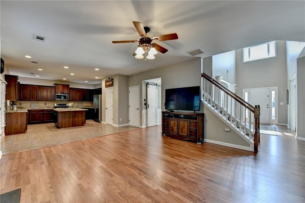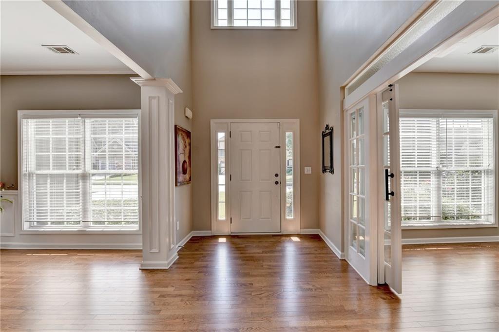PRICE IMPROVEMENT!! Family friendly BEAUTY! ---- Welcome to this beautiful 6-bedroom, 4 full bath home in the sought-after award-winning South Forsyth School District It's a true must-see! Bright entryway with gorgeous, upgraded hardwood floors throughout, soaring foyer, a quiet office or possible main level 7th bedroom/flex space, that is connected to a full bathroom on main level. Formal dining room perfect for hosting, and a quiet living room with pocket sliding doors for privacy. Gourmet kitchen includes 2 pantries and an abundant center island for family gatherings that connects to the open family room, screened-in porch with skylights off the kitchen leading to a spacious deck for grilling and entertaining. Continue your tour to the finished daylight walkout basement you have been waiting for!! Entertainment paradise to please everyone - Includes an exercise room, kitchenette, pool table, bar, bedroom and full bath, along with 2 abundant storage rooms! Enjoy a fun family movie night in the upstairs in-home theater! Ample driveway parking for up to 6 cars, garage is extended to 2 and a half size with an exterior door for outside access. Private backyard with firepit area, putting green, under deck outdoor kitchen and game area with built in wrap around bar! This home has it all! upgraded roof with 25-year shingle warranty and all new or newer windows. Fun community neighborhood with great amenities for swimming, tennis and kids play area! All of this plus the refrigerator, futon and couch remain with the house! This home combines traditional style with modern touches, making it perfect for any family size. 3K lender credit available with Summit Funding! Come and take a look!