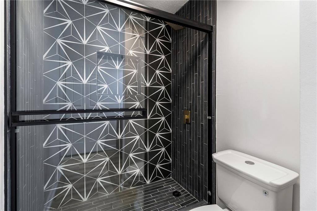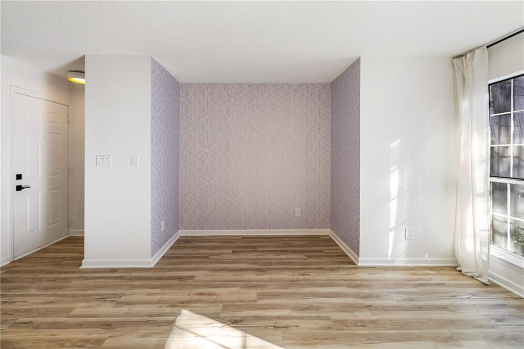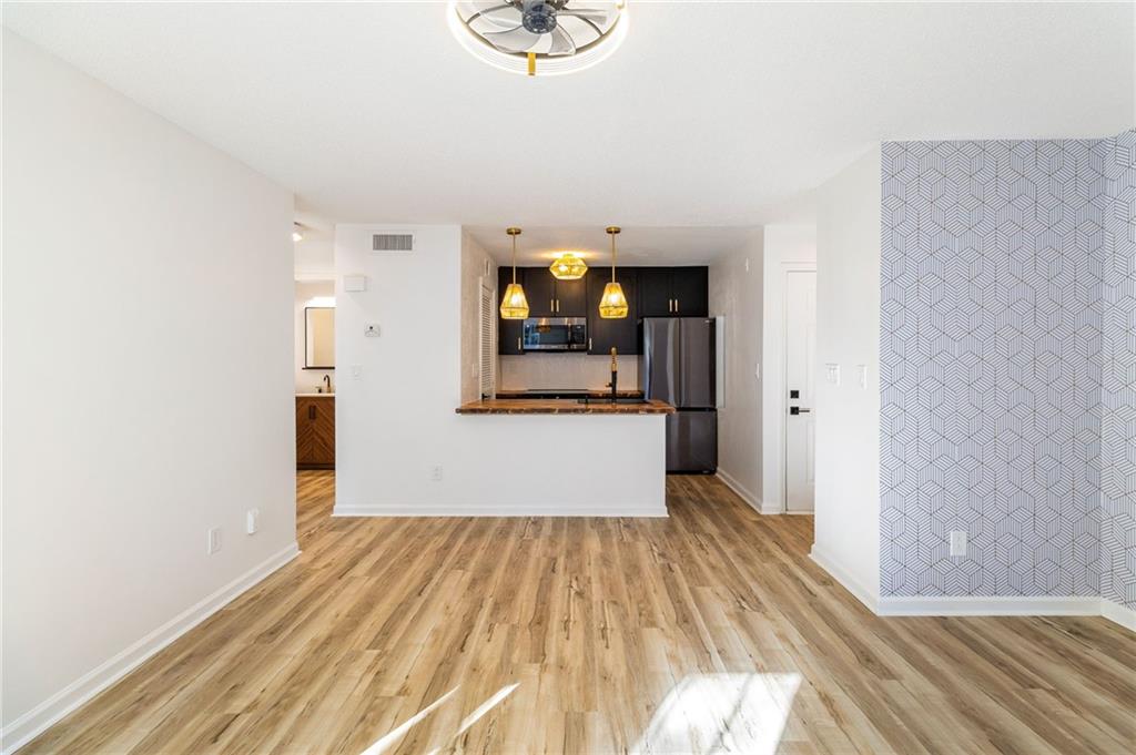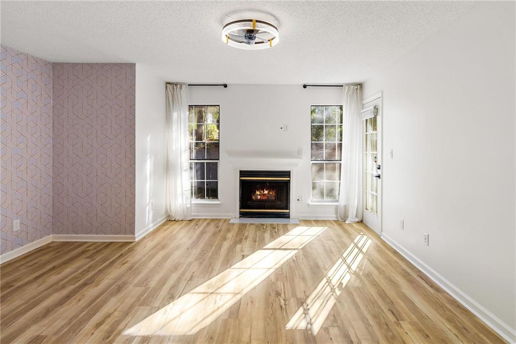In the heart of the desirable Perimeter area you have found your gem! Completely renovated throughout this fabulous 1/1 that is calling you home! Brand new everything which includes upgraded full size appliances; sleek and sophisticated ceiling height cabinets; jaw-dropping countertops; hardware curated specifically for this unit; one of a kind custom tile work in the shower; stylish double vanity with tons of storage; designer lighting and wallpaper that elevates the vibe; fresh paint and so much more! Live your best life being close to everything that the Perimeter area offers! MARTA, shopping, Whole Foods, Trader Joe’s, Mercedes Benz Headquarters, City Springs, healthcare, dining and loads nearby to keep you happy, healthy, well-fed and thriving! The covered patio, accessible from the main living space and the bedroom, comes with an attached storage area and is totally the place to chill with morning coffee/tea or evening beverages! The large bedroom can be your oasis and retreat and features a large walk in closet. The hall laundry offers the flexibility for either a full-size side-by-side or a stackable washer and dryer while still being on-point with the moody black and gold wallpaper! Brand new luxury vinyl plank floors and high-key lit lighting and a vibe that’s totally on-point to make this home stand out! The budget-friendly HOA includes pool and fitness facility, gated access, water, sewer, at your door trash-valet, gas for the fireplace and common area and exterior maintenance. Parking includes an assigned, covered space in a controlled access garage below the buidling. Access via an elevator is available to the unit lelvel from the parking garage.