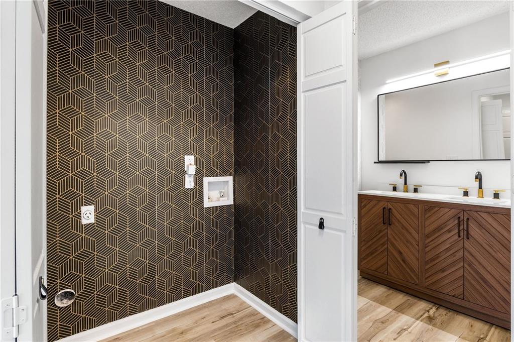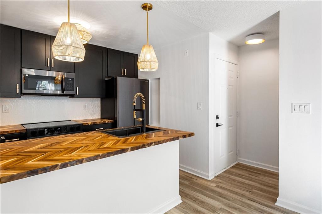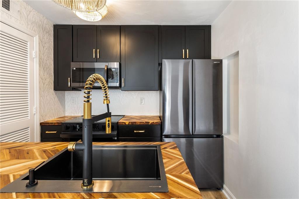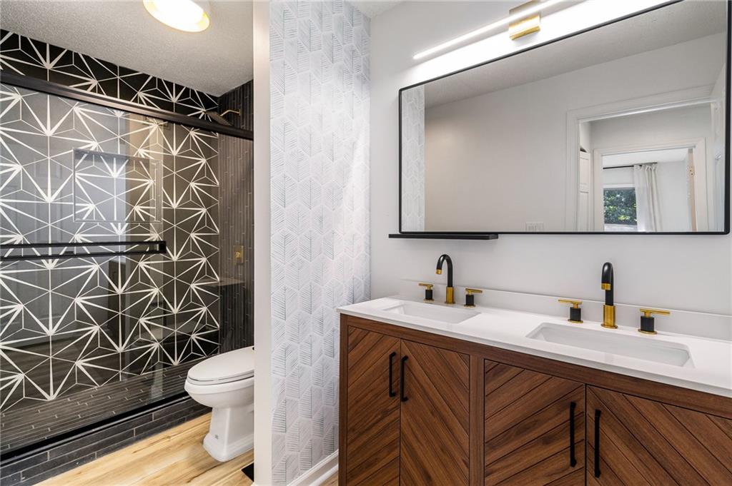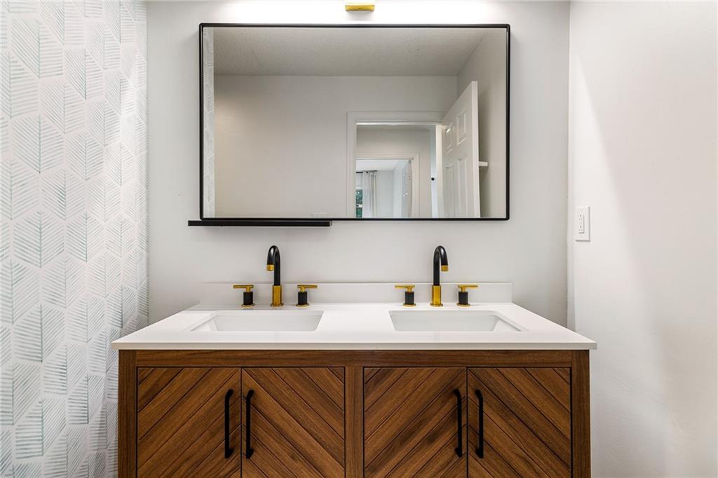 In the heart of the desirable Perimeter area you have found your gem! Completely renovated throughout this fabulous 1/1 that is calling you home! Brand new everything which includes upgraded full size appliances; sleek and sophisticated ceiling height cabinets; jaw-dropping countertops; hardware curated specifically for this unit; one of a kind custom tile work in the shower; stylish double vanity with tons of storage; designer lighting and wallpaper that elevates the vibe; fresh paint and so much more! Live your best life being close to everything that the Perimeter area offers! MARTA, shopping, Whole Foods, Trader Joe’s, Mercedes Benz Headquarters, City Springs, healthcare, dining and loads nearby to keep you happy, healthy, well-fed and thriving! The covered patio, accessible from the main living space and the bedroom, comes with an attached storage area and is totally the place to chill with morning coffee/tea or evening beverages! The large bedroom can be your oasis and retreat and features a large walk in closet. The hall laundry offers the flexibility for either a full-size side-by-side or a stackable washer and dryer while still being on-point with the moody black and gold wallpaper! Brand new luxury vinyl plank floors and high-key lit lighting and a vibe that’s totally on-point to make this home stand out! The budget-friendly HOA includes pool and fitness facility, gated access, water, sewer, at your door trash-valet, gas for the fireplace and common area and exterior maintenance. Parking includes an assigned, covered space in a controlled access garage below the buidling. Access via an elevator is available to the unit lelvel from the parking garage.
