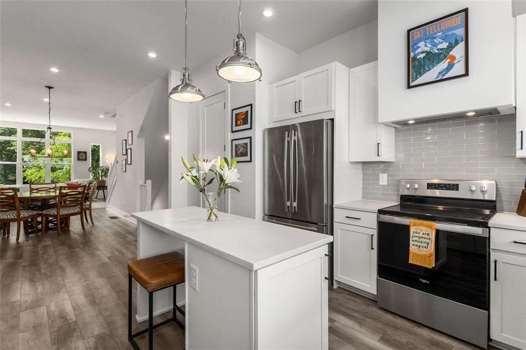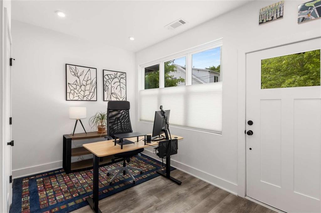 Modern Living in the Heart of East Atlanta Village! Just steps from the vibrant core of East Atlanta Village, this stylish contemporary townhome places you in one of Atlanta’s most energetic and walkable neighborhoods—surrounded by beloved local restaurants, shops, and the weekly farmers market. Inside, sleek modern design meets effortless functionality. Soaring ceilings and oversized windows fill every space with natural light, while thoughtful finishes add a refined touch throughout. The entry level features a flexible bonus room—perfect as a home office, playroom, or potential 3rd bedroom—plus a convenient closet and foyer. Upstairs, the open-concept main floor is bright and inviting, ideal for both entertaining and everyday living. The showstopping kitchen boasts Quartz countertops, custom cabinetry, stainless steel appliances, a statement tile backsplash, built-in coffee bar, expansive island, and a full wall of windows that feels like art. A chic powder room completes the main floor. Upstairs, retreat to the sunlit primary suite with a spa-like ensuite bath featuring dual vanities and a frameless glass-tiled shower. A spacious secondary bedroom and full bath provide the perfect setup for guests, family, or a roommate. The crown jewel? Your private rooftop terrace—an outdoor oasis for grilling, lounging, or soaking in the skyline views year-round. A rare tandem two-car garage offers generous parking and storage—an exceptional find in this coveted area. Enjoy walkable access to Bellwood Coffee, Argosy, Banshee, Brownwood Park & Tennis Courts, and more. Plus, you're just minutes from the Southside BeltLine, connecting you to Inman Park, Grant Park, Midtown, and beyond. Don’t miss this opportunity to own a turn-key, design-forward home in one of Atlanta’s hottest neighborhoods. Welcome to vibrant living in EAV!