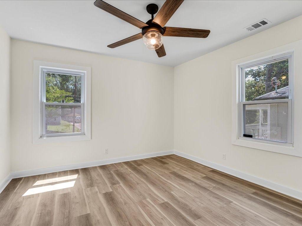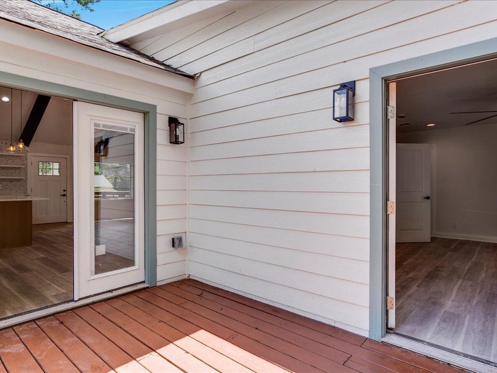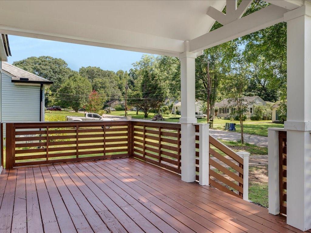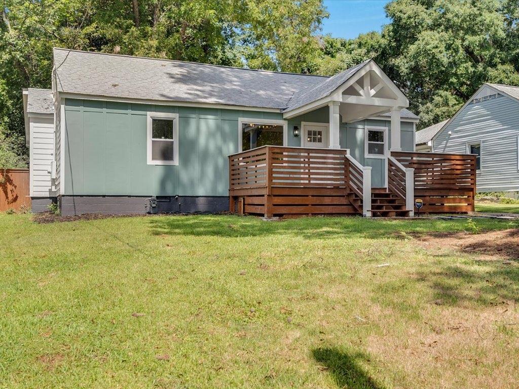 Welcome home to this beautifully renovated and fully permitted 3-bedroom, 2-bath ranch offering over 1,500 square feet of thoughtfully designed living space. From the moment you step onto the inviting front porch, you'll be captivated by the home's charm and modern elegance. Step inside to soaring ceilings accented by striking matte black beams, complemented by an abundance of natural light and custom lighting throughout. The open-concept floor plan features sustainable waterproof LVP flooring that flows seamlessly from room to room. The custom-built kitchen is a true showstopper-featuring sleek quartz countertops, stainless steel appliances, floating shelves, and a built-in wine rack-perfect for entertaining or everyday living. Retreat to the spacious primary suite, which overlooks a large back deck and fully fenced, level backyard ideal for gatherings or relaxing evenings. The luxurious en-suite bath includes dual vanities, a deep soaking tub, and a stunning custom-tiled shower, all leading to a dreamy walk-in closet. Every detail has been carefully curated to blend modern finishes with functional comfort. Don't miss the opportunity to own this turn-key gem-schedule your showing today!
