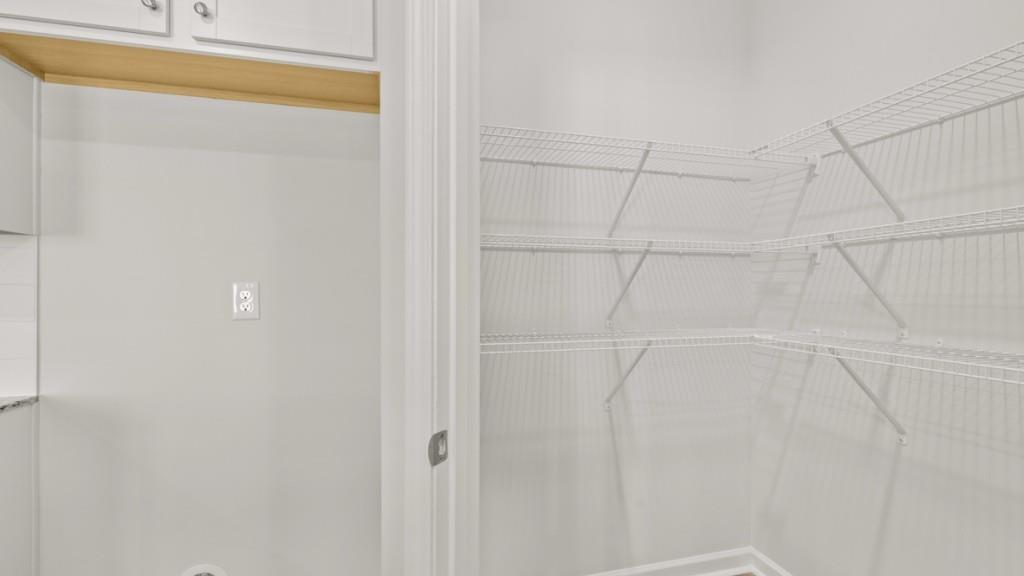- KitchenCabinets White, Kitchen Island, Other Surface Counters, Pantry Walk-In, Stone Counters, View to Family Room