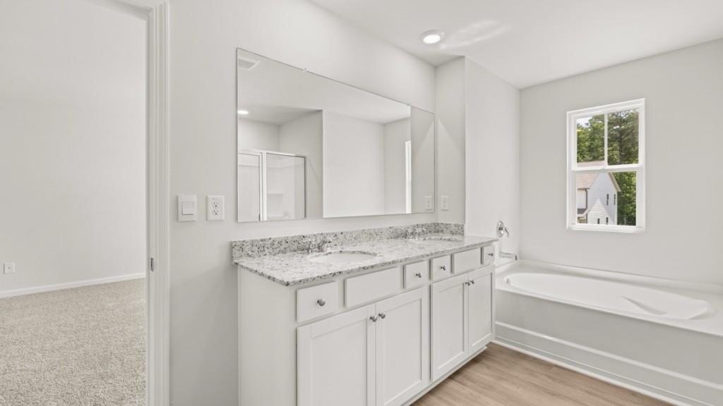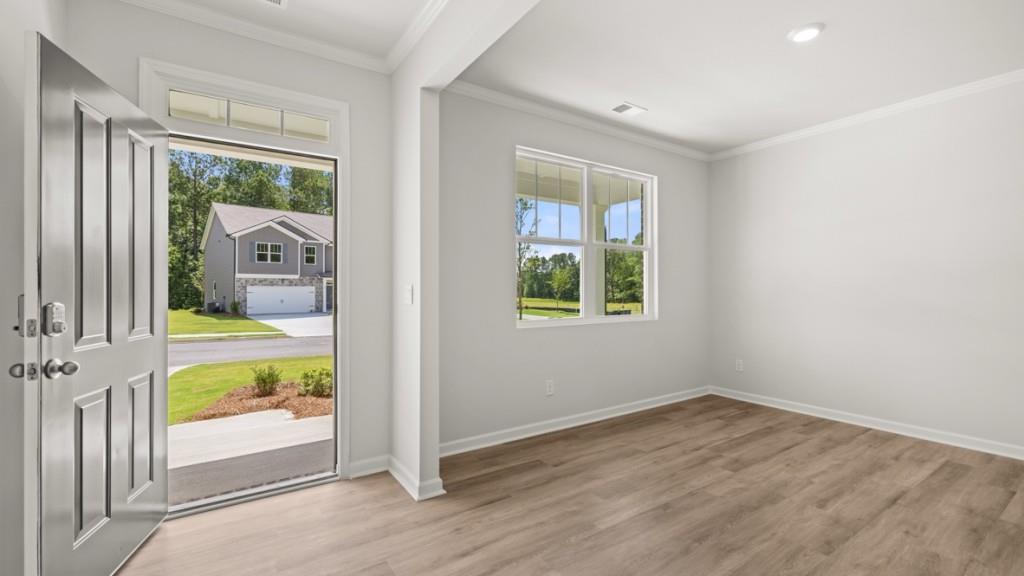 Now available in Villa Rica, GA at the lake and golf community, Northwoods at Mirror Lake, is 102 Crooked Lake Park! The Hayden is a beautifully designed 5-bedroom 3 bathroom spacious home offering the perfect blend of style, functionality, and luxury. The main level features a flex space that can be used for a private office or guest suite with full bathroom. Enjoy time with your family while preparing meals in the gorgeous kitchen and eating family dinners in the dining areas that overlooks the living room. The open concept creates an effortless flow for entertaining or daily living. Retreat to the oversized primary suite that includes a spa-like bathroom complete with double vanity, separate garden tub and stand-alone shower, and a large, spacious primary closet. The family can utilize the upstairs living area for entertainment, fitness or relaxation. All additional bedrooms are comparatively sized with a jack and jill bathroom. The laundry room is on the second level for convenience. Located in the esteemed Mirror Lake Community, Northwoods is on the grounds of one of Douglas County's most beautiful golf courses and a gorgeous lake, that is perfect for fishing with walking trails to maximize your step goals or just to enjoy beauty and nature. All within minutes of I-20, Mirror Lake Elementary, and lakeside trails. Members of the Mirror Lake community will enjoy the great amenities within Northwoods such as a pool and club house, but also have access to the Mirror Lake amenities which include 3 tennis courts, 2 pools, 2 pickleball courts, 2 tot lots, a cabana, and Clubhouse. Schedule a tour with our Mirror Lake agents to learn more about 102 Crooked Lake Park and how you can make this Villa Rica, GA community your home!