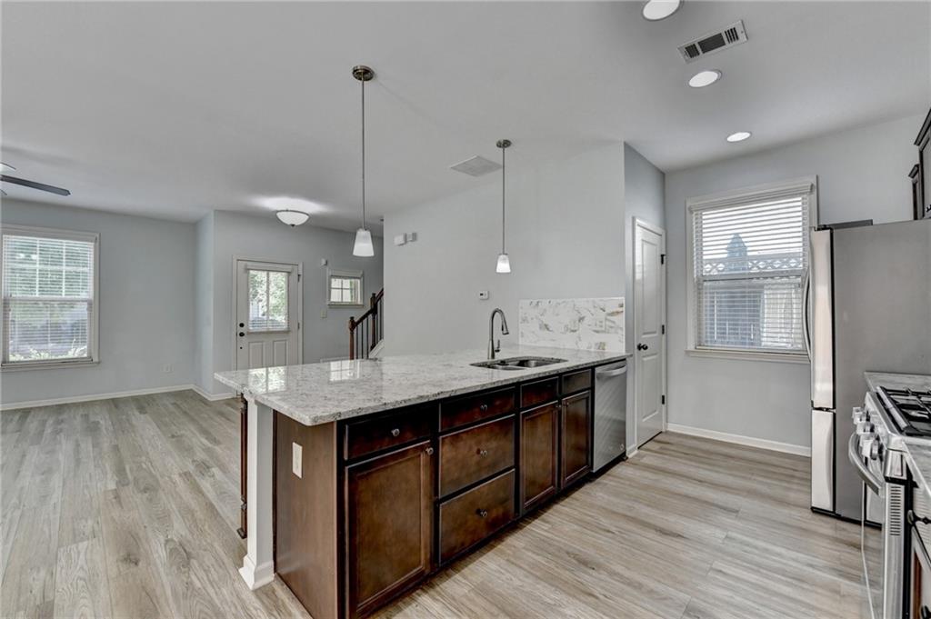 Move-in Ready in Village Grove – Top-Rated North Gwinnett Schools! Welcome to this beautifully maintained 3BR/2.5BA home in the highly desirable Village Grove community! Nestled in a quiet section of the neighborhood, this home features wood floors throughout and a bright, open layout ideal for modern living. The main level offers a spacious living room with a cozy fireplace, a cheerful breakfast nook, and a gourmet kitchen with granite countertops, stainless steel appliances, stained wood cabinets, and blinds throughout. A convenient drop zone and powder room round out the first floor. Upstairs, the primary suite boasts a large walk-in closet, double vanities, a soaking tub, and a tiled shower. Two additional bedrooms, a full bath with double vanities, and an upstairs laundry area provide comfort and functionality. Enjoy outdoor living on the private, fenced side patio—perfect for relaxing, grilling, or pets. The rear-entry garage includes ceiling and side-wall storage. Community highlights include resort-style amenities: Olympic-sized pool, tennis courts, playgrounds, and scenic trails. Lawn maintenance is included in the HOA, offering low-maintenance living at its best. Close to parks, shopping, dining, and Suwanee Town Center. This is your chance to live in one of Suwanee’s most desirable neighborhoods—schedule your tour today!