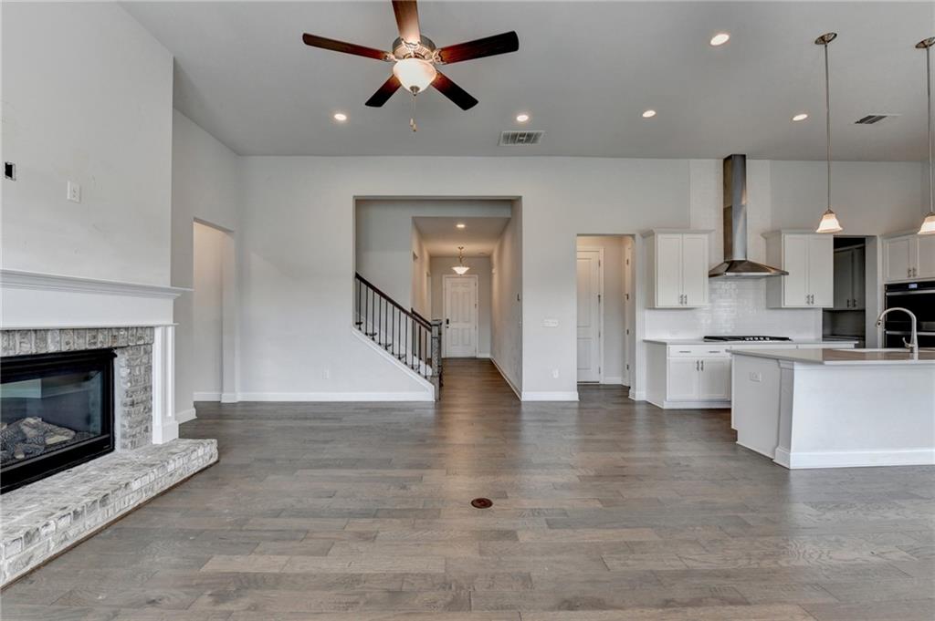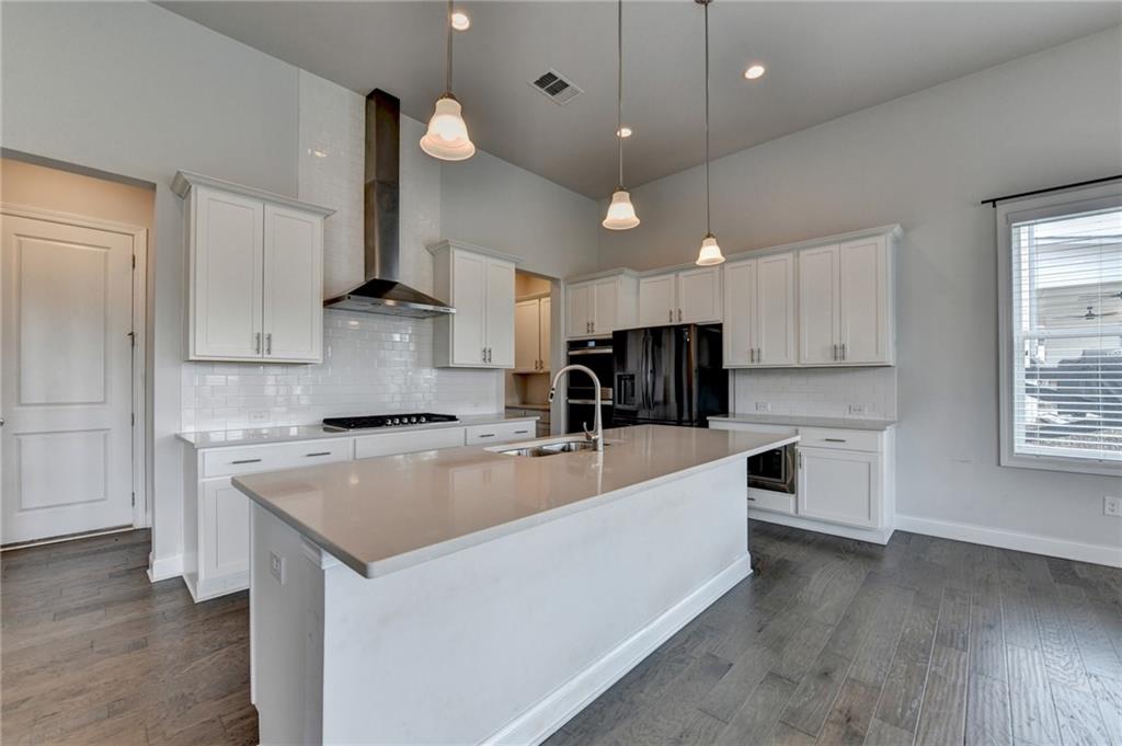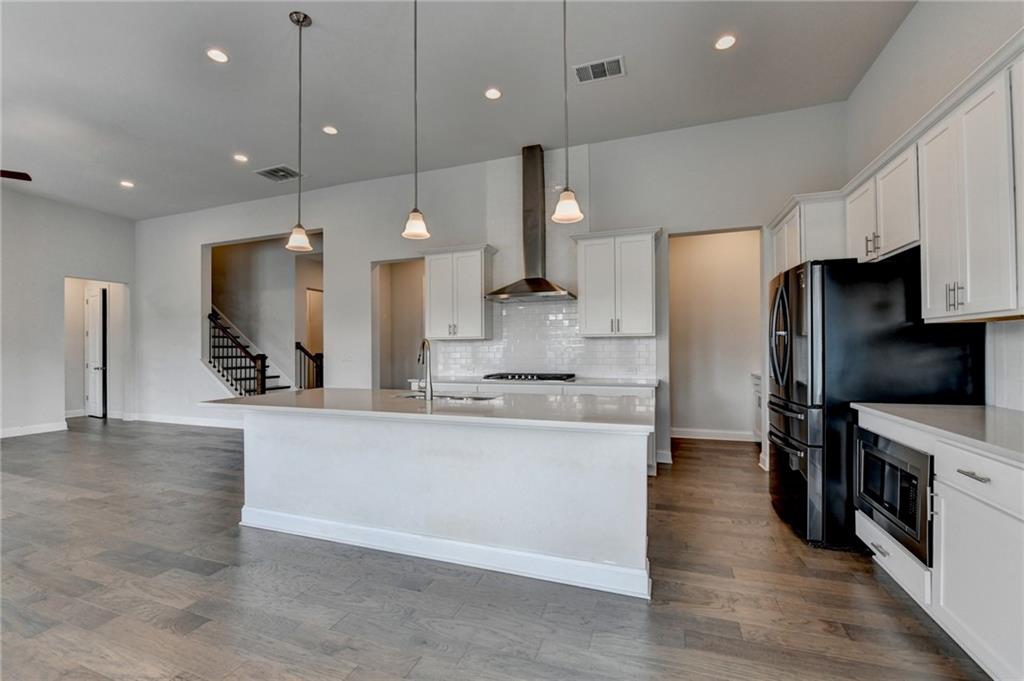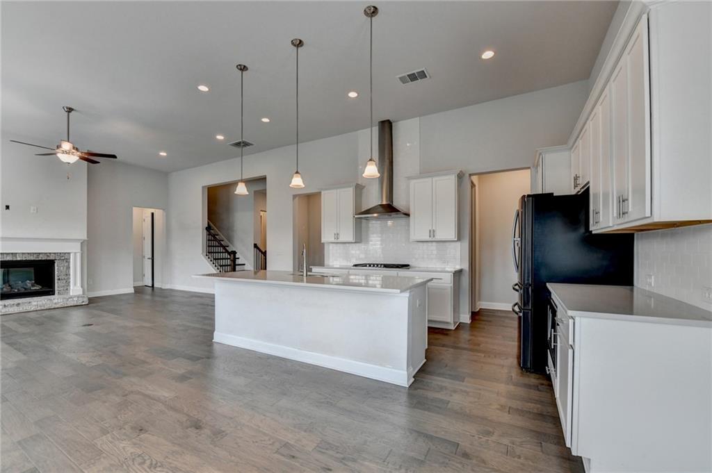- KitchenCabinets Stain, Eat-in Kitchen, Pantry Walk-In, Solid Surface Counters, Kitchen Island, View to Family Room