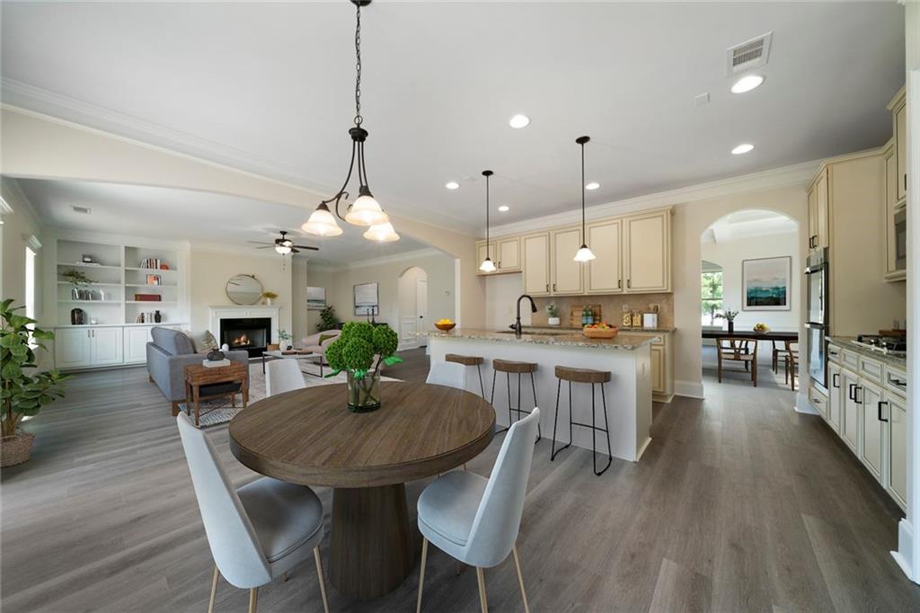 Seller is open to offering a buyer credit which is ideal for buyers who may want to use toward rate buy-down or closing costs.This 5 bedroom 5.5 bath beautifully refreshed traditional home blends timeless charm with modern updates in one of the area’s most sought-after neighborhoods. From the moment you step into the two-story foyer, you’re welcomed by fresh paint, brand-new LVP and plush carpeting, crown molding, and abundant natural light that flows throughout. The main level offers a flexible front room, perfect as a formal living room, office, playroom, or even a cozy reading nook. It leads into the elegant dining room and onward to a bright, open kitchen with brand-new stainless steel appliances and seamless connection to the breakfast area and fireside living room. Step outside from the kitchen to your private patio, ideal for grilling, dining, or relaxing. A main-level bedroom with its own en suite, double vanity, separate bath and shower, and walk in closet provides the perfect guest space or stepless primary. Upstairs, the vaulted-ceiling primary suite features a gas-log fireplace and private sitting room, your personal retreat. Three spacious secondary bedrooms also offer vaulted ceilings and en suite baths and walk in closets for each providing ultimate comfort and privacy. The freshly sodded front yard offers instant curb appeal, while the fenced backyard features new seed and a brand-new fire pit ideal for gatherings year-round. Located in a vibrant swim/tennis community, enjoy access to resort-style amenities including a large pool with waterslide, clubhouse, tennis courts, and playground. Schedule now to see this thoughtfully finished home in a neighborhood you’ll love!