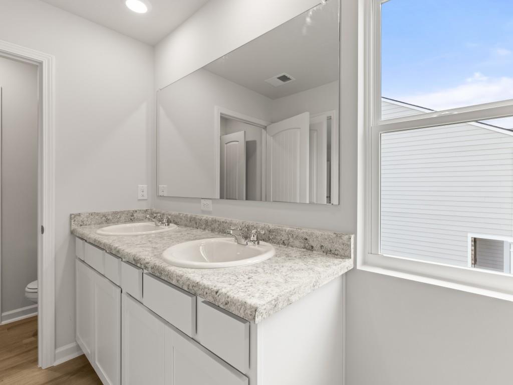 Welcome to Oakleigh Glen in Dallas, GA, a community that is home to 500 Oak View Lane, a stunning new single-family home. This beautiful Darwin floorplan is tailored for a growing family, featuring 3 spacious bedrooms and 2.5 well-appointed bathrooms, along with a convenient 2-car garage. As you step into the front entry, you'll be greeted by a welcoming foyer. A lovely powder room is conveniently located off the front hallway, guiding you into the expansive main living area. The Darwin plan boasts a great living room that seamlessly connects to the updated kitchen and breakfast area, perfect for entertaining or family gatherings. The kitchen is a chef's dream, equipped with a large center island that serves as a gathering spot, a walk-in corner pantry for ample storage, and sleek stainless-steel appliances. Adjacent to the kitchen, the breakfast area provides a cozy space for family meals and leisurely mornings. All three bedrooms are situated on the second level, including the luxurious primary suite. The primary suite offers a serene retreat, featuring a relaxing bathroom equipped with a walk-in shower, dual vanity sinks, and an extra linen closet for convenience. You'll also appreciate the oversized walk-in closet in the primary suite, providing plenty of storage for your wardrobe. Completing the second level are a laundry room, a linen closet, and an additional bathroom with dual vanities, ensuring practicality for the entire household. Experience the perfect blend of comfort and style at 500 Oak View Lane-your ideal D. R. Horton family home in Oakleigh Glen!