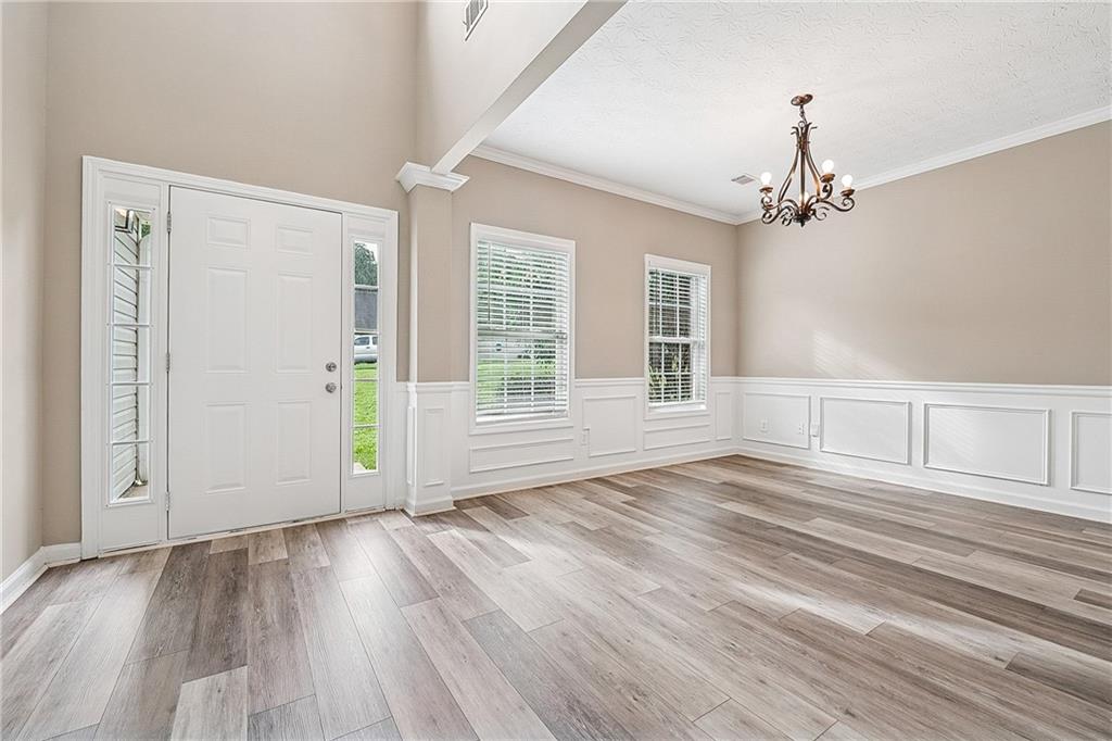 Top-Rated Schools. Step into timeless elegance in this stunning Buford beauty, nestled within the vibrant Ivy Plantation community! This updated gem welcomes you with an open floor plan bathed in a bright neutral palette and showcasing brand-new vinyl flooring.House has been rcently remodled with new paint, vinyl floors on the main floor. Within the dining area, charming wainscoting and refined trim will delight you. Large, airy windows flood the space with natural light, creating an inviting ambiance that’s perfect for both lively gatherings and quiet evenings at home. The expansive kitchen is a chef’s dream, featuring gleaming stainless appliances and generous bar seating, ideal for whipping up your favorite meals. The living room steals the show with a cozy stone fireplace, offering a warm retreat for movie and game nights. Four spacious secondary bedrooms, some showcasing built-ins within the closets, provide ample room for family, guests, or hobbies. The owner’s suite is a true sanctuary, boasting vaulted ceilings and a luxurious ensuite with a soaking tub and separate shower for ultimate relaxation. Outside, a serene backyard backs up to peaceful, mature trees, with a charming back patio perfect for morning coffee or evening stargazing. The Ivy Plantation community perfectly complements your lifestyle with access to a sparkling pool, tennis courts, and a playground for endless fun. With easy access to shopping, dining, local parks, and I-85, plus zoning for top-rated schools, this home offers the perfect blend of convenience and tranquility. Schedule your showing today and discover the idyllic Buford lifestyle you’ve been dreaming of!