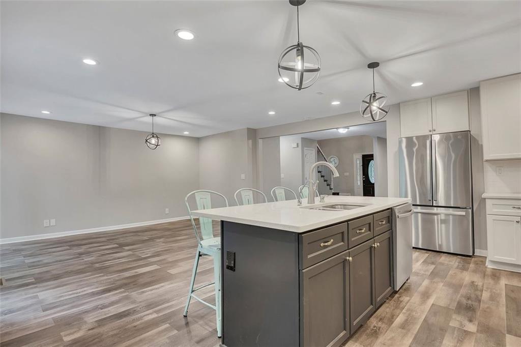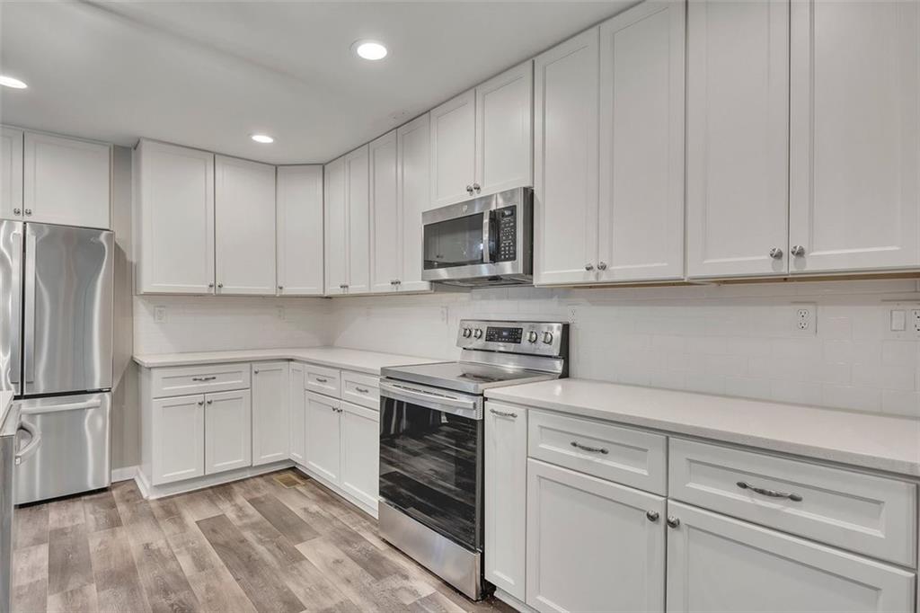 - KitchenCabinets White, Solid Surface Counters, Stone Counters, Kitchen Island, Eat-in Kitchen, Pantry