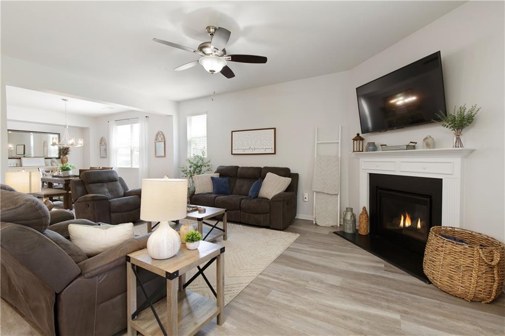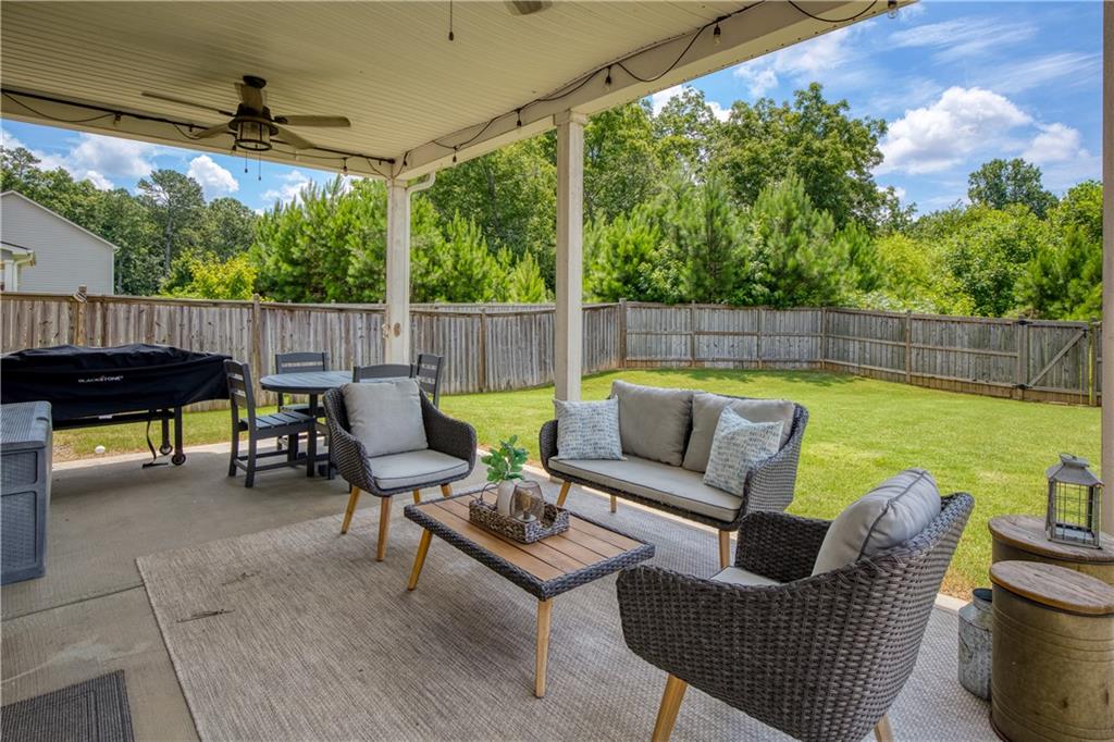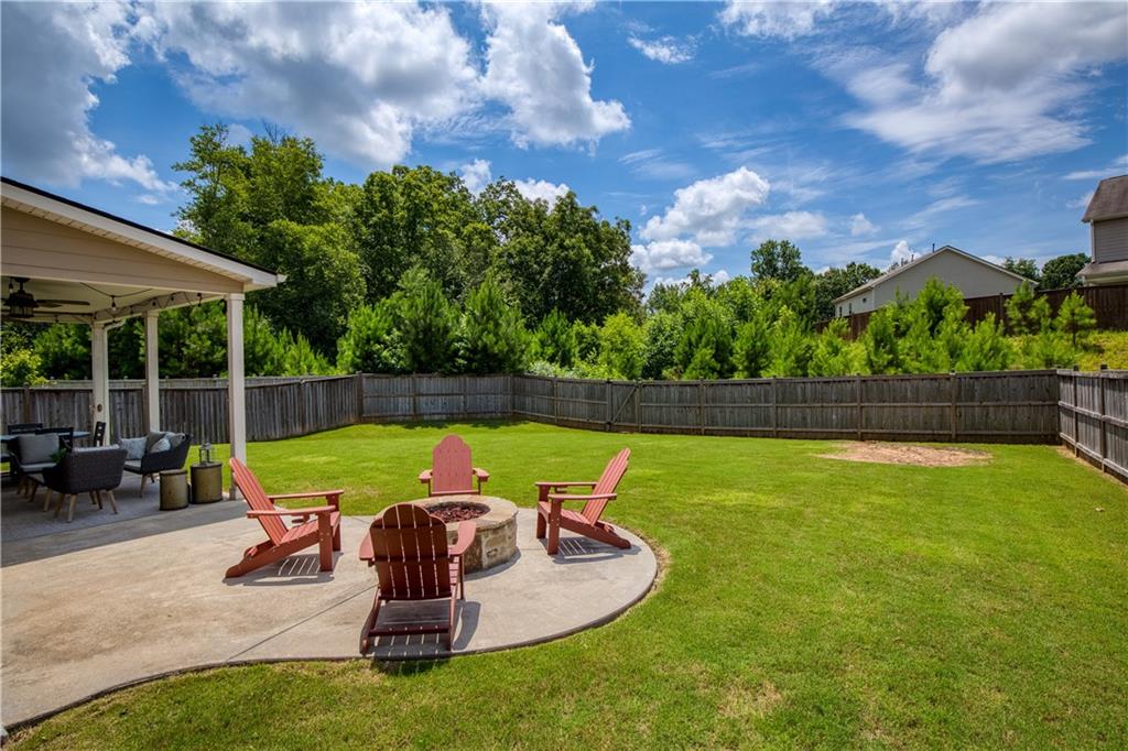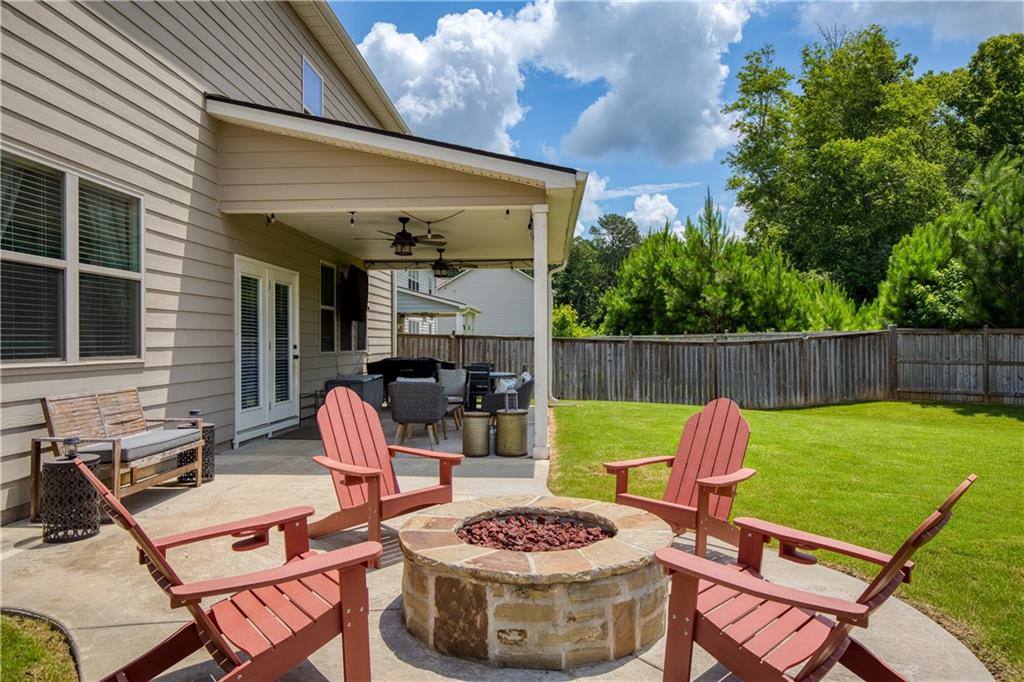 Welcome to this beautifully maintained, move-in ready home in one of Forsyth County’s best neighborhoods, zoned for award-winning West Forsyth High School. This stunning North-facing property features a charming stone and brick exterior with a welcoming front porch and a spacious three-car garage. Inside, you’ll find a thoughtful layout with a full bedroom and bathroom on the main level—perfect for guests or in-laws—plus a separate office for working from home. The open-concept main living area includes a cozy fireplace in the family room, a generous dining space, and a bright white kitchen with quartz countertops, a gas range, an island with bar seating, and a breakfast area. Step outside to the covered back porch, ideal for entertaining, and enjoy the flat, fenced backyard complete with a patio and firepit. Upstairs, the oversized primary suite offers a peaceful sitting area and a luxurious bath with double vanities, a soaking tub, separate shower, and abundant storage. A guest bedroom with a private ensuite bath and two additional bedrooms that share a spacious hall bath with extended counter space provide room for everyone. This home is a perfect blend of comfort, function, and style in a location you’ll love!
