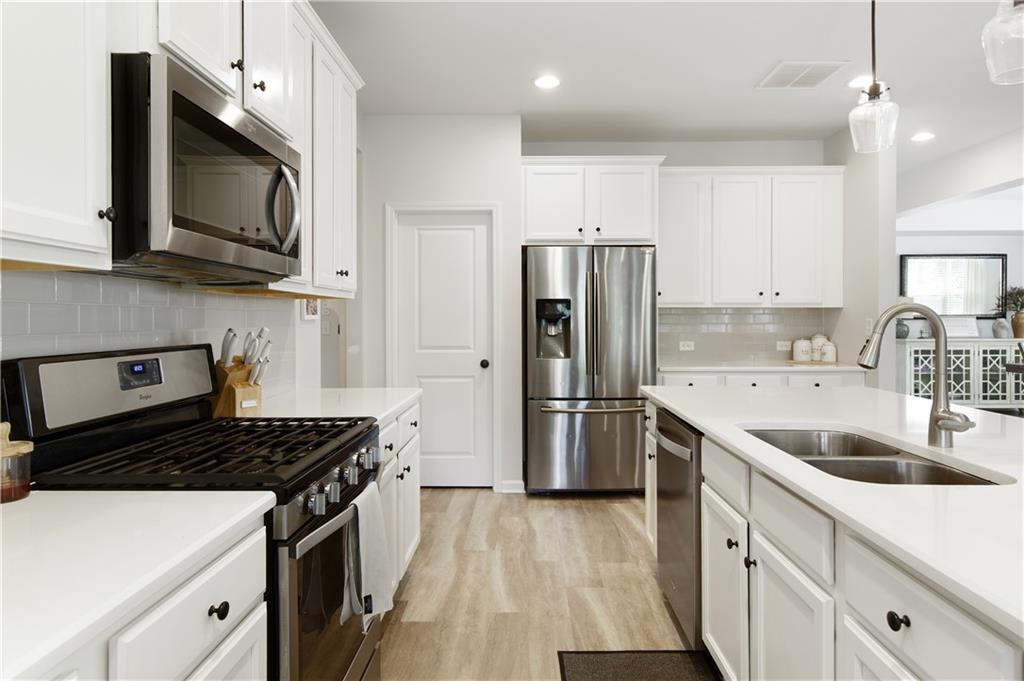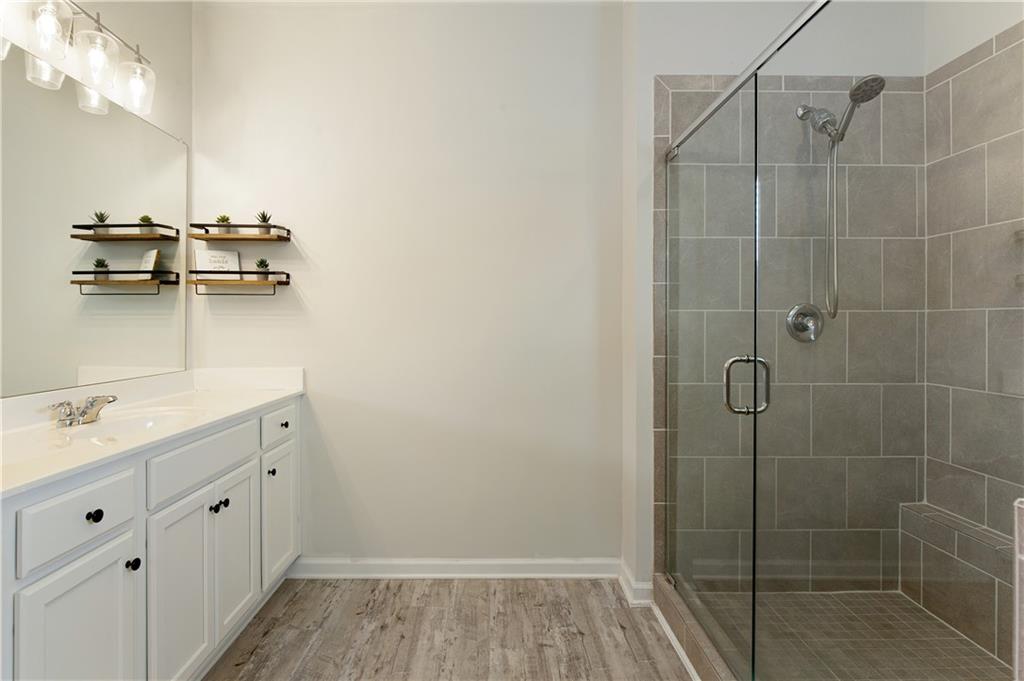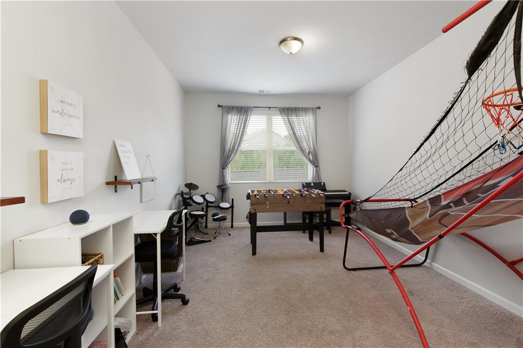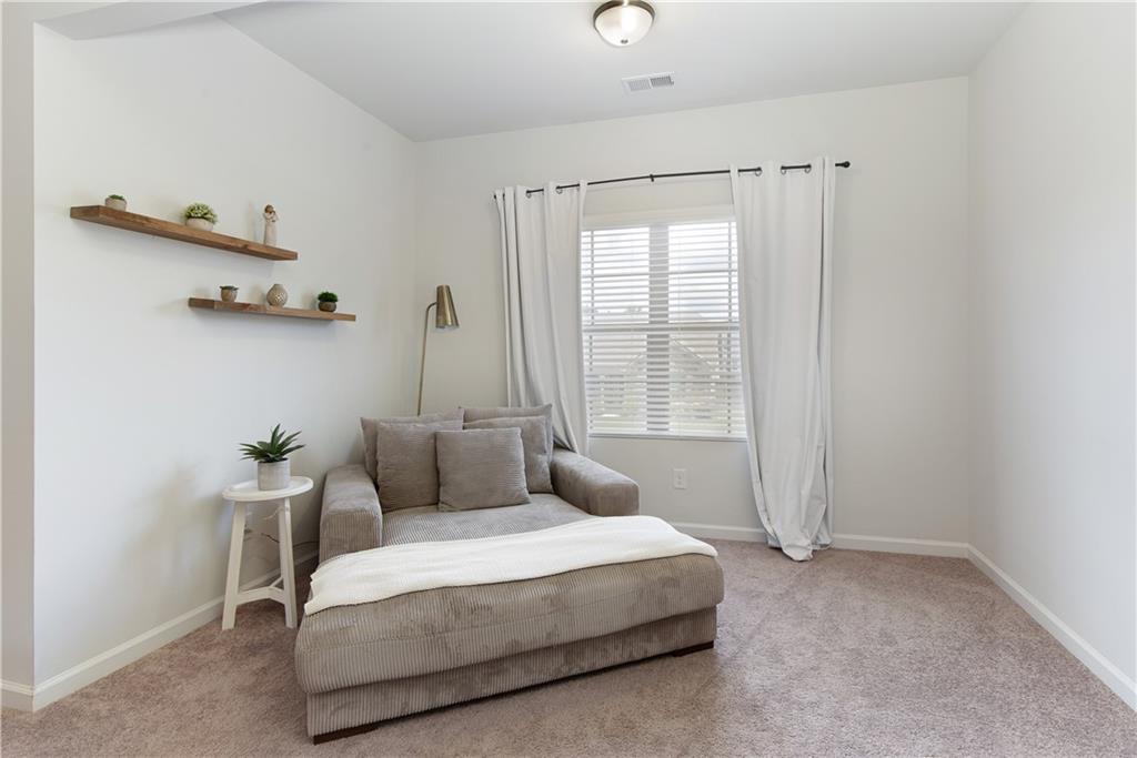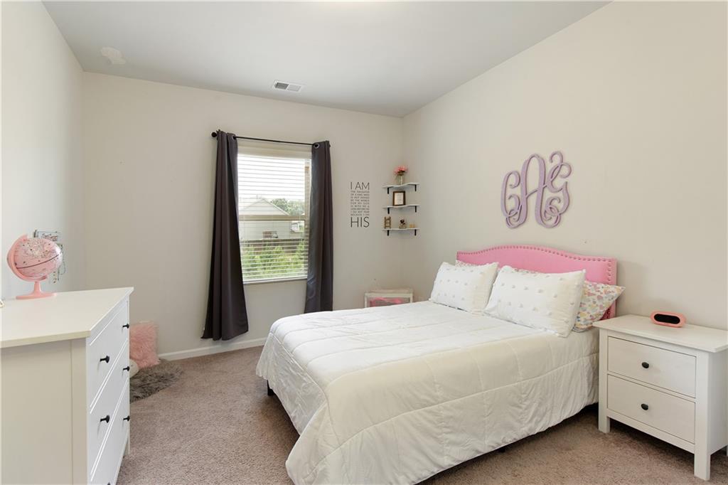 Welcome to this beautifully maintained, move-in ready home in one of Forsyth County’s best neighborhoods, zoned for award-winning West Forsyth High School. This stunning North-facing property features a charming stone and brick exterior with a welcoming front porch and a spacious three-car garage. Inside, you’ll find a thoughtful layout with a full bedroom and bathroom on the main level—perfect for guests or in-laws—plus a separate office for working from home. The open-concept main living area includes a cozy fireplace in the family room, a generous dining space, and a bright white kitchen with quartz countertops, a gas range, an island with bar seating, and a breakfast area. Step outside to the covered back porch, ideal for entertaining, and enjoy the flat, fenced backyard complete with a patio and firepit. Upstairs, the oversized primary suite offers a peaceful sitting area and a luxurious bath with double vanities, a soaking tub, separate shower, and abundant storage. A guest bedroom with a private ensuite bath and two additional bedrooms that share a spacious hall bath with extended counter space provide room for everyone. This home is a perfect blend of comfort, function, and style in a location you’ll love!