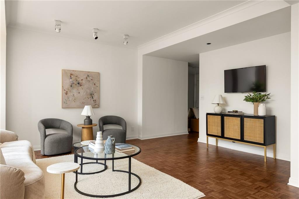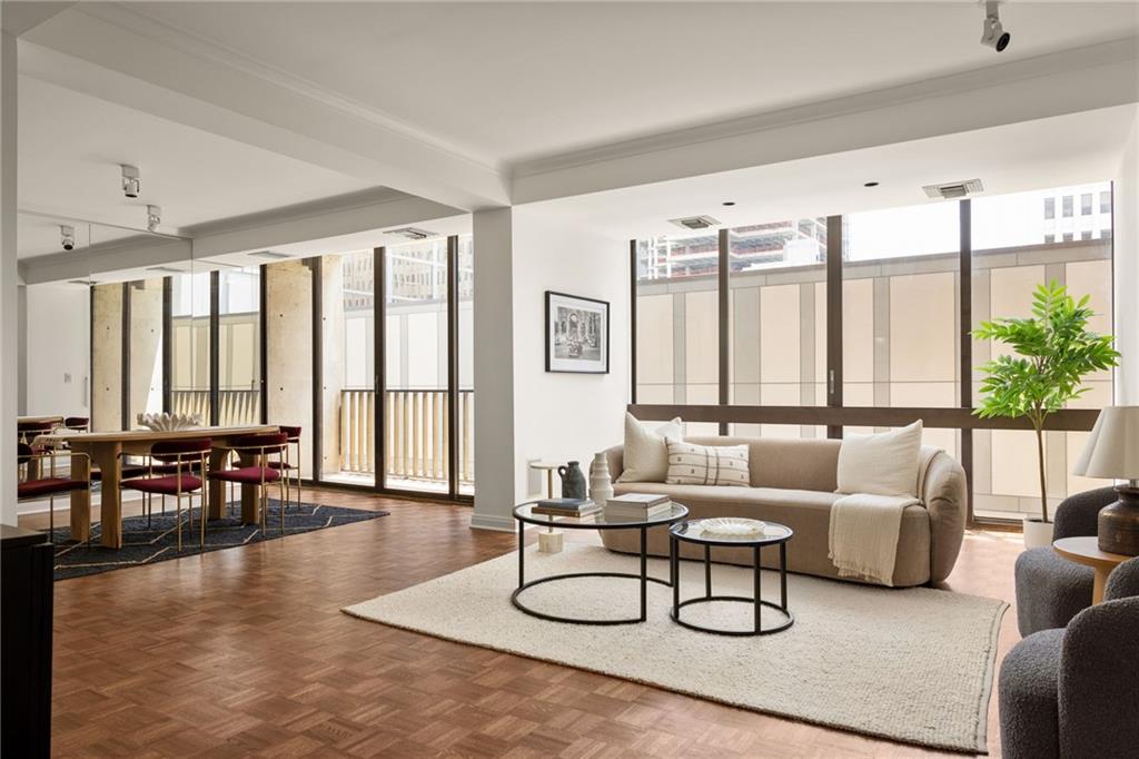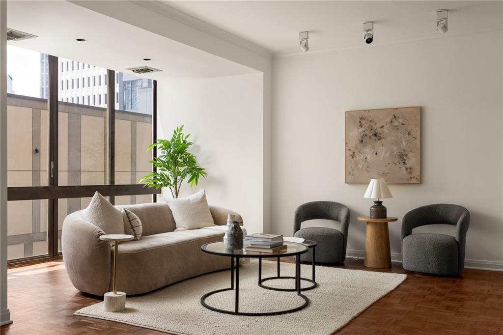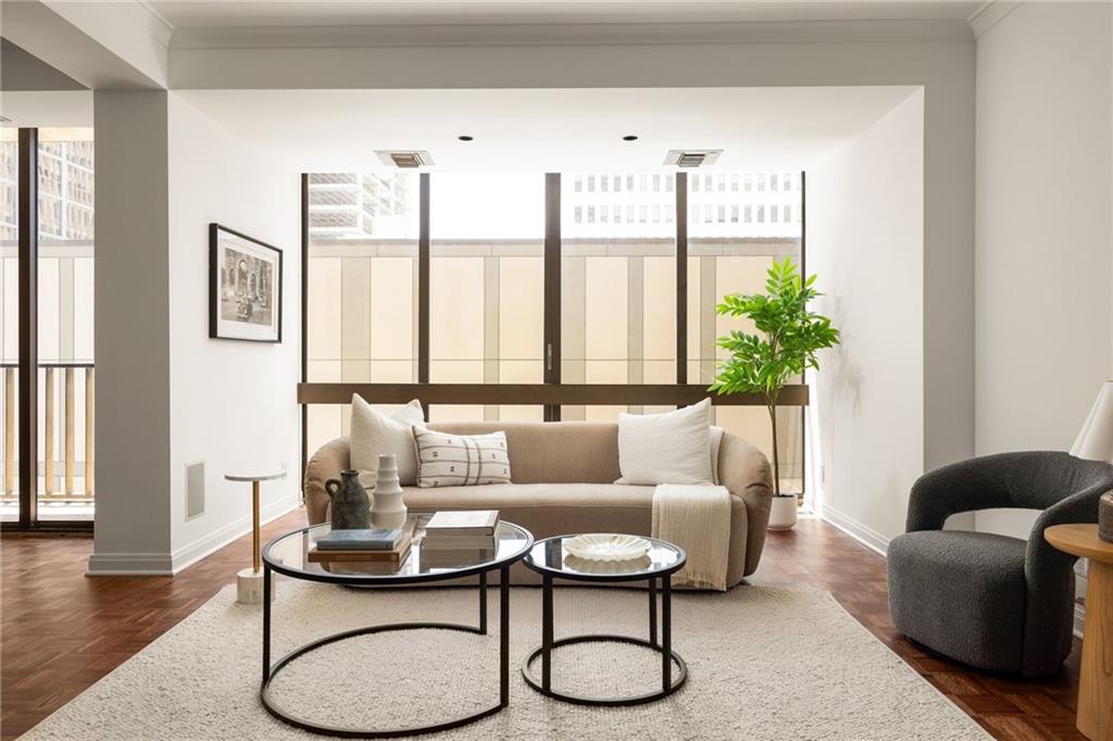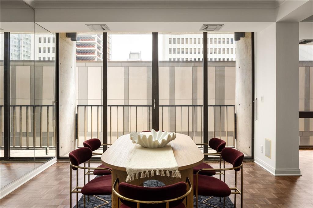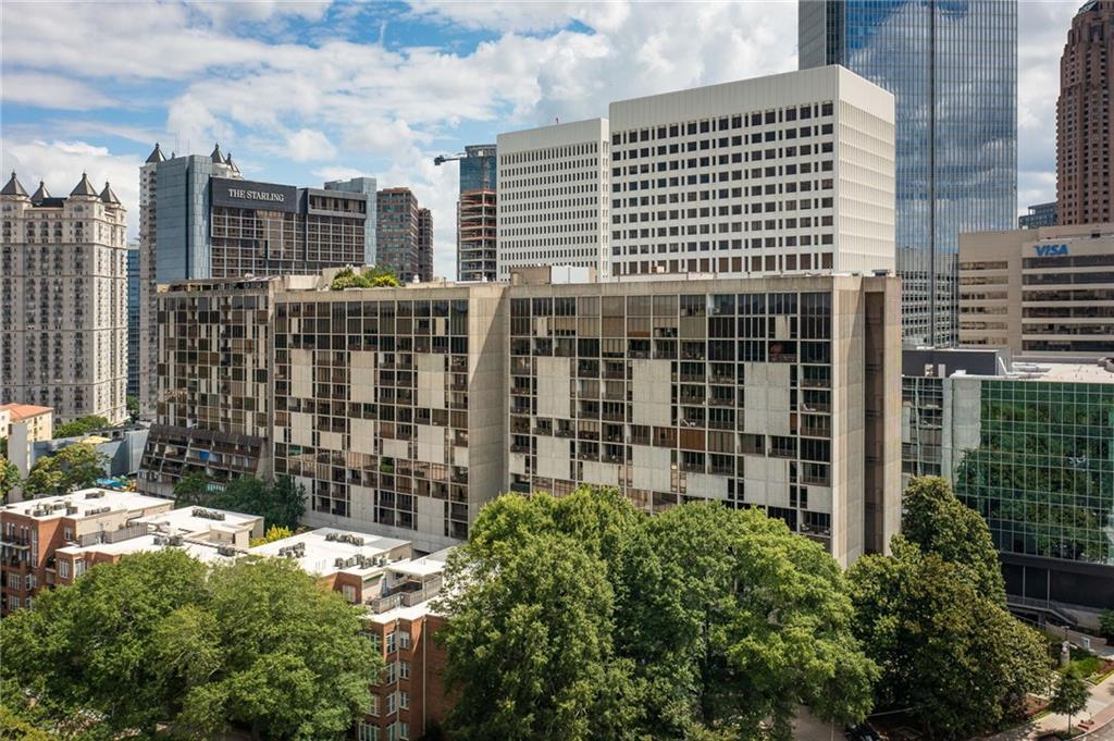 This 2 bedroom / 2 bathroom condo at the Hanover House is located smack dab in the middle of Midtown. With Colony Square right next door, you are living a "grab your keys and go" lifestyle. There is a concierge to help you with whatever you may need and all utilities are included in your HOA fee. The condo has completely refurbished warm parquet flooring, custom wood kitchen cabinetry, and feels like a tucked away sanctuary. The open-concept living/dining leads onto the balcony framing the Midtown skyline. The primary suite has an oversized bedroom with floor to ceiling windows, double sided closet and private bath. The second bedroom has built-ins surrounding the room to highlight your private book collection. Added bonus of a NYC worthy view! As part of Colony Square, you can rent unlimited parking spaces for $150 a car monthly. Colony Square is one elevator ride away from restaurants, salons, state of the art gym, theater, and hotel. If you love the arts and outdoors, you are a block from the High Museum, Alliance Theater, and Atlanta Symphony. Piedmont Park, the Botanical Gardens, and the Beltline are so close as well. It doesn’t get more Intown than this! This is a fabulous price for an incredible condo!