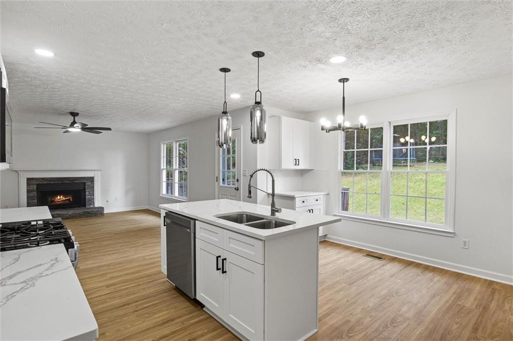 - KitchenBreakfast Bar, Cabinets White, Kitchen Island, Other Surface Counters