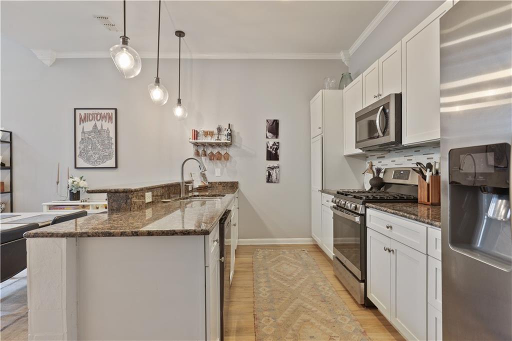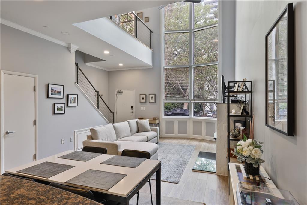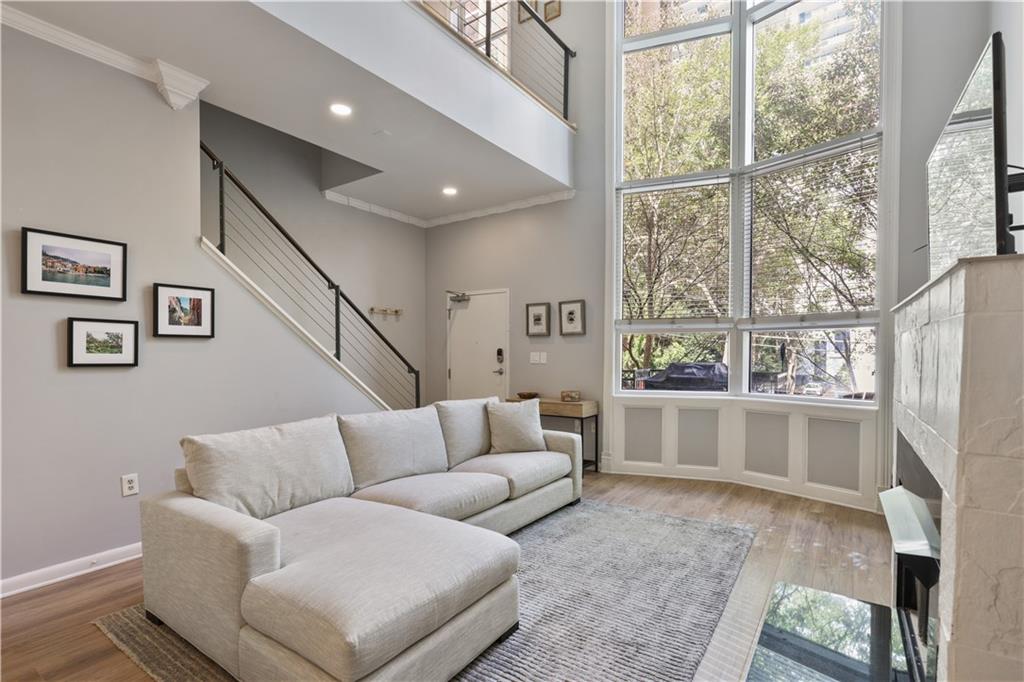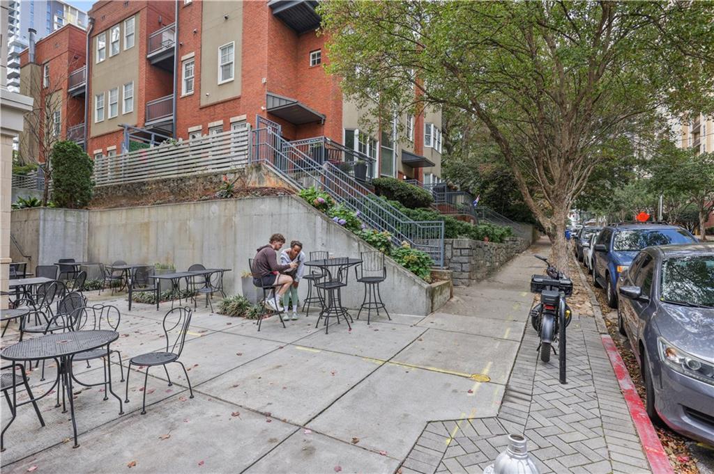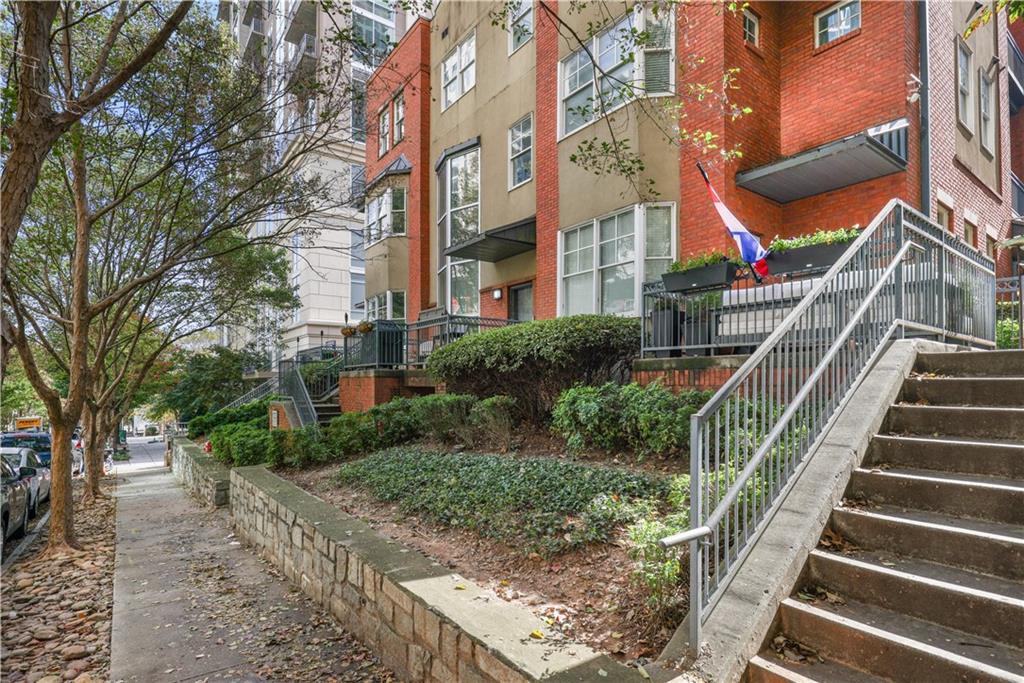 Tucked away in one of Midtown Atlanta’s hidden gems, this rare townhouse offers the privacy and livability of a single-family home in a boutique 11-residence community—where no two units are alike. Just steps from Piedmont Park, the newly reimagined Colony Square, and local favorites like Larakin Coffee and Wine Bar, the location is unmatched for walkable city living. Soaring two-story floor-to-ceiling windows flood the main living space with natural light, creating a dramatic yet inviting atmosphere. Modern construction blends seamlessly with thoughtful upgrades throughout, including custom closets, a new oven, and elegant Rejuvenation stair runners. Enjoy two private, gated garage parking spaces, plus two generous outdoor patios—including a fully private space perfect for pets, gardening, or al fresco dining. With the best of Midtown at your doorstep and a one-of-a-kind architectural design, this home is a rare opportunity in Atlanta’s most vibrant neighborhood.
