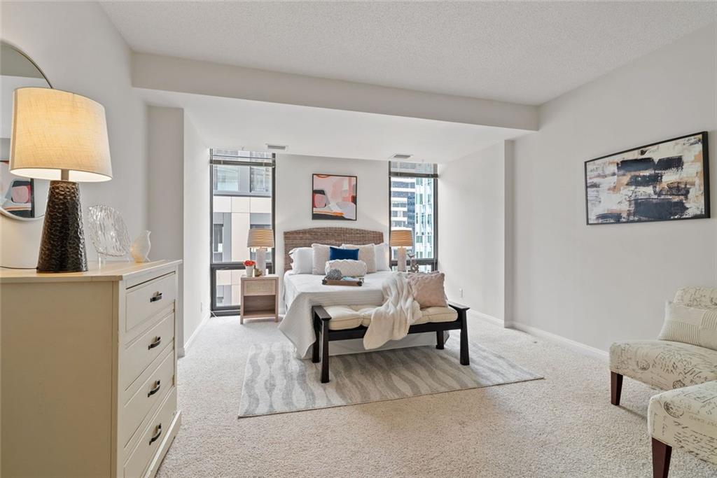 Experience vibrant Midtown living at its finest in this spacious two-bedroom condo with additional office space, perfectly situated within the iconic Colony House community at Colony Square. One of the most unique features are the soaring two-story windows that bathe the home in natural light and offer mesmerizing city views that evoke the energy and drama of a New York’s skyline. This residence offers modern design, and a stylish canvas for a discerning buyer to personalize and make their own. The open layout is ideal for both everyday living and entertaining, with ample space for working from home or simply relaxing above the city lights. Enjoy the convenience and peace of mind that comes with 24-hour concierge service, along with immediate access to the best of Atlanta’s arts, culture, and dining. Step outside your front door to explore the Peachtree Street Arts District, with the Woodruff Arts Center, the High Museum, and the legendary Fox Theatre, all just moments away. Or retreat to the serenity of Ansley Park, which feels like your own backyard oasis. With Midtown’s dynamic food scene, the newly founded 14th Street Park, and all the energy of Colony Square at your doorstep, this exceptional condo offers a rare blend of urban excitement and residential comfort.