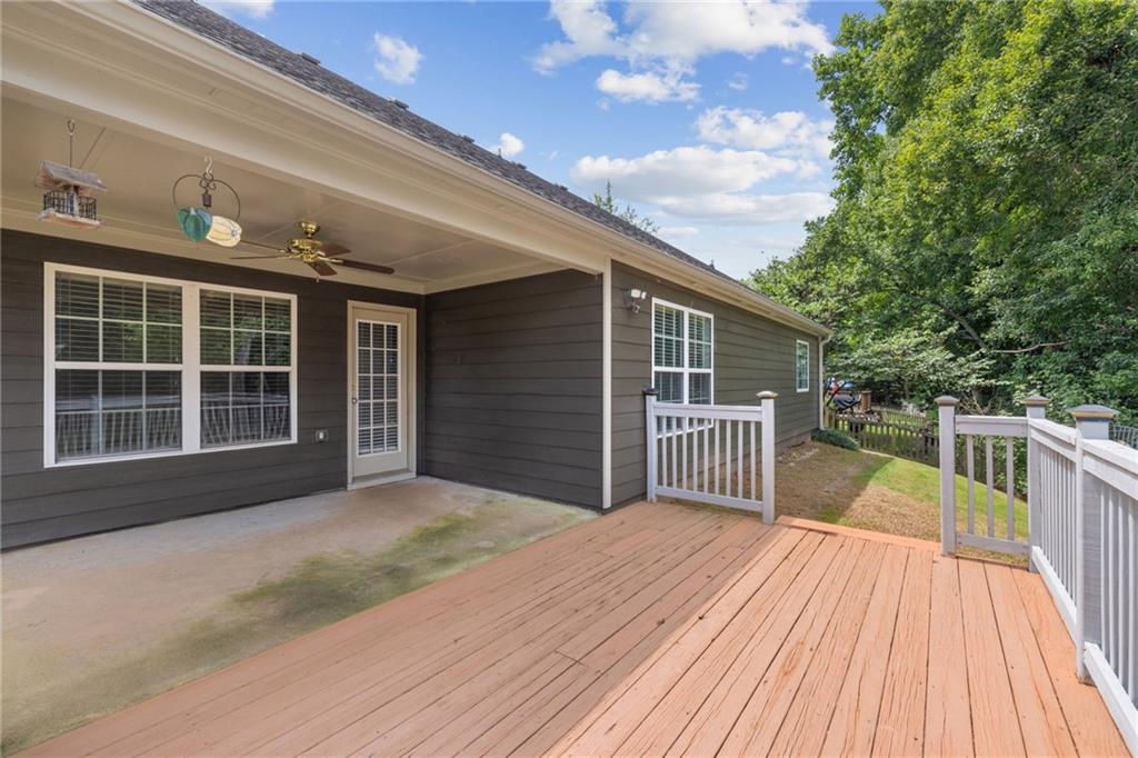 Welcome to this warm and inviting four bedroom ranch in a small and friendly neighborhood just a short walk from Grayson High School and Vines Park. From the moment you step inside you will notice the bright and open layout that makes everyday living comfortable and entertaining easy. The vaulted great room, centered around a cozy fireplace, flows into the dining area to create a welcoming space for gatherings with friends and family. Large windows bring in natural light and highlight the home’s open feel. The kitchen is both functional and charming with granite countertops, a breakfast bar for casual meals, a tile backsplash, and a sunny breakfast room with views of the backyard. Whether you are cooking a weeknight dinner or preparing a holiday feast, this kitchen is ready for the task. The owner’s suite is a peaceful retreat with a tray ceiling, a spacious walk-in closet, a garden tub for relaxing soaks, and a separate shower. Three additional bedrooms provide flexibility for guest rooms, a home office, workout space, or hobbies. Each room offers generous closet space and comfortable layouts. Step outside to enjoy a covered patio with a ceiling fan, perfect for relaxing on warm Georgia evenings. An extended deck offers even more room for outdoor dining, cookouts, or morning coffee while overlooking the fenced backyard. The yard is ideal for pets, play, or simply enjoying a little extra privacy. While the home has been well loved, it does show some cosmetic wear including wall scuffs, chipped paint, and carpet stains in the bedrooms. These small projects present an opportunity for the next owner to add their own style and updates, creating a personalized space to enjoy for years to come. Located in a charming neighborhood with sidewalks and streetlights, this home offers a true sense of community. Its location provides easy access to schools, parks, shopping, and dining, making it both convenient and desirable. If you are looking for a home with great bones, a functional floor plan, and the chance to make it your own, this property is ready to welcome you.