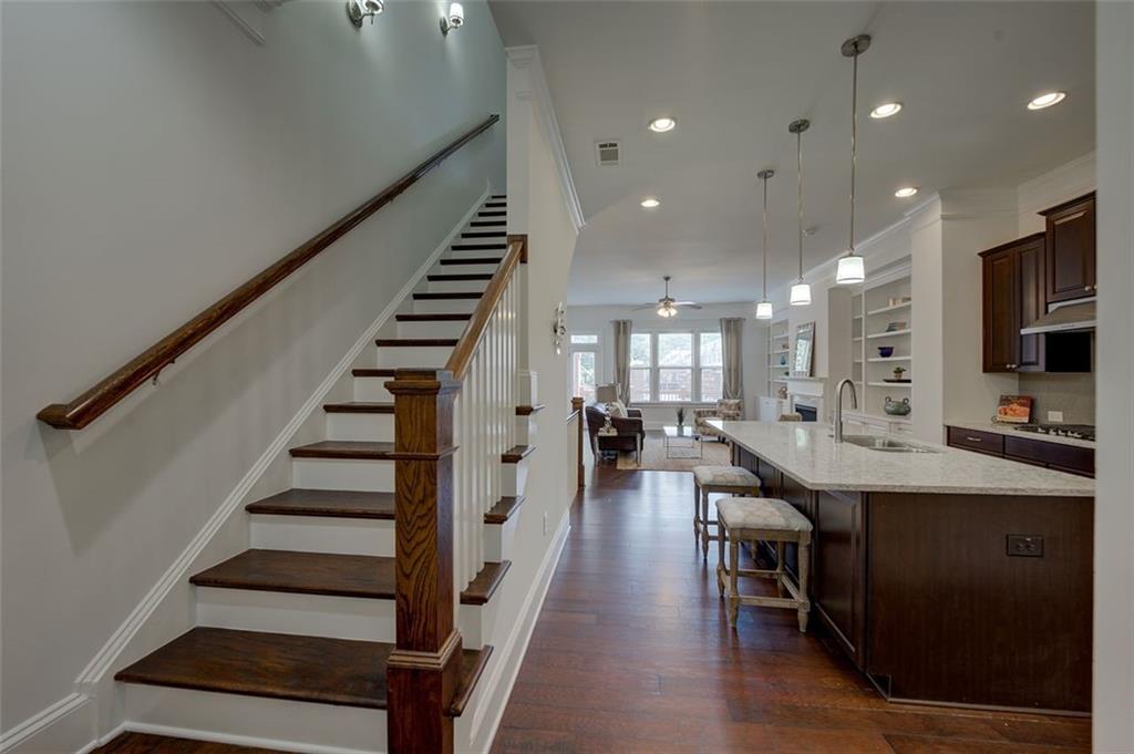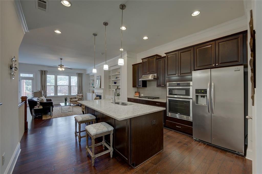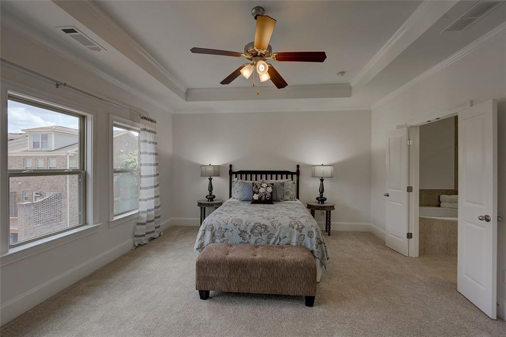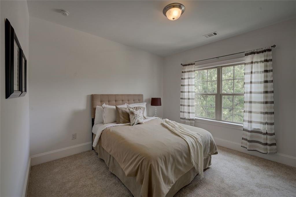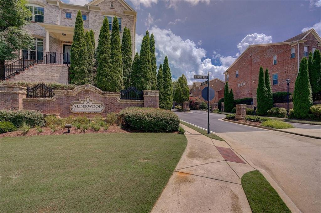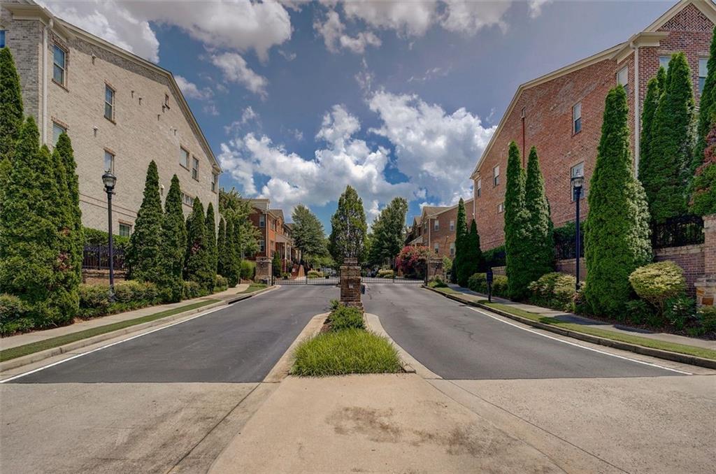 Ever dreamed of taking a stroll from your home to the park? Or walk across the street to the grocery, shops or restaurants? Here is your chance! Beautifully designed gated community only steps to Abernathy Greenway, tons of retail, Sandy Springs Tennis Center and more! The central location allows you to be on highways/interstates quickly, as well as a short drive to the numerous wonderful things to do and places to go in Sandy Springs! Spacious yet comfortable, this newly repainted and newly carpeted stunning home boasts 3 bedrooms, all with en-suite baths. A downstairs guest room offers privacy, while the primary and another secondary bedroom are upstairs. Rest and relaxation are easily achieved in the large primary bedroom and the luxe bath with soaking tub, tile shower stall, dual sink vanity, private water closet and walk-in clothing closet. The heart of the home has stunning flooring, a chef’s kitchen, dining room, powder room and fireside den with built-ins! If you enjoy cooking you will love this kitchen: stainless energy star appliances; tons of wood tone cabinetry; quartz counters; an island with bar seating; lovely glass tile backsplash and a large pantry. The openness of the floorplan is the ideal flow for large gatherings! Oversized furniture is no problem with this den space! A glass door from the den opens to the deck. Bathed in natural light throughout, this one feels like home! And there is a community pool for cooling off during the heat of summer!
