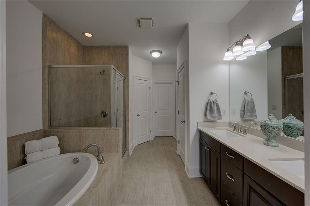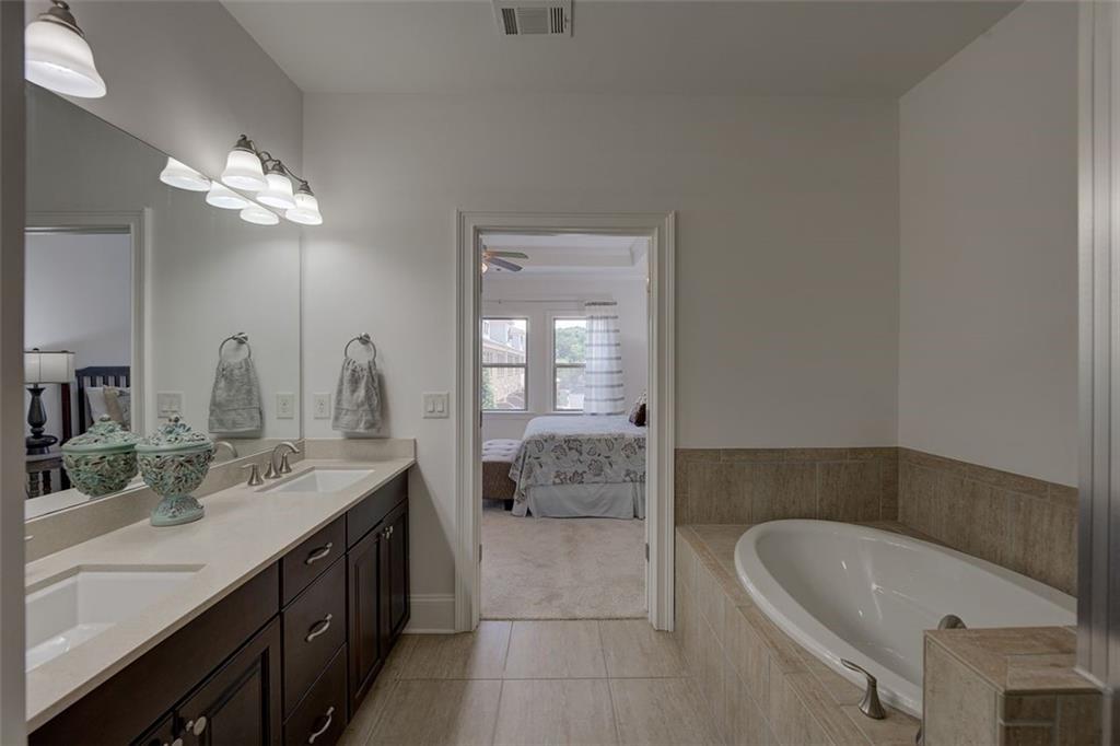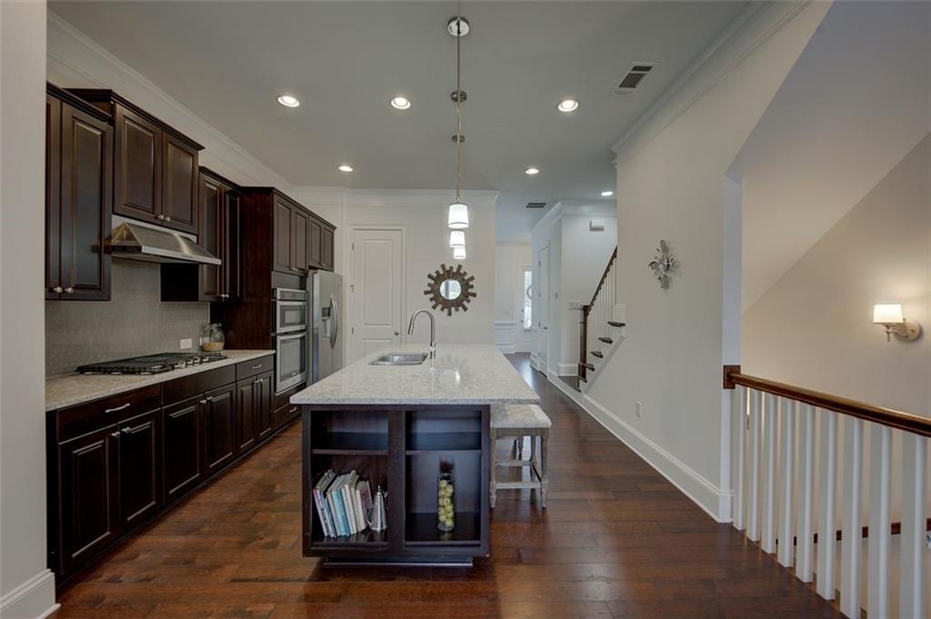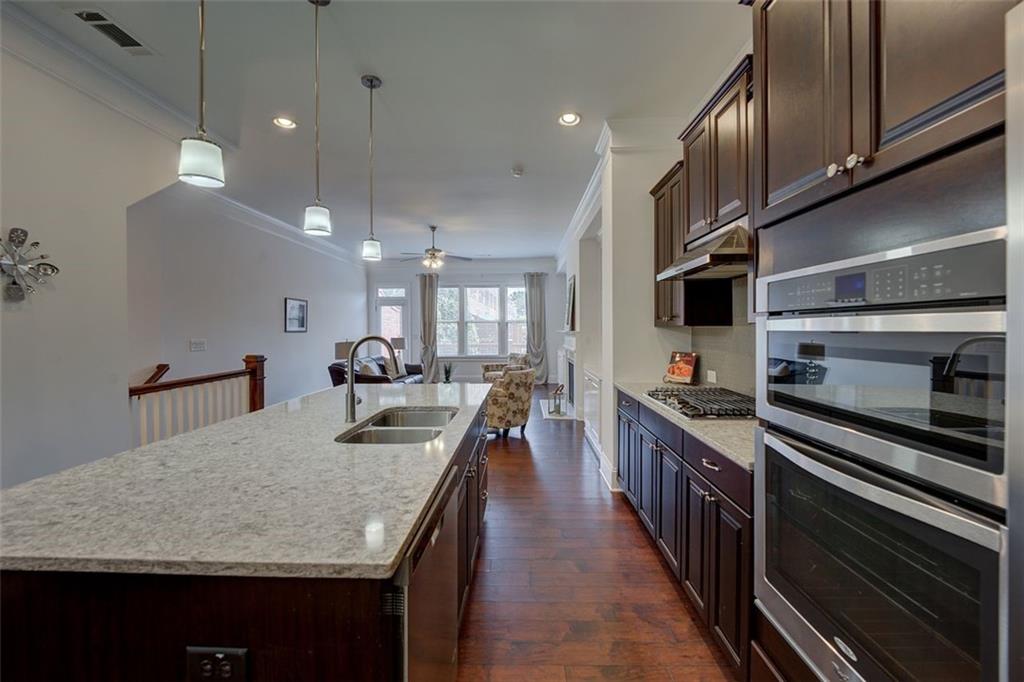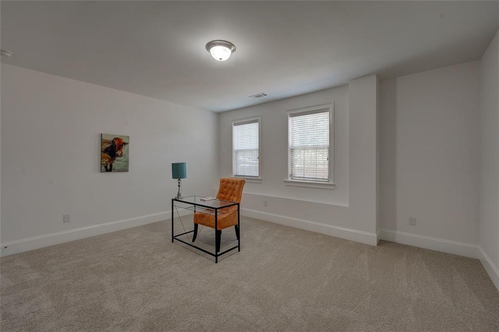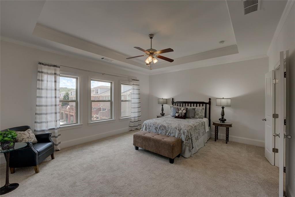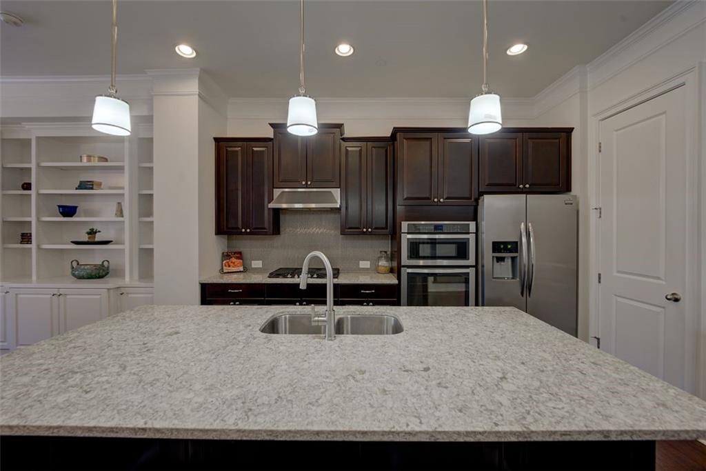 Ever dreamed of taking a stroll from your home to the park? Or walk across the street to the grocery, shops or restaurants? Here is your chance! Beautifully designed gated community only steps to Abernathy Greenway, tons of retail, Sandy Springs Tennis Center and more! The central location allows you to be on highways/interstates quickly, as well as a short drive to the numerous wonderful things to do and places to go in Sandy Springs! Spacious yet comfortable, this newly repainted and newly carpeted stunning home boasts 3 bedrooms, all with en-suite baths. A downstairs guest room offers privacy, while the primary and another secondary bedroom are upstairs. Rest and relaxation are easily achieved in the large primary bedroom and the luxe bath with soaking tub, tile shower stall, dual sink vanity, private water closet and walk-in clothing closet. The heart of the home has stunning flooring, a chef’s kitchen, dining room, powder room and fireside den with built-ins! If you enjoy cooking you will love this kitchen: stainless energy star appliances; tons of wood tone cabinetry; quartz counters; an island with bar seating; lovely glass tile backsplash and a large pantry. The openness of the floorplan is the ideal flow for large gatherings! Oversized furniture is no problem with this den space! A glass door from the den opens to the deck. Bathed in natural light throughout, this one feels like home! And there is a community pool for cooling off during the heat of summer!