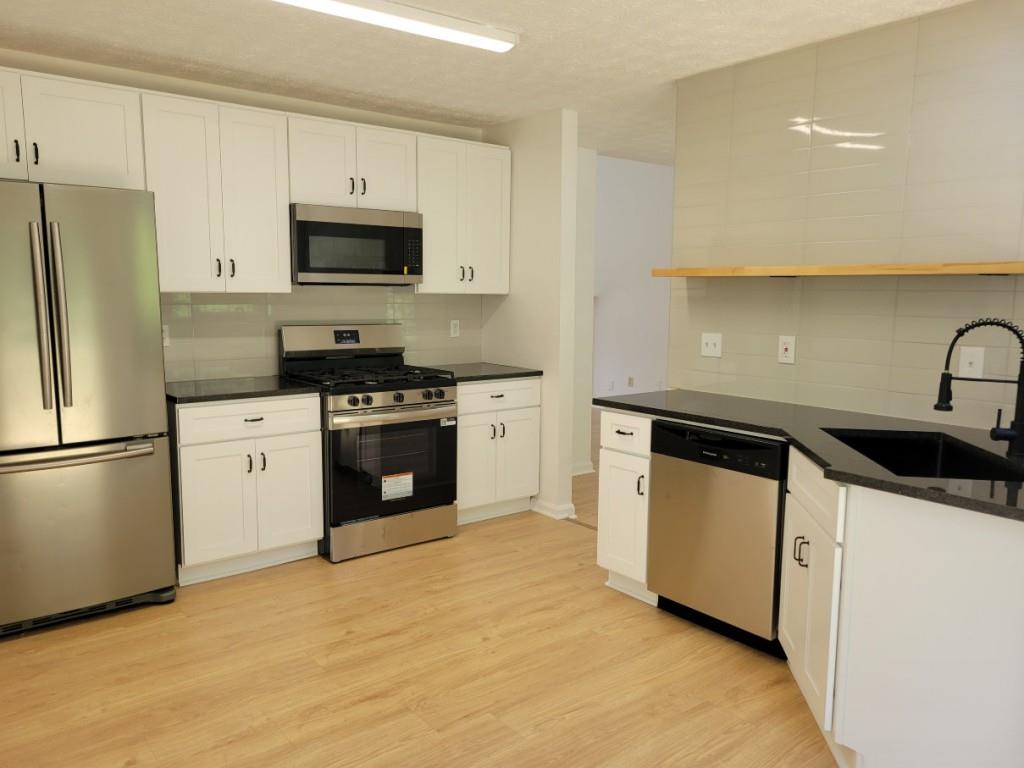 Welcome to this renovated 5-bedroom/3-bathroom home in a cul de sac in Decatur! Many recent updates -- cabinets, countertops, appliances, interior/exterior paint, flooring, lighting, hardware, plumbing fixtures, deck, garage doors, and more! Fireplace. Family room. 5th bedroom could be flex space with a walk-out to a lower level patio. Nice quiet neighborhood within minutes of I-285.