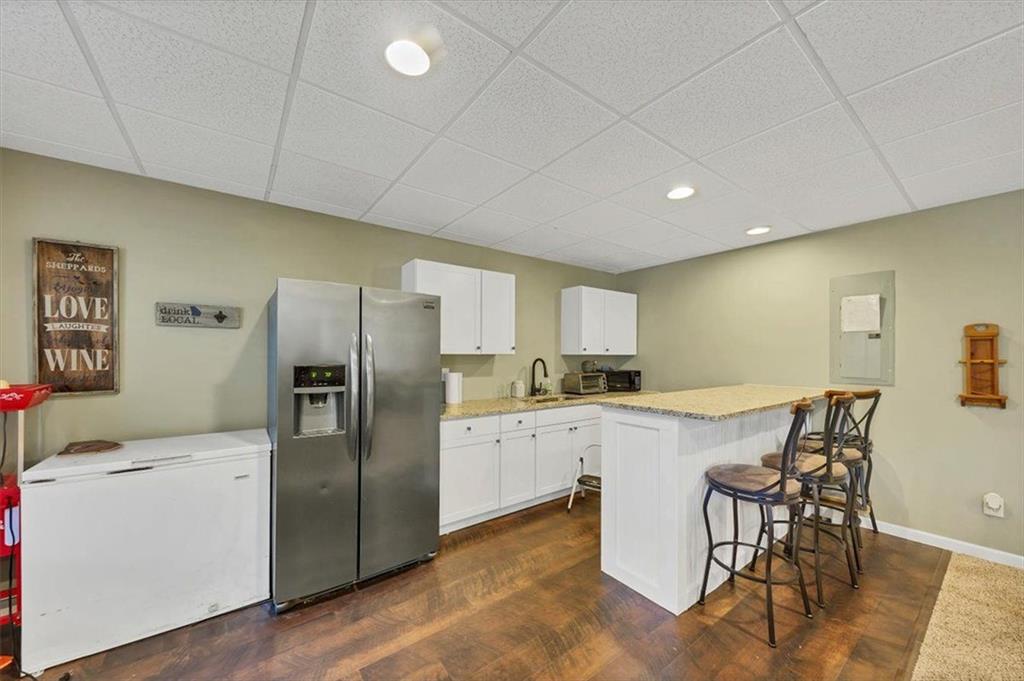 - KitchenBreakfast Room, Breakfast Bar, Cabinets Stain, Stone Counters, Tile Counters, Kitchen Island, Eat-in Kitchen, Pantry, Pantry Walk-In, View to Family Room