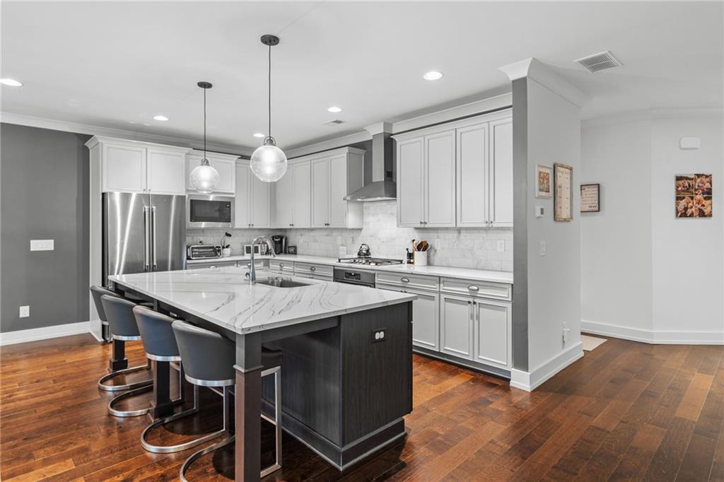 This beautifully maintained 3-bedroom, 2.5-bath townhome offers over 2,500 square feet of spacious, modern living. The open floor plan features hardwood floors, a cozy fireplace, and a gourmet kitchen with stainless steel appliances, granite countertops, and an oversized island—perfect for entertaining. Upstairs, you'll find a luxurious primary suite with a spa-like bath and generous closet space. Enjoy your morning coffee on the private covered patio or take advantage of the community amenities, including covered barbeque area and dog park. Conveniently located just minutes from vibrant Downtown Roswell and Downtown Woodstock, shopping, dining, and top-rated schools. This is low-maintenance living at its finest! Home has an elevator shaft if you want to have one installed.