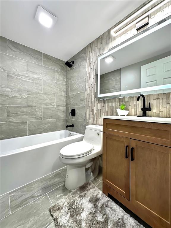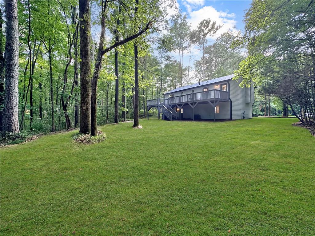 Welcome to 2555 Rexs Place, a stunningly renovated 5-bedroom, 3-bathroom home tucked away in a quiet cul-de-sac with no HOA—offering the perfect blend of luxury, privacy, and convenience. Just minutes from I-85 and the Mall of Georgia, this move-in-ready home sits on a beautifully private and completely flat lot, recently upgraded with fresh new sod. Surrounded by mature trees and nestled away from the street, this secluded property provides peace and tranquility while still being close to everything you need. Step inside to an open-concept layout filled with natural light and thoughtful upgrades throughout. The spacious living area features brand-new ¾” hardwood floors and a show-stopping, floor-to-ceiling tiled fireplace. The heart of the home is the gourmet kitchen, complete with custom soft-close shaker cabinets, quartz countertops, a subway tile backsplash, and brand-new stainless steel appliances, including a gas stove, dishwasher, and hood vent. The main level includes three generously sized bedrooms, including a serene primary suite with a spa-like bathroom showcasing a large tiled shower, modern vanity, LED lighted mirror, and high-end finishes. Two additional bedrooms share a stylish full bathroom with updated tile, lighting, and fixtures. The fully finished basement offers two more spacious bedrooms, a full bathroom with a tub/shower combo, and a private exterior entrance—making it perfect for extended family, guests, or rental income potential. Each level has its own laundry hookups for added flexibility and ease. Outside, enjoy the oversized full-length back deck, ideal for entertaining or relaxing while overlooking your expansive, private backyard. The freshly stained deck and new front porch with modern metal pickets enhance the home’s curb appeal, while the long, flat driveway and two-car garage provide ample parking and storage space. Additional upgrades include a brand-new roof, new HVAC system, new gutters, fresh interior and exterior paint, new carpet in the bedrooms, new LVP flooring in the basement, new tile in the kitchen and baths, new lighting, faucets, ceiling fans, and hardware throughout, and new garage doors and motors. With no HOA, a rare private and level lot, and every modern upgrade already completed, this home offers an unbeatable value in a highly desirable location. Whether you're looking for space, style, or a turnkey investment, 2555 Rexs Place is ready to welcome you home. Schedule your private tour today—this one won’t last!
