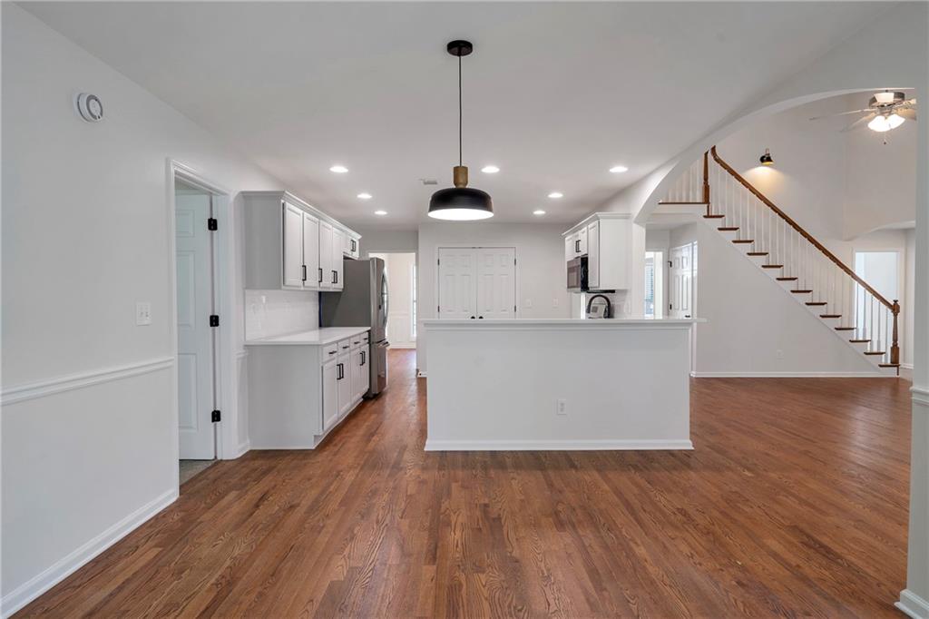 - KitchenBreakfast Bar, Cabinets Other, Eat-in Kitchen, Pantry, Solid Surface Counters, View to Family Room