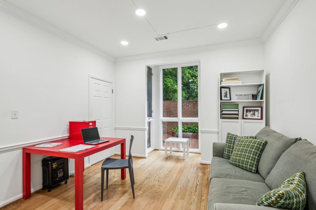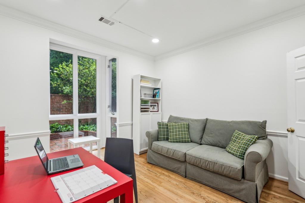 This lovely 4 bedroom brick townhome is so convenient yet quiet. It is inside the perimeter and between Roswell Rd and 400, so there is unlimited shopping and restaurants, along with easy access to Buckhead, Sandy Springs, Perimeter Mall, and Dunwoody. You start in a gated private courtyard. The home is light and bright and has hardwood floors throughout. To the left of the front door is a main floor bedroom/office. There is a large half bath and many residents with this floorplan have been able to add a shower in that space, to create a main floor guest room. The living room features a charming fireplace and a view of the back patio. There is a separate dining room a very large well-equipped kitchen. This kitchen was renovated a few years ago and has solid surface counters, stainless appliances, a breakfast nook, and a pantry. There are great storage closets. This home is clean and move in ready. The second floor offers an expansive primary suite with large his and her walk in closets, and a double vanity. The secondary bedrooms are also large with great closets, there is a laundry closet on the second floor and the appliances remain. Owners will pay the balance of the assessment at closing. Rental permit available!