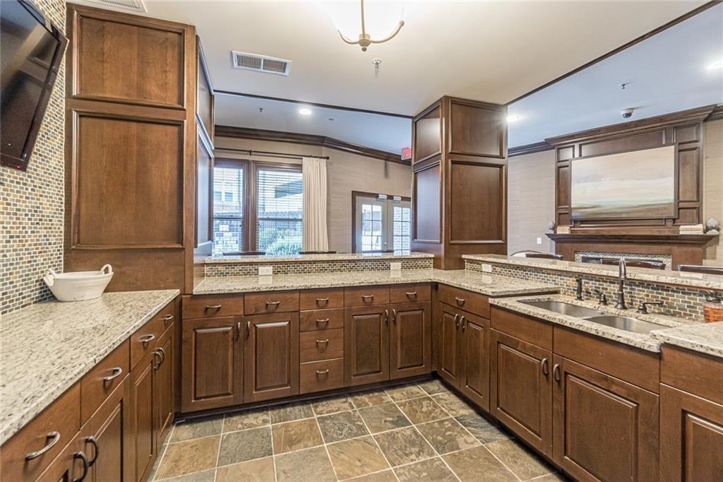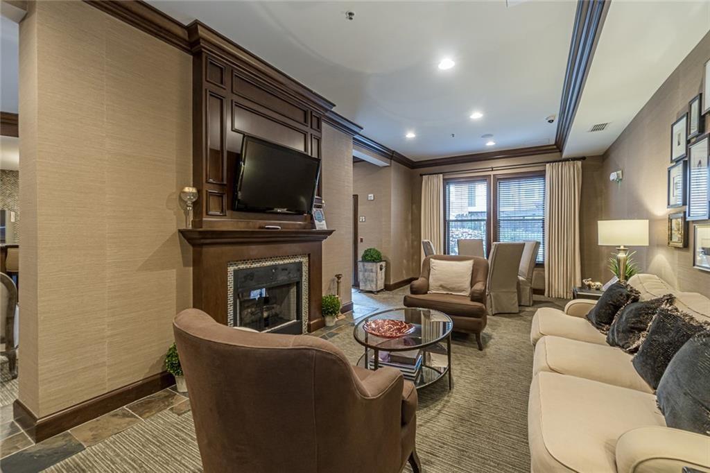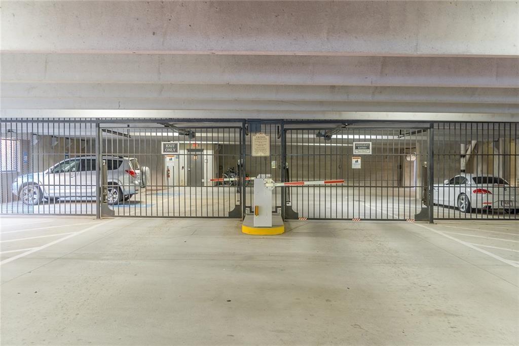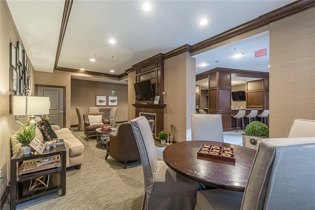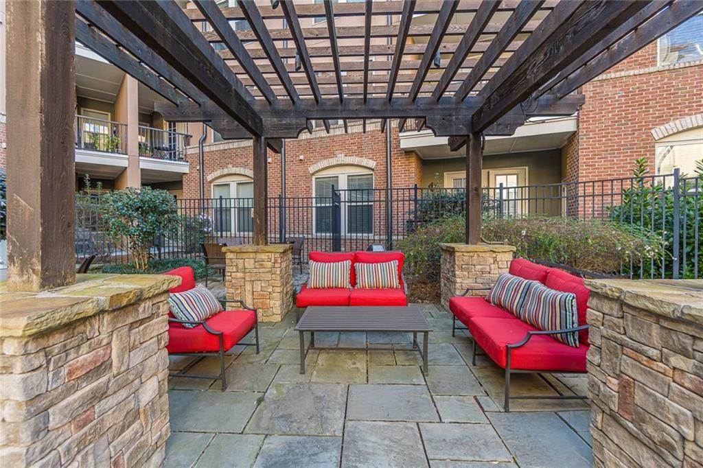 Welcome home to this beautiful condo in the Serrano community. This gorgeous unit ticks off all the boxes. Located in a private setting, this lovely home is conveniently located within walking distance to shopping, restaurants, MARTA and Mercedes Headquarters. When you walk into the foyer, you will immediately notice the freshly painted home, the hardwood floors, stainless steel appliances, granite counters, breakfast bar, open concept dining room and the new carpet for both bedrooms. Don't miss out on the master suite with new countertop and sinks, separate soaking tub and a large custom walk-in closet and a spacious second bedroom with another custom closet. Another Bonus.... your HOA dues include the high speed 1Gbps internet. Pet owners...you will love the oversized patio that walks directly out to grassy areas for your pet. No rushing to an elevator to get to the lobby to run outside! Serrano also has amazing upscale amenities including a concierge, club and media room, pool, a state-of-art fitness room and sauna. Lastly don't miss out on the two deeded parking spaces in the secured gated parking garage that is located on the same level as your home.