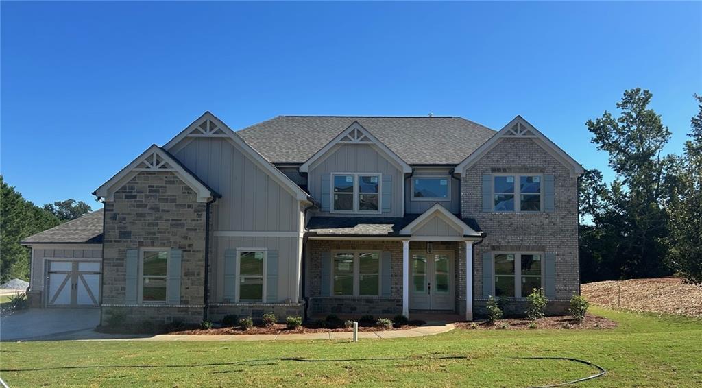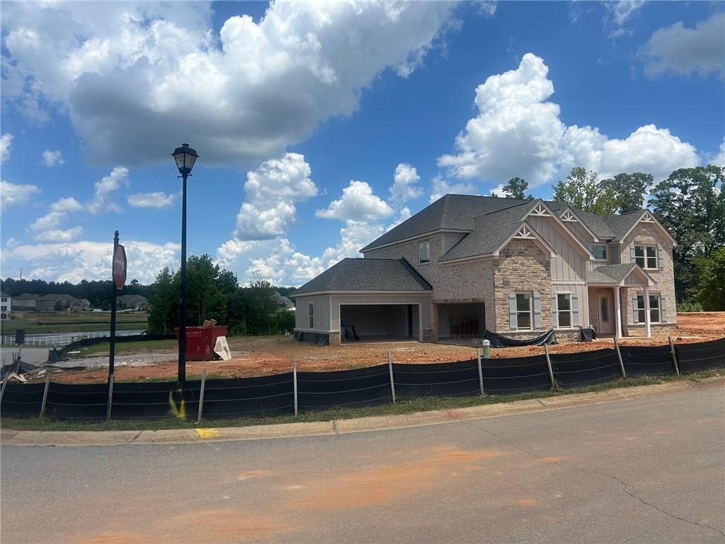 Penny Plan Lot 180: 5BR/ 4.5BA with 4 CAR GARAGE GORGEOUS LAKE VIEWS! Experience the pinnacle of tranquil living in the prestigious, established community of Sierra Lake. Nestled on an oversized homesite, this new construction retreat offers serene views from your rear covered porch and effortless access to all community amenities. Inside, the thoughtfully designed layout caters to multi-generational living with five spacious bedrooms and four and a half baths. The main level features a private guest suite, formal dining room, and a versatile living room or office, Great room complete with built-in bookcase . Entertain or unwind in the expansive media room, and enjoy cozy evenings by one of two fireplaces. The gourmet kitchen is a show stopper,with a coffee bar, and seamless flow into the living spaces. A rare 4-car garage adds convenience and storage flexibility. Location, Location, Location Just minutes from GA-400 and Lake Lanier, with top-rated schools, Northside Hospital, parks, dining, and shopping all within a 10-minute drive. Ask agent for current promotions. File Photos home is under construction.