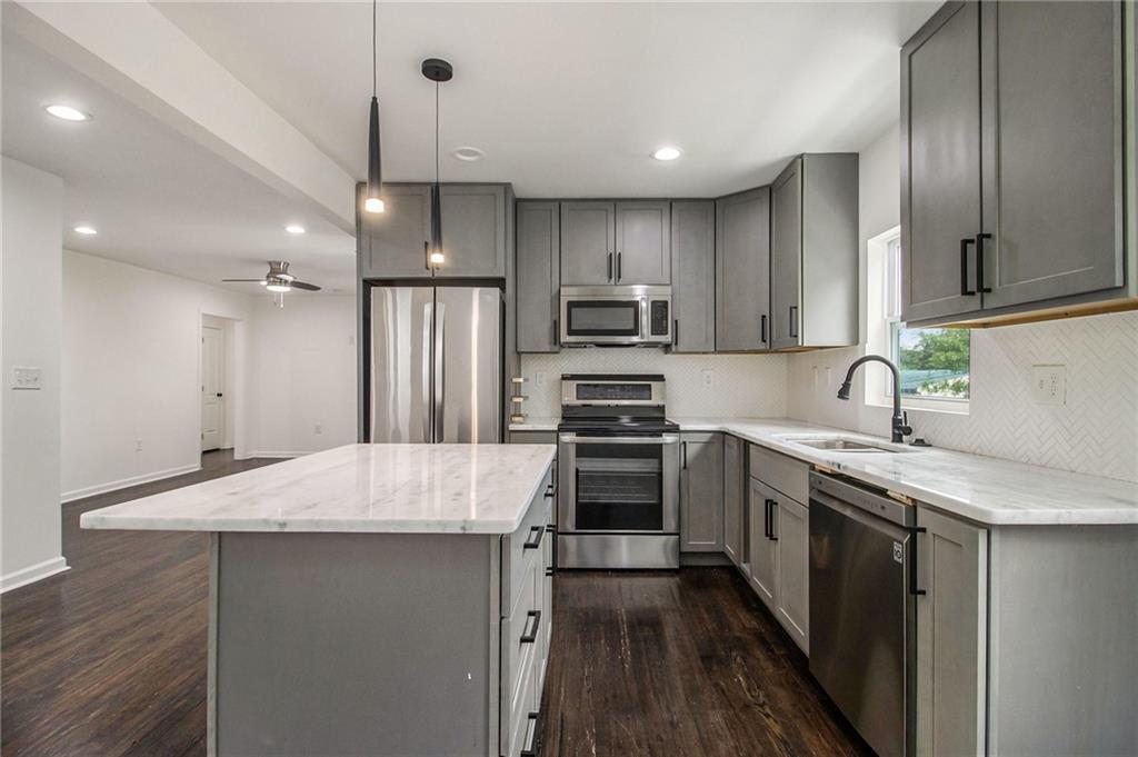 LAKEWOOD AREA HOME! Charming ranch home in the Lakewood area, just minutes from I-75/85, Downtown Atlanta, Lakewood Amphitheater & Stadium, and a block from South Bend Park. This 3-bedroom, 2-bathroom home features beautiful wood floors throughout and a stylish kitchen with marble countertops, an island, recessed lighting, and sleek stainless steel appliances. The spacious primary ensuite boasts a double vanity, glass shower, and walk-in closet. A dedicated laundry room comes equipped with a full-size washer and dryer. Step outside to a wood-fenced backyard, offering privacy and the perfect space for outdoor enjoyment. Discounted rate options and no lender fee future refinancing may be available for qualified buyers of this home.