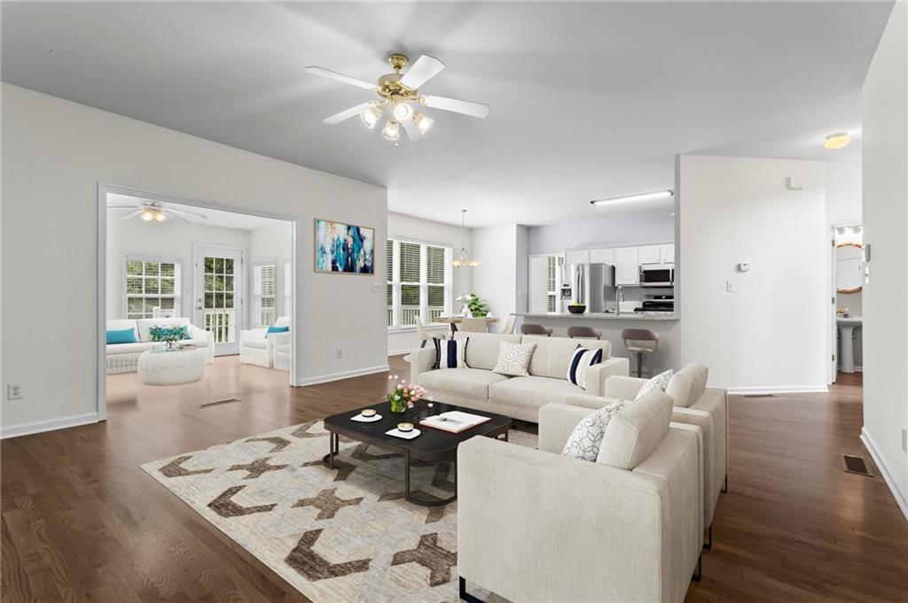 Price Improvement! Move-in Ready! Step inside to a two-story foyer and real hard wood floors throughout the main level. The separate dining room and living room offer elegant spaces perfect for entertaining. The kitchen features new stainless-steel appliances, a gas range, that opens to the inviting family room and sun room. Off the breakfast area, a deck overlooks the private, wooded, fenced backyard, 0.64 acres with your own fig tree. Upstairs, you'll find 4 spacious bedrooms, including an oversized master suite with a soaking tub, separate shower, double vanity, and his and hers closets. Downstairs, a fully finished basement includes a second kitchen, 2 bedrooms, second laundry room and full bath — perfect for an in-law suite, multi-generational setup or rental. Freshly painted throughout and hardwood floors refinished. The community also offers swimming and tennis amenities for residents to enjoy. It is conveniently located near Suwanee Town Center, Sims Lake Park, shopping, and dining!