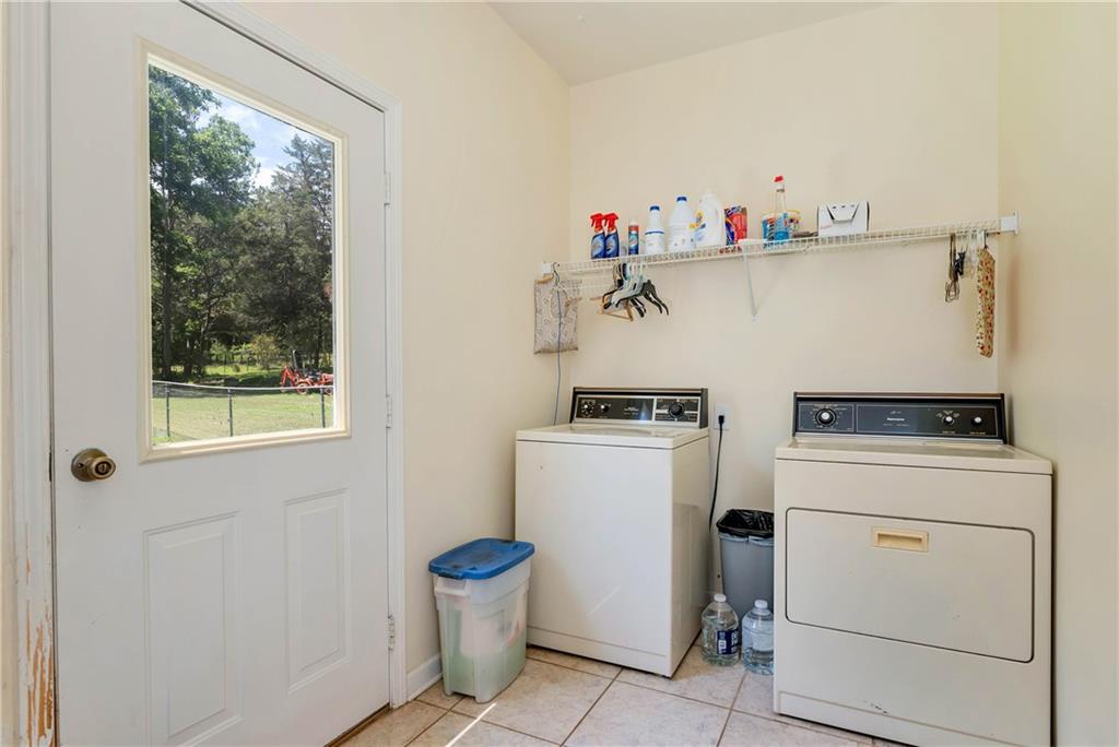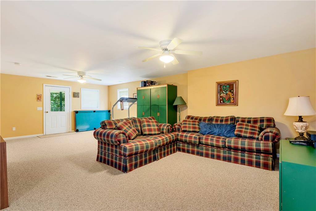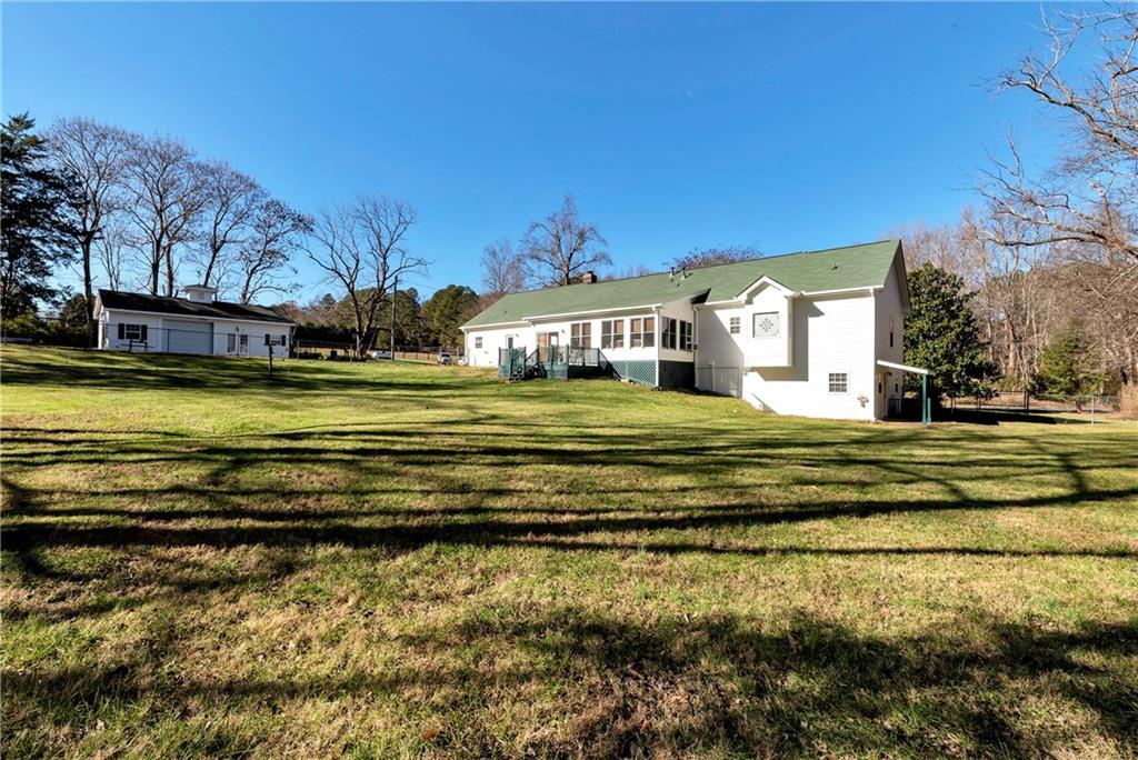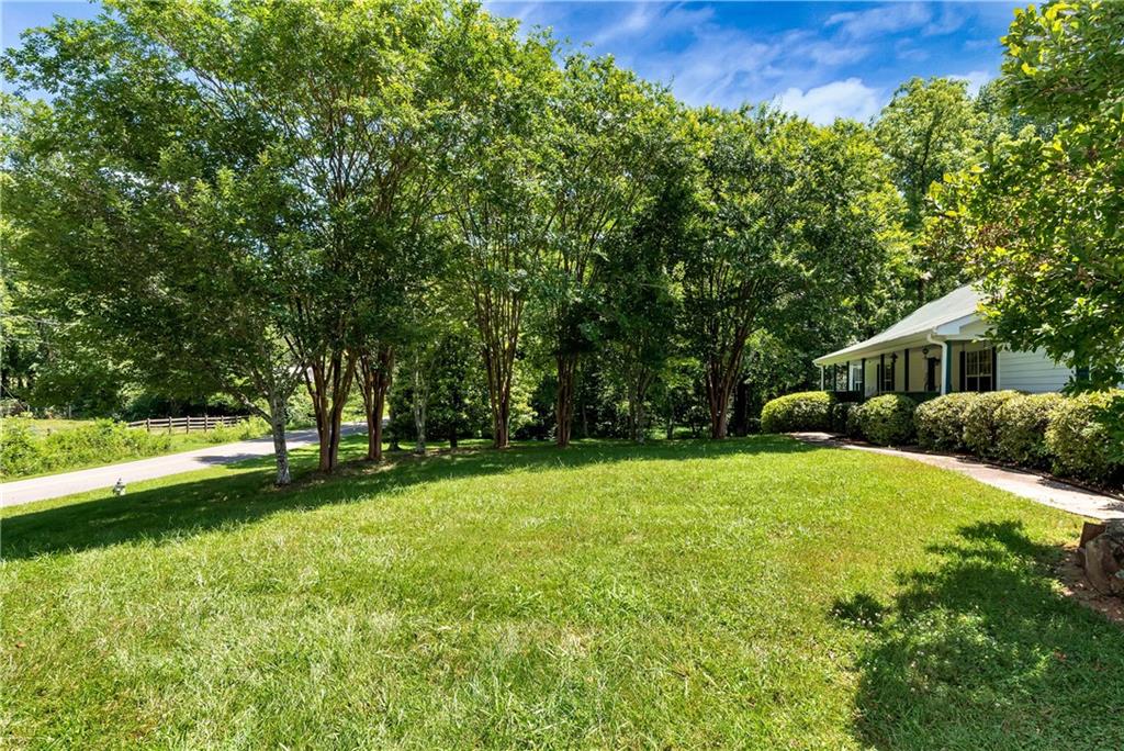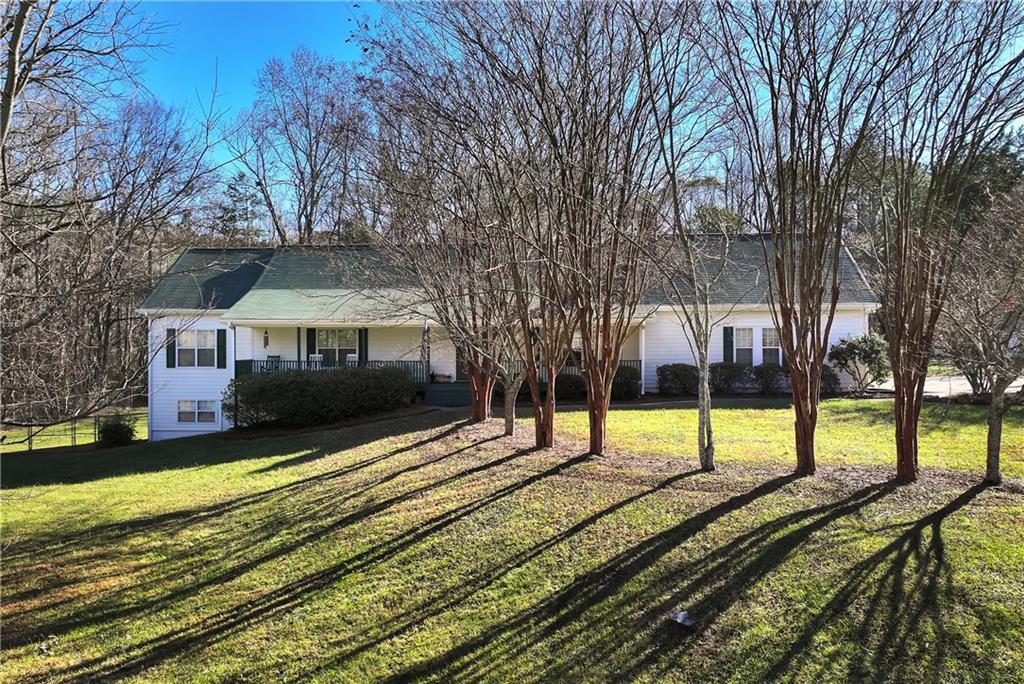 Welcome to this warm and inviting property on 3.48 acres with two creeks meandering along the side and rear of the land. Enjoy the picturesque barn, mature trees, and scenic views of the horse farm and pasture across the street. Located in the sought-after North Forsyth school district. The main level offers a comfortable layout with a stone fireplace in the living room, kitchen with bar seating, breakfast area, and a sunroom stretching across the back of the home. Spacious laundry room and 2-car garage with additional storage. Primary suite on main with en-suite bath, plus two additional bedrooms and a full bath. Finished basement includes a second living area, bedroom, and full bath—ideal for guests or multi-generational living. New HVAC systems installed in spring 2024 for both levels; septic recently pumped and upgraded with ground ports. Outside, you'll find a versatile workshop with garage door, heating and air, and plumbing already in place. A perfect blend of privacy and functionality in a quiet country setting.
