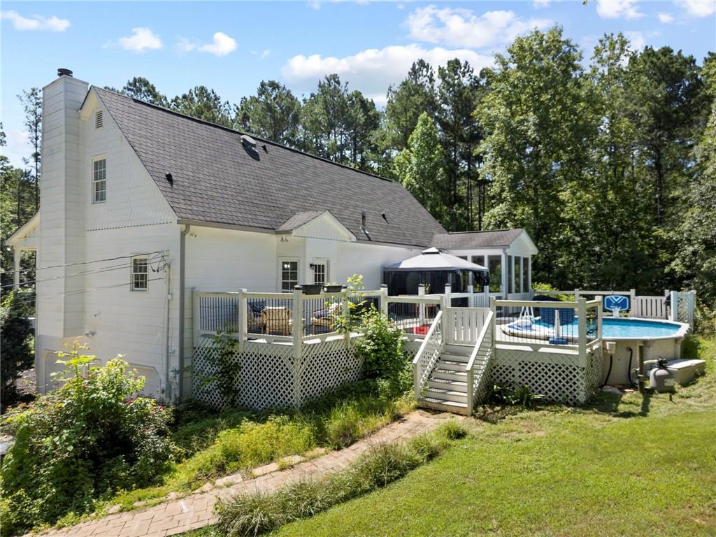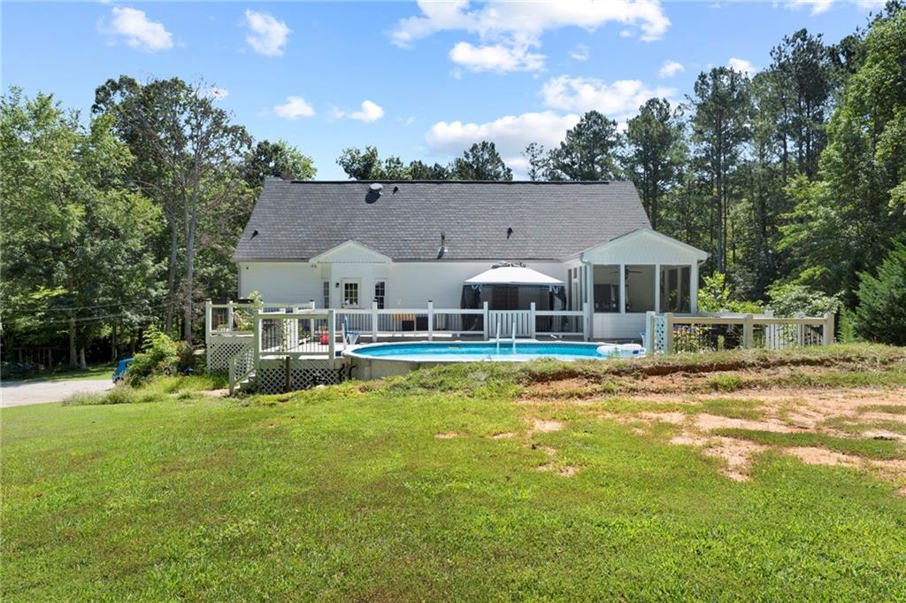 Beautifully Recently Updated 5-Bedroom, 3.5-Bath Estate on Nearly 5 Serene Acres. Welcome to your dream property— recently updated and perfectly positioned on nearly 5 usable acres of peaceful countryside. This stunning 5-bedroom, 3.5-bath home has been thoughtfully updated throughout, featuring newer Luxury Vinyl Plank flooring, fresh interior paint, updated lighting and plumbing fixtures, granite countertops in the kitchen and bathrooms, stainless steel appliances, a brand new roof, and a new HVAC system. As you arrive via the private driveway, you'll be captivated by a picturesque bridge crossing a tranquil private creek—setting the tone for the quiet elegance of your new estate. A grand front porch welcomes you and offers scenic views of the surrounding landscape creating lasting memories under the stars. Inside, an expansive open-concept living room and kitchen greet you with an abundance of natural light and a cozy stone fireplace. The kitchen is a chef’s delight, boasting brand new custom shaker-style cabinets with soft-close doors, granite countertops, stainless steel appliances, and a large island perfect for casual seating. The oversized primary suite on the main level features a private sitting area, access to a screened-in porch, a massive walk-in closet with built-in organizers, and a luxurious En-Suite bath with double granite vanity, a spacious walk-in tile shower with dual showerheads, and a water-saving toilet. Also on the main floor is a secondary bedroom and a half bath for added convenience. Upstairs, you'll find two generously sized secondary bedrooms and a full bath. One of the bedrooms is an expansive bonus room—ideal for a media room, game room, craft studio, or guest suite. The finished basement offers flexible space for a home gym, office, den, or additional bedroom and includes a full bath with a stand-up shower. Out back, enjoy summer days on your oversized deck or screened porch overlooking the large above-ground pool—complete with a newer liner, pump, and filter, ready for years of enjoyment. A large outbuilding provides ample storage or workshop potential. This property has it all: almost 5 acres of usable land, a private creek, upgraded features throughout, and versatile spaces inside and out. A true one-of-a-kind estate ready to welcome you home.