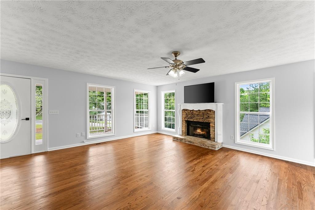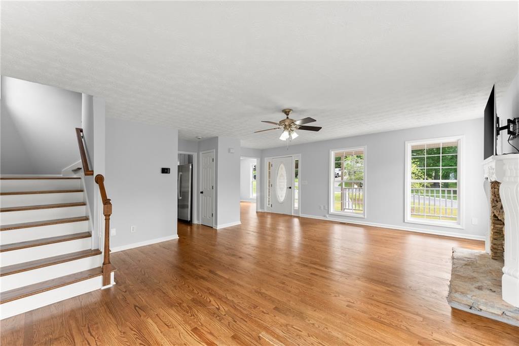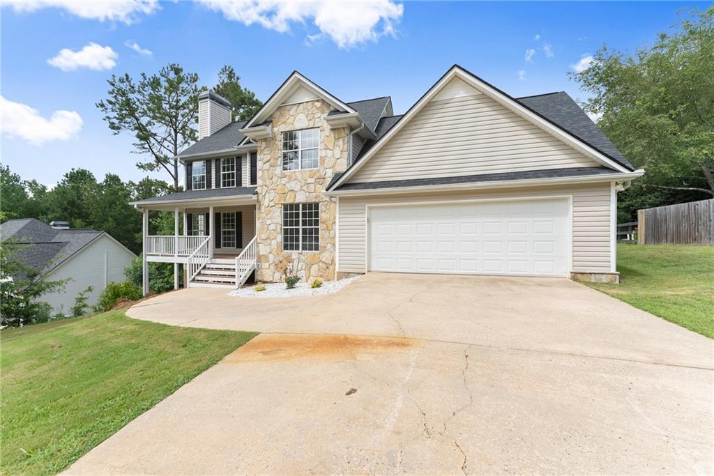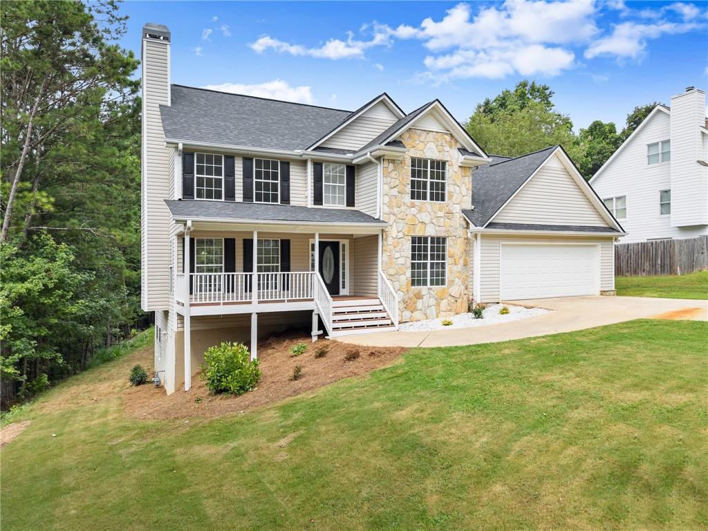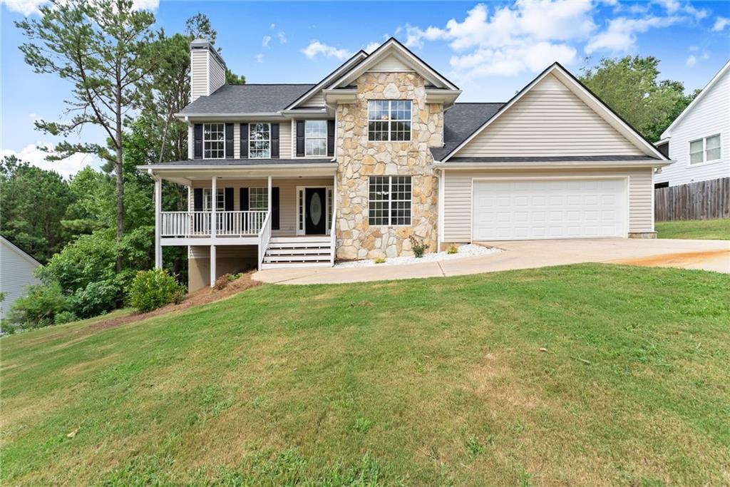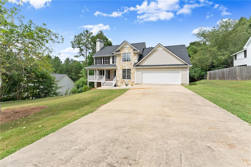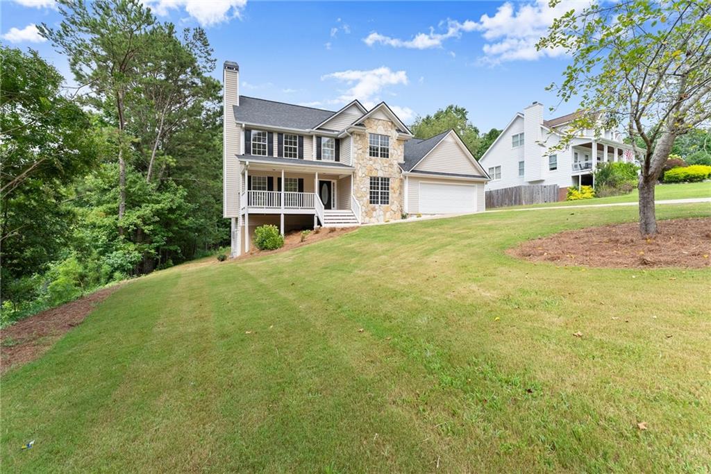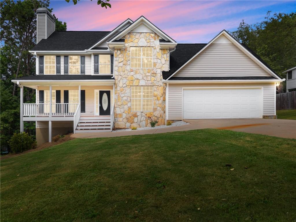 Beautiful home located in a prime Dawsonville area. Conveniently situated near Dawsonville Outlet Mall and various shopping centers. Enjoy the inviting rocking chair front porch that welcomes you into the family room with hardwood floors, a stacked stone fireplace with gas logs, and a spacious formal dining room. The eat-in kitchen opens to a deck overlooking a large private backyard. The large master suite features dual sinks, and the upstairs includes a laundry room. The finished full basement adds extra space, and there are many additional features to discover. A must-see to truly appreciate! NEW ROOF AND HARDWOODS THROUGHOUT**