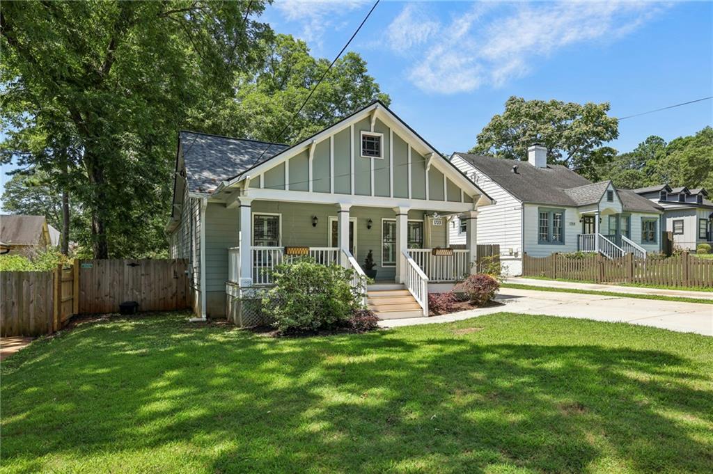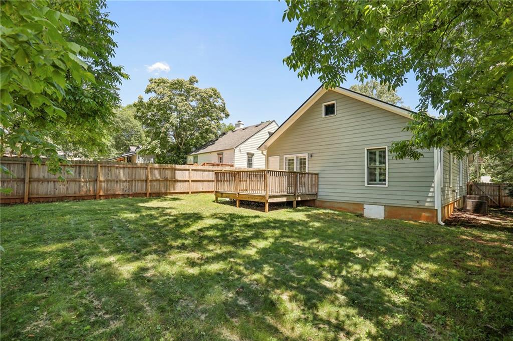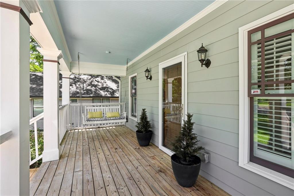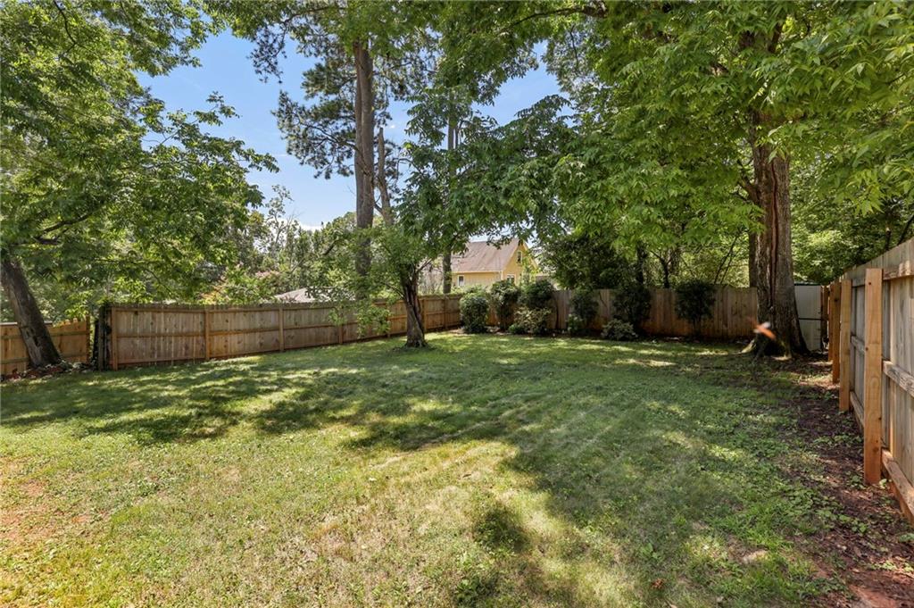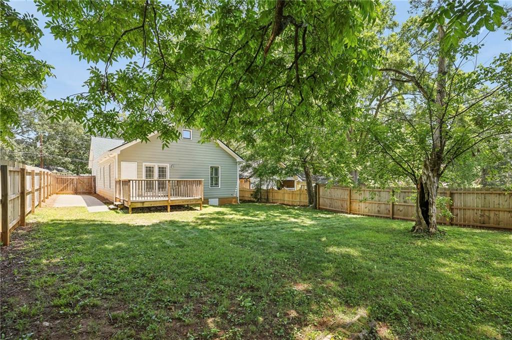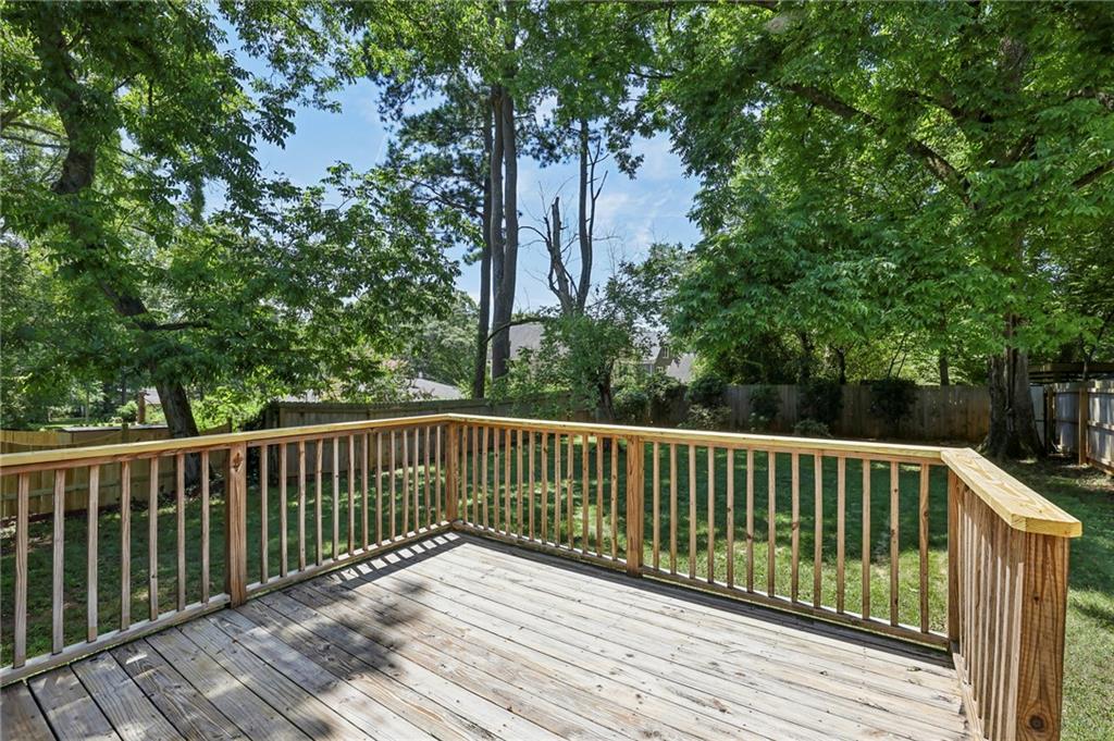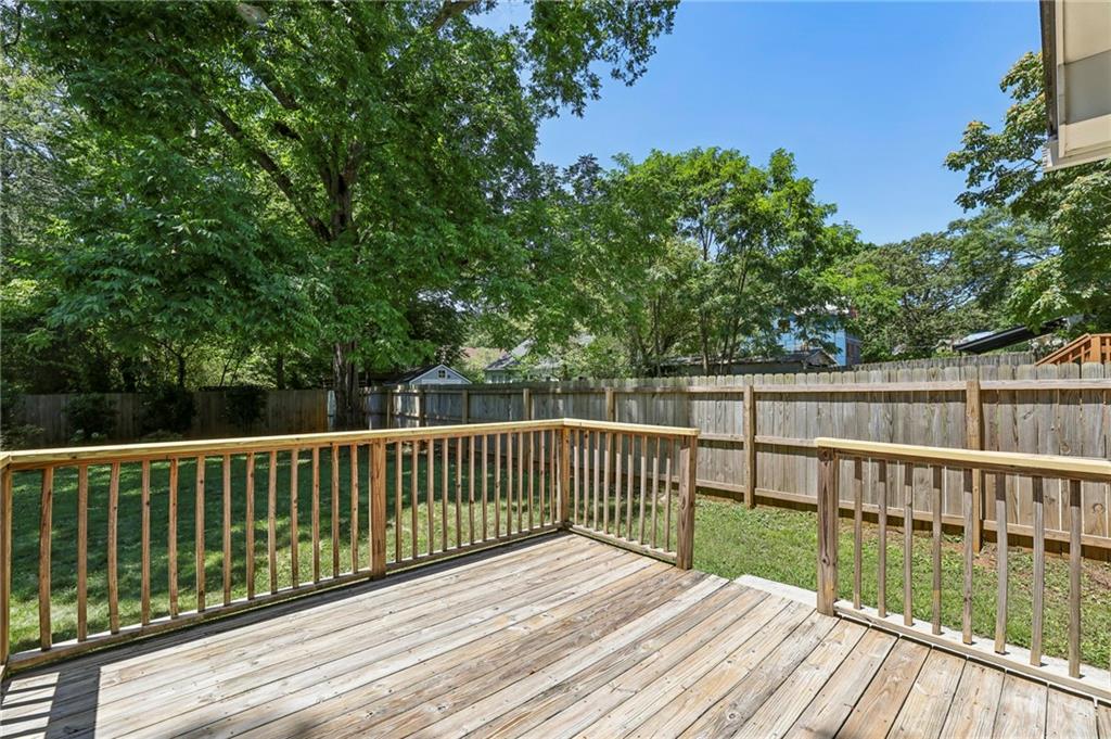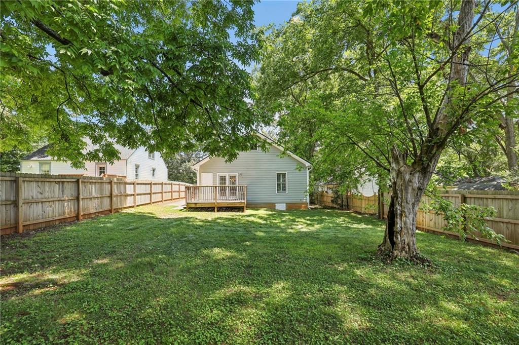 Fully Renovated 3/2 walking distance to East Atlanta Village! 1723 Flat Shoals Road was taken down to the studs and expanded in 2010/2011 and further upgraded in recent years. The home features large front porch with swing, newly refinished hardwood floors, new paint throughout home, tall/flat/vaulted ceilings with upgraded recessed lighting, living room, dining room, large great room, open kitchen, large primary bedroom with 2 closets, primary bathroom with granite double vanity and travertine shower, 2 large guest bedrooms, renovated guest bathroom, and flat walk out fenced backyard with deck. The kitchen includes granite counter tops, stainless steel appliances, stained cabinetry, peninsula with seating, and tile backsplash. Additional highlights are updated plumbing, electric, thermal pane windows, siding, new roof, newer systems, encapsulated crawl space, extra interior and exterior storage closets, and large driveway with room for parking side by side and extended to rear of home. Enjoy easy access to East Atlanta Village, Beltline, I20, Downtown, Midtown, parks, shopping, restaurants, and more.