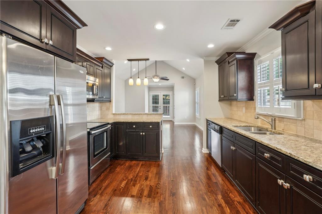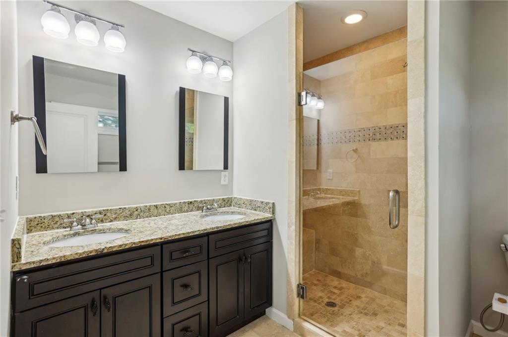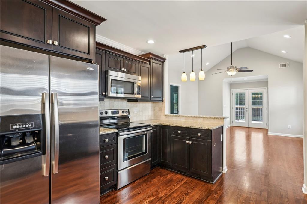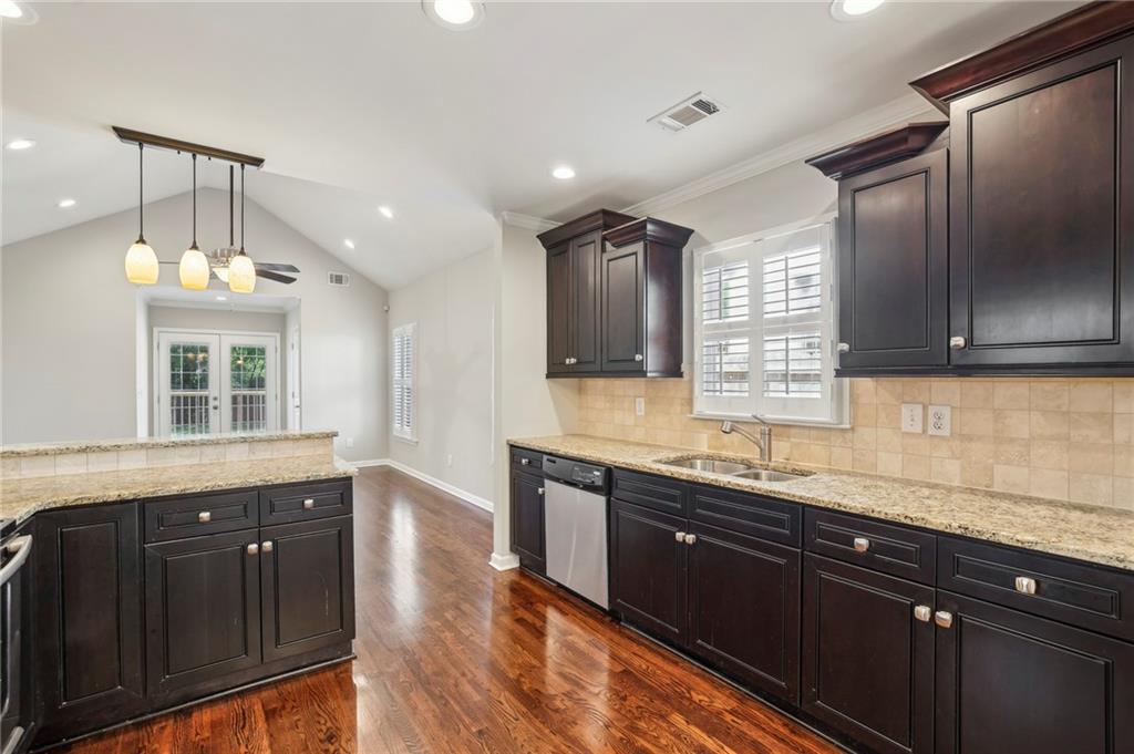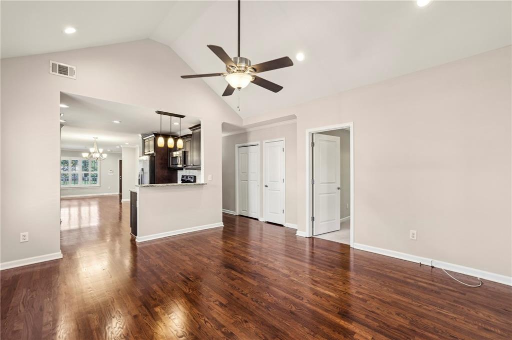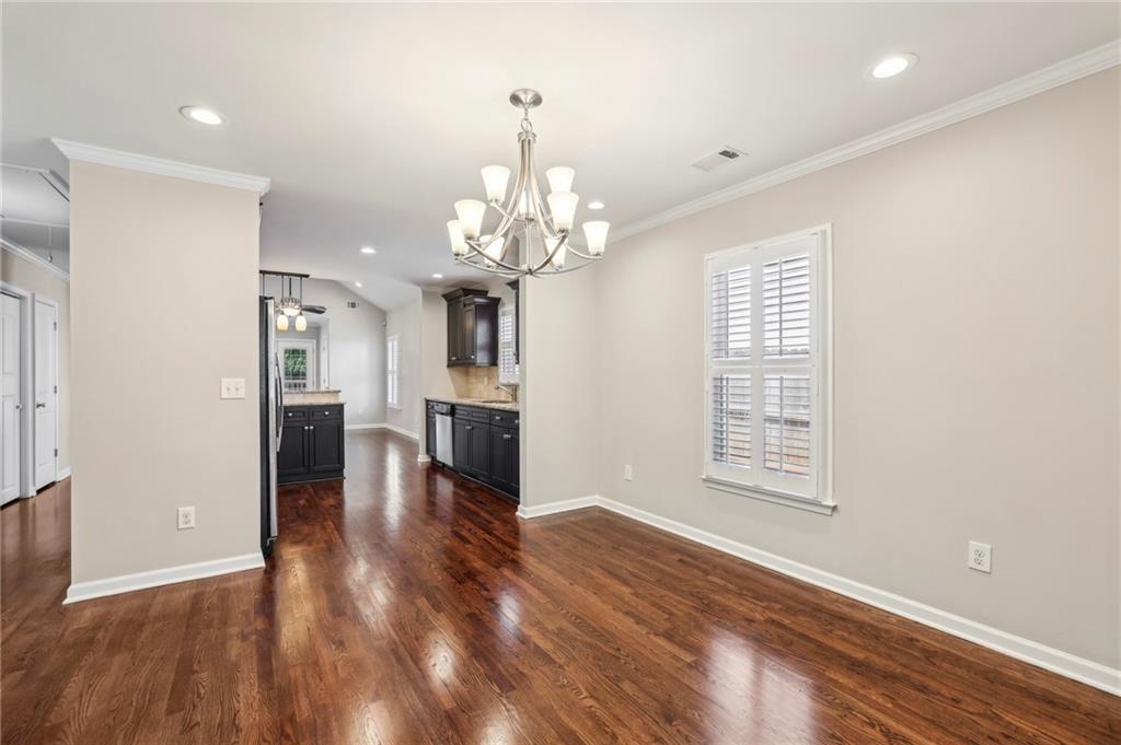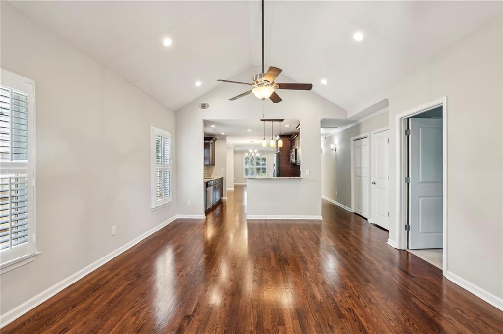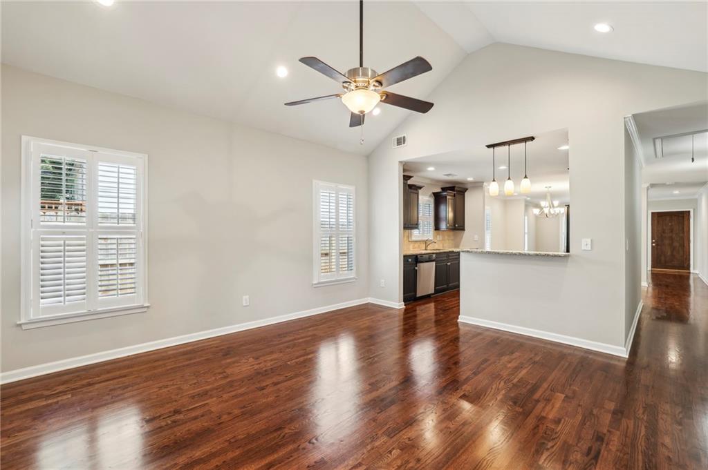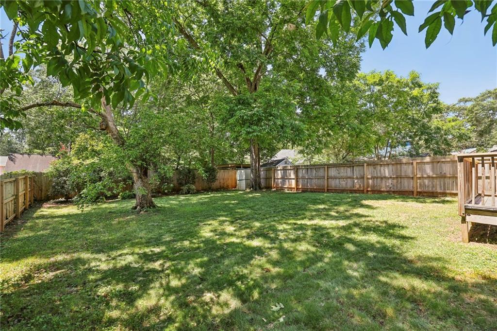 Fully Renovated 3/2 walking distance to East Atlanta Village! 1723 Flat Shoals Road was taken down to the studs and expanded in 2010/2011 and further upgraded in recent years. The home features large front porch with swing, newly refinished hardwood floors, new paint throughout home, tall/flat/vaulted ceilings with upgraded recessed lighting, living room, dining room, large great room, open kitchen, large primary bedroom with 2 closets, primary bathroom with granite double vanity and travertine shower, 2 large guest bedrooms, renovated guest bathroom, and flat walk out fenced backyard with deck. The kitchen includes granite counter tops, stainless steel appliances, stained cabinetry, peninsula with seating, and tile backsplash. Additional highlights are updated plumbing, electric, thermal pane windows, siding, new roof, newer systems, encapsulated crawl space, extra interior and exterior storage closets, and large driveway with room for parking side by side and extended to rear of home. Enjoy easy access to East Atlanta Village, Beltline, I20, Downtown, Midtown, parks, shopping, restaurants, and more.