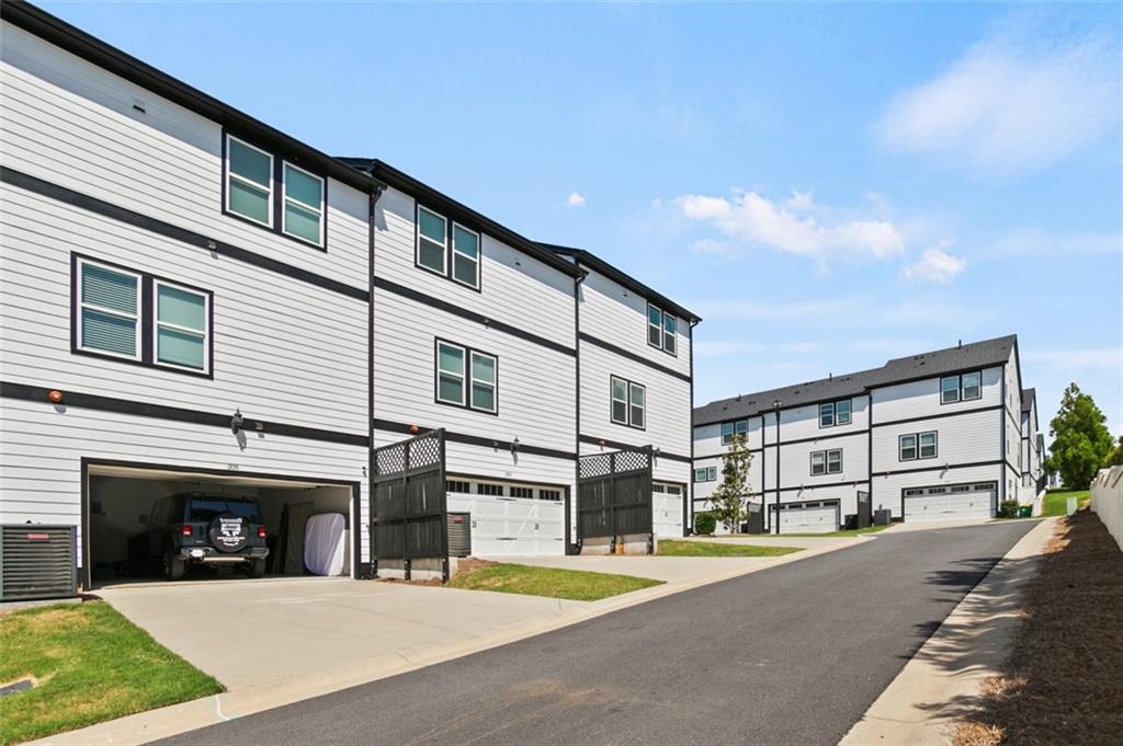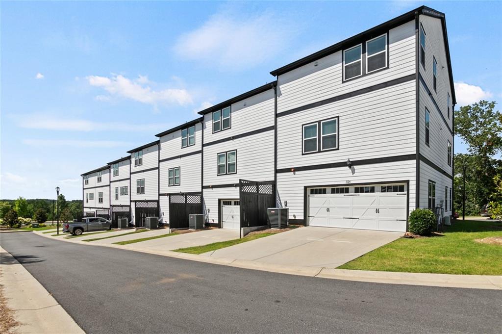 Gorgeous townhome in the perfect location! Close to shopping, dining, walking trails, downtown Woodstock and 575. This townhome features 3 stories, entering into the lower level featuring a bedroom, full bathroom and 2 car garage with opener. Heading upstairs to the main level, you'll find an open, spacious floorplan with luxury vinyl plank flooring throughout. The kitchen features a large island, light grey cabinetry, beautiful backsplash, large pantry and stainless appliances including double ovens, microwave, gas cooktop and dishwasher. The kitchen is flanked by the great room and dining room. The main level also features a half bath and closet. There is a covered front deck off the dining area. Heading upstairs, you'll find three bedrooms, including the owner's suite with large closet. The owner's bath has an oversized, tiled shower and double vanities. There are two secondary bedrooms and a full bath with double vanity and tub/shower. The laundry room is also on the upper level. Window treatments throughout home and move-in ready. Enjoy easy living in this energy efficient townhome and relax by the community pool.