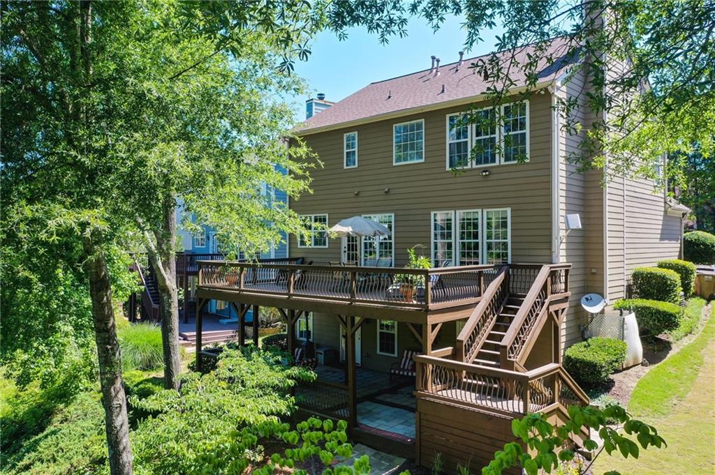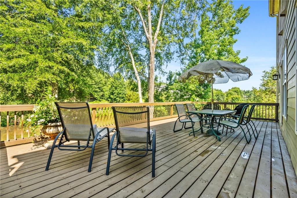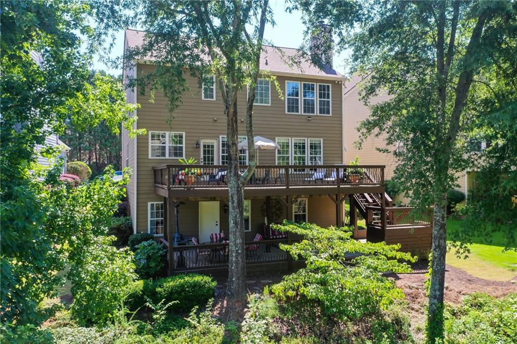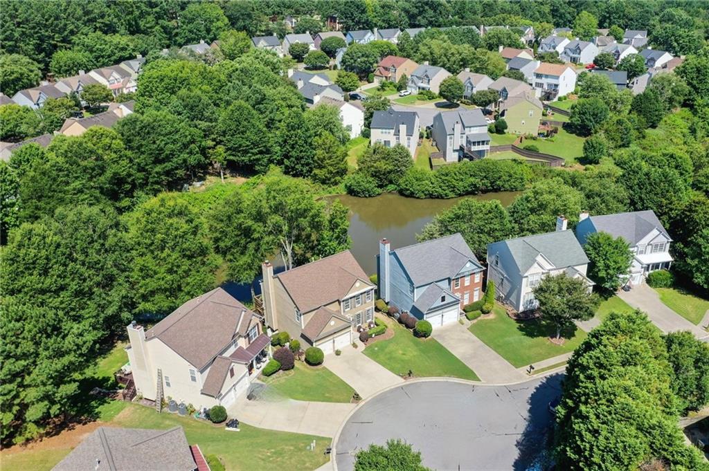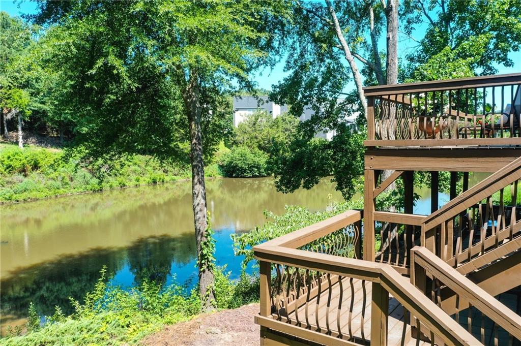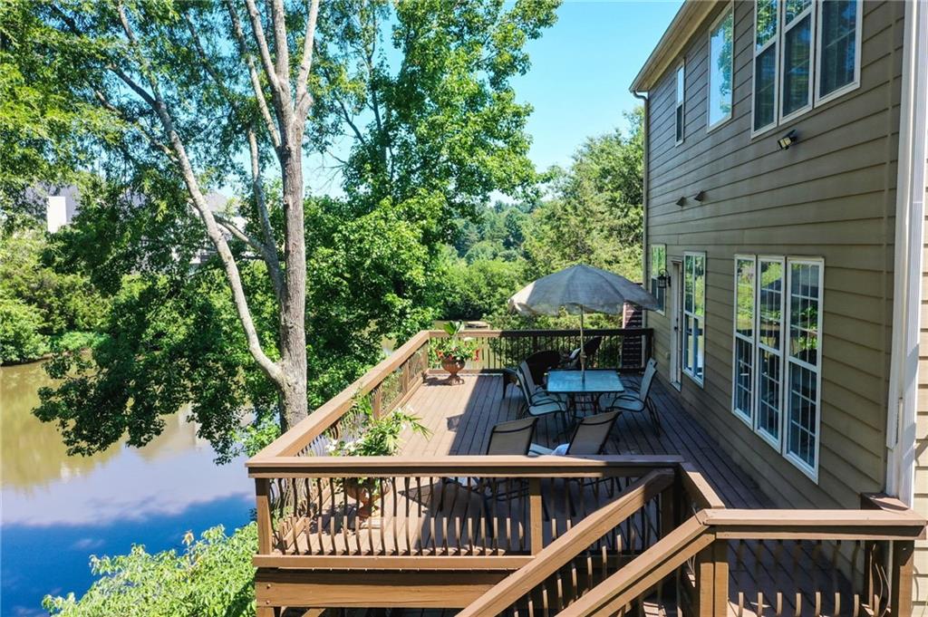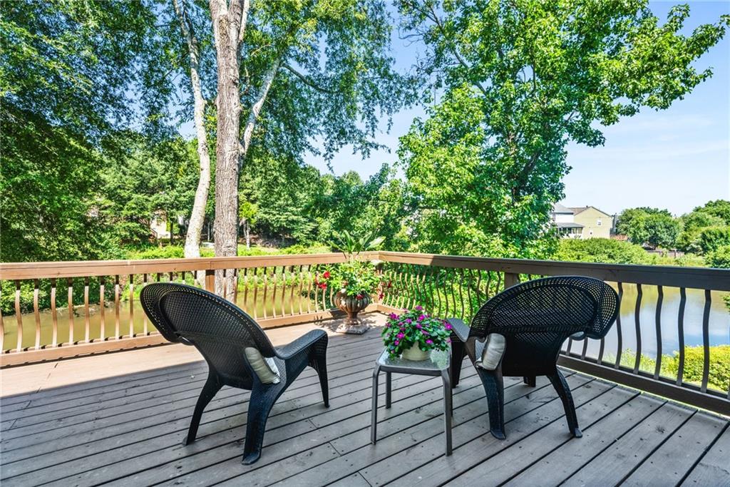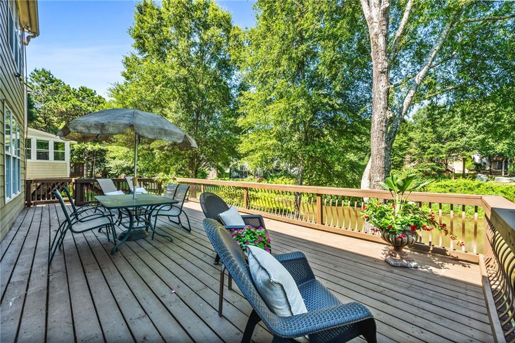 Waterfront Living at Its Finest and features a HUGE finished basement! Original owner who has loved living in this community over 2 decades!! Discover the perfect blend of tranquility and convenience in this stunning move-in ready home, nestled on a peaceful cul-de-sac with breathtaking views of a private natural habitat. Enjoy the beauty of nature from your own backyard while still being just minutes from GA 400, The Collection, Halcyon, top-rated schools, and the Big Creek Greenway. Step inside to an open and airy floor plan flooded with natural light. The main level boasts elegant floors, formal living and dining rooms, and space to entertain guests. The bright, beautiful kitchen features stained cabinetry, white countertops, and a sunny breakfast area that flows seamlessly into the cozy family room—complete with a fireplace and a wall of windows showcasing serene lake views. Upstairs, the expansive primary suite is your personal retreat with vaulted ceilings, a large walk-in closet, and a luxurious en-suite bath offering dual vanities, a soaking tub, and separate tile shower. There are three additional bedrooms and a bath and a walk-in laundry room completing the second level of the home. The finished daylight basement is an entertainer’s dream featuring a game or media areas, and room for a private bedroom—ideal for guests or future use as a gym, home theater, or in-law suite. The space offers flexible potential. Step outside to enjoy fantastic oversized deck off the main level and a patio with custom pavers situated steps away from the waterfront. These are perfect areas for relaxing or entertaining as you take in stunning lakefront sunsets and daily visits from ducks, turtles, herons, and more. This is your rare chance to own a waterfront oasis in a prime location. Don't miss this fantastic home!