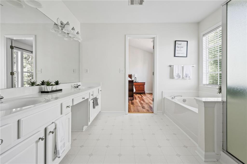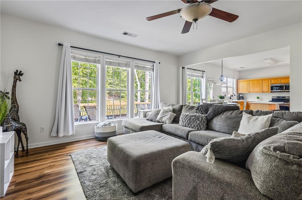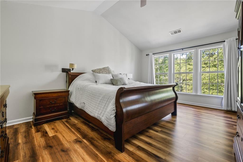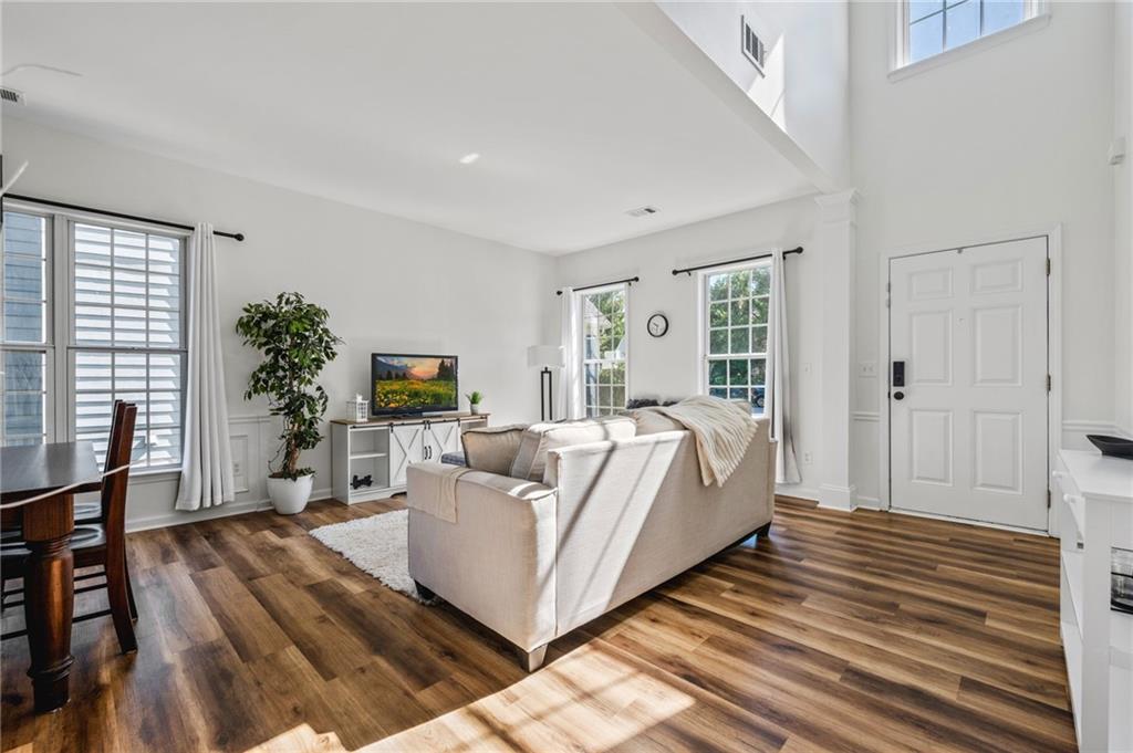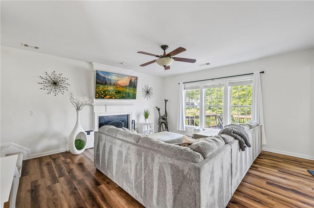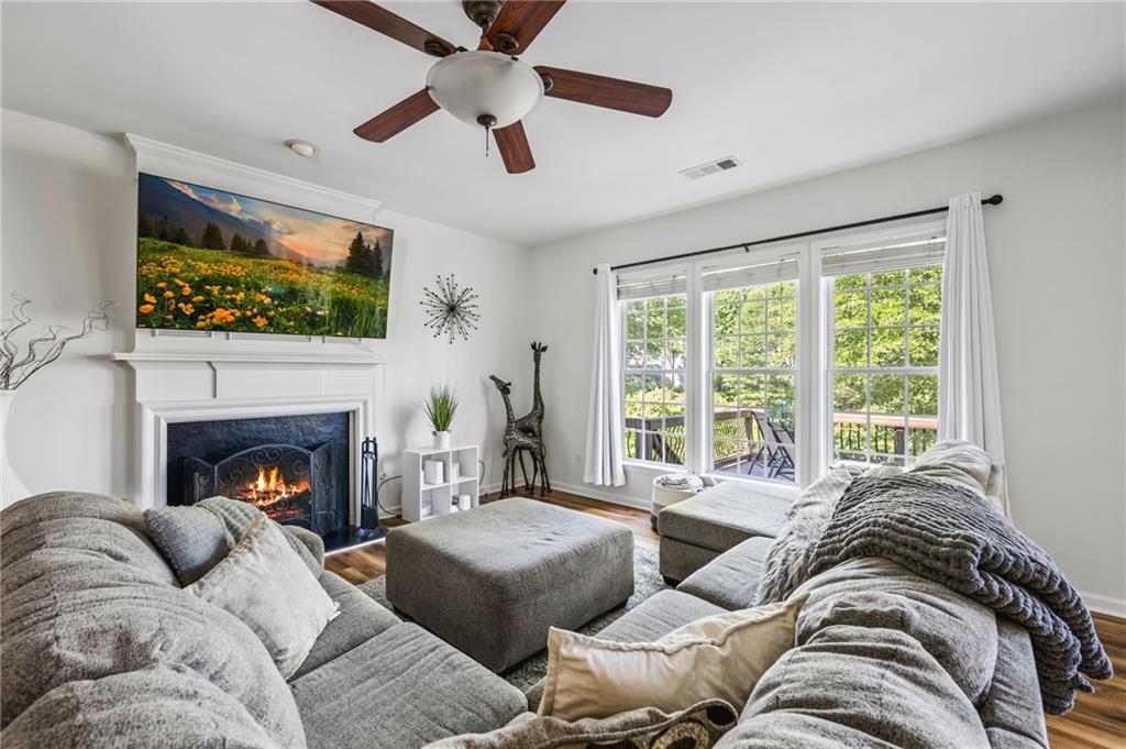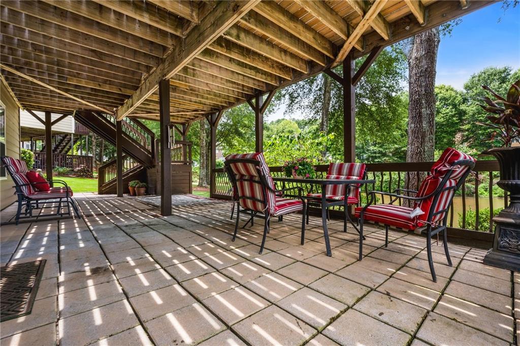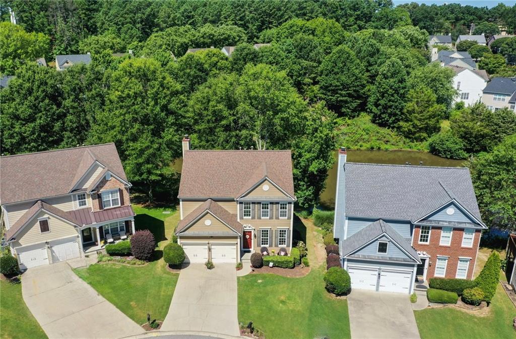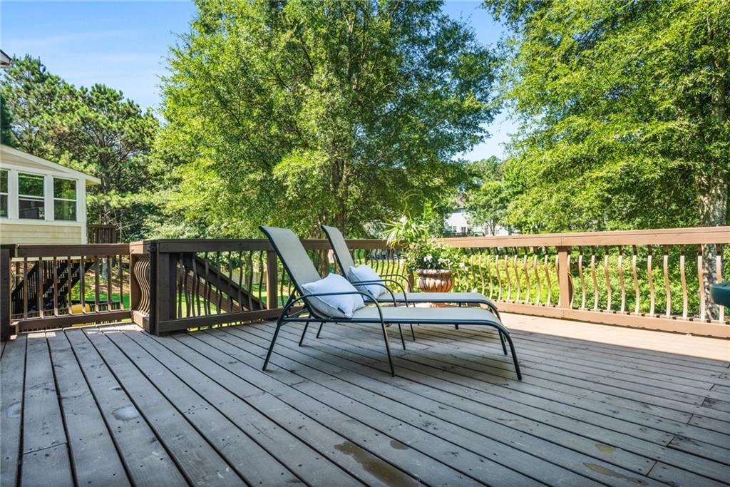 Waterfront Living at Its Finest and features a HUGE finished basement! Original owner who has loved living in this community over 2 decades!! Discover the perfect blend of tranquility and convenience in this stunning move-in ready home, nestled on a peaceful cul-de-sac with breathtaking views of a private natural habitat. Enjoy the beauty of nature from your own backyard while still being just minutes from GA 400, The Collection, Halcyon, top-rated schools, and the Big Creek Greenway. Step inside to an open and airy floor plan flooded with natural light. The main level boasts elegant floors, formal living and dining rooms, and space to entertain guests. The bright, beautiful kitchen features stained cabinetry, white countertops, and a sunny breakfast area that flows seamlessly into the cozy family room—complete with a fireplace and a wall of windows showcasing serene lake views. Upstairs, the expansive primary suite is your personal retreat with vaulted ceilings, a large walk-in closet, and a luxurious en-suite bath offering dual vanities, a soaking tub, and separate tile shower. There are three additional bedrooms and a bath and a walk-in laundry room completing the second level of the home. The finished daylight basement is an entertainer’s dream featuring a game or media areas, and room for a private bedroom—ideal for guests or future use as a gym, home theater, or in-law suite. The space offers flexible potential. Step outside to enjoy fantastic oversized deck off the main level and a patio with custom pavers situated steps away from the waterfront. These are perfect areas for relaxing or entertaining as you take in stunning lakefront sunsets and daily visits from ducks, turtles, herons, and more. This is your rare chance to own a waterfront oasis in a prime location. Don't miss this fantastic home!