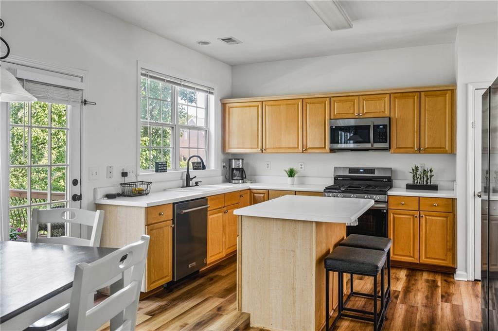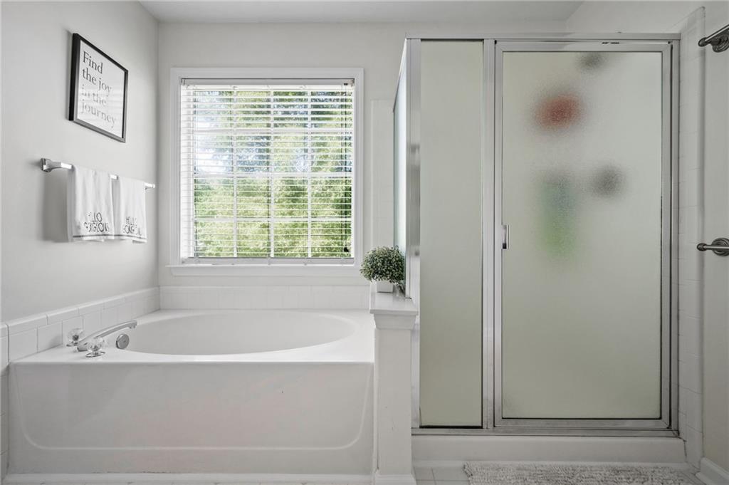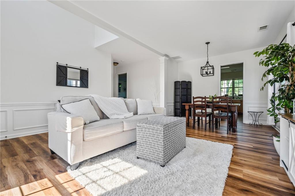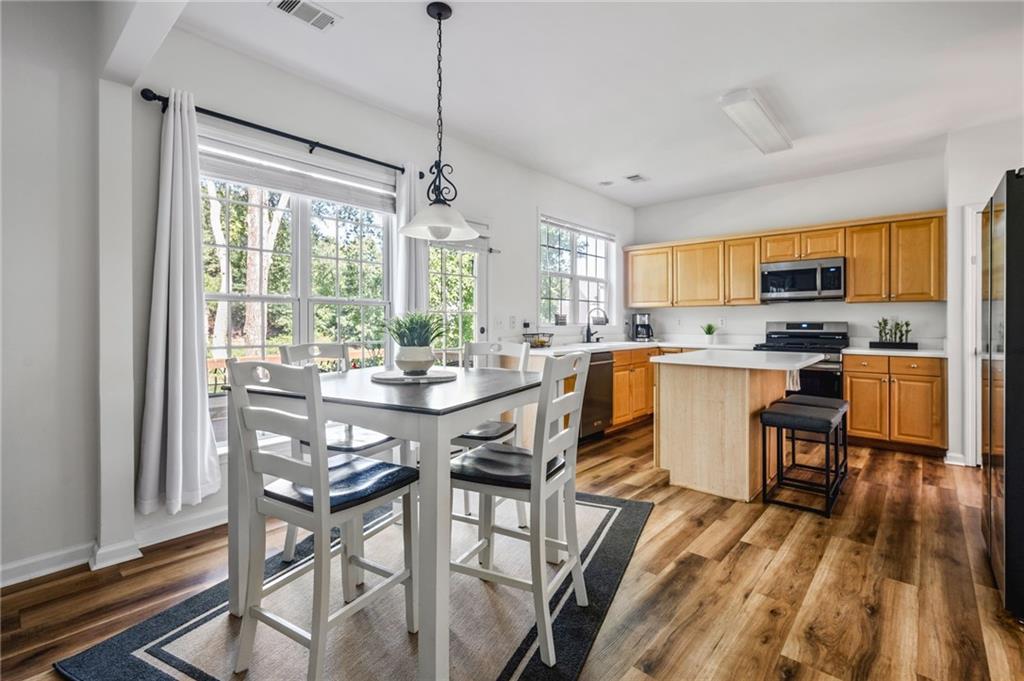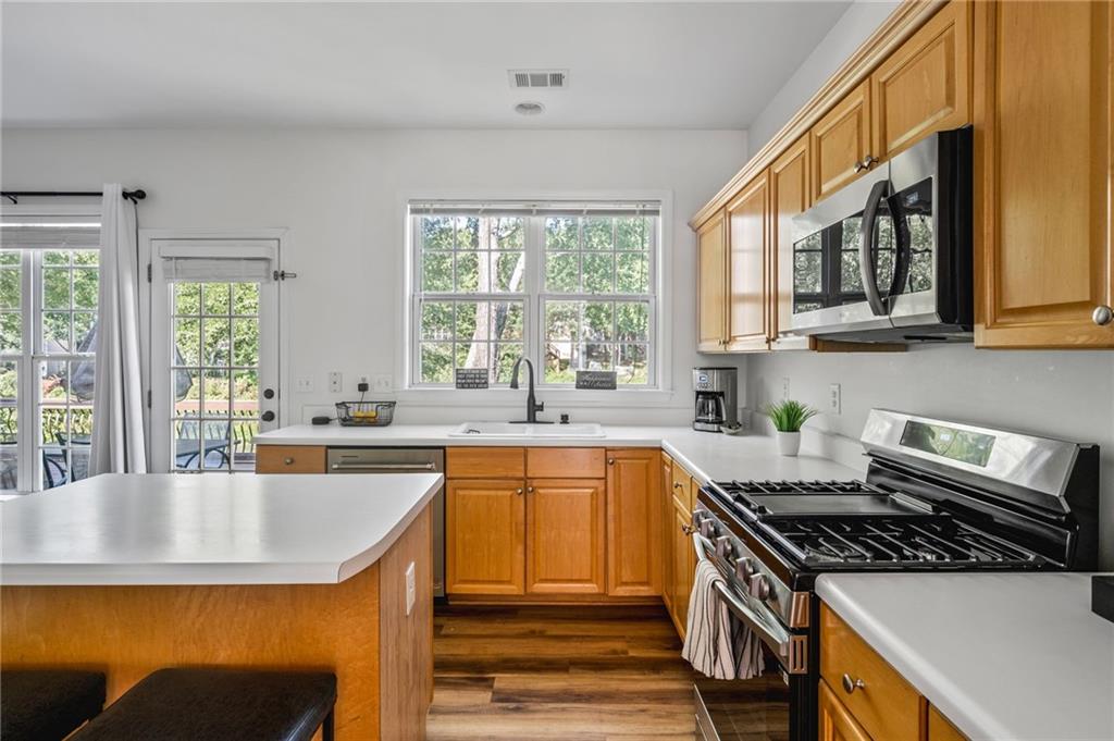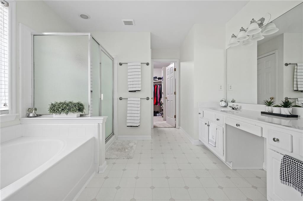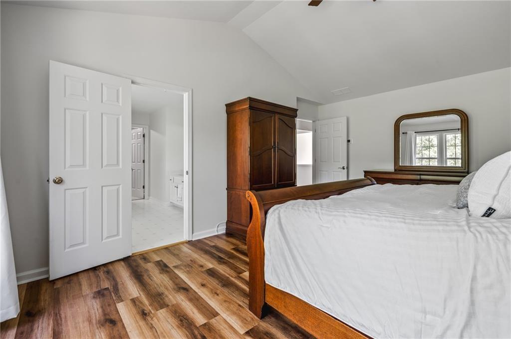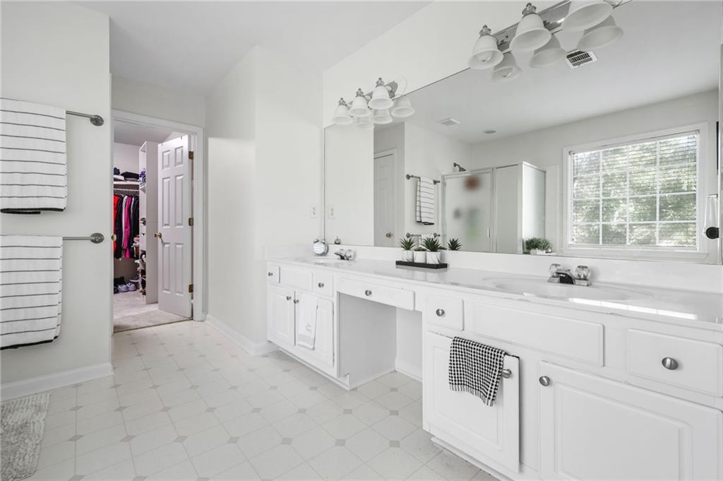 Waterfront Living at Its Finest and features a HUGE finished basement! Original owner who has loved living in this community over 2 decades!! Discover the perfect blend of tranquility and convenience in this stunning move-in ready home, nestled on a peaceful cul-de-sac with breathtaking views of a private natural habitat. Enjoy the beauty of nature from your own backyard while still being just minutes from GA 400, The Collection, Halcyon, top-rated schools, and the Big Creek Greenway. Step inside to an open and airy floor plan flooded with natural light. The main level boasts elegant floors, formal living and dining rooms, and space to entertain guests. The bright, beautiful kitchen features stained cabinetry, white countertops, and a sunny breakfast area that flows seamlessly into the cozy family room—complete with a fireplace and a wall of windows showcasing serene lake views. Upstairs, the expansive primary suite is your personal retreat with vaulted ceilings, a large walk-in closet, and a luxurious en-suite bath offering dual vanities, a soaking tub, and separate tile shower. There are three additional bedrooms and a bath and a walk-in laundry room completing the second level of the home. The finished daylight basement is an entertainer’s dream featuring a game or media areas, and room for a private bedroom—ideal for guests or future use as a gym, home theater, or in-law suite. The space offers flexible potential. Step outside to enjoy fantastic oversized deck off the main level and a patio with custom pavers situated steps away from the waterfront. These are perfect areas for relaxing or entertaining as you take in stunning lakefront sunsets and daily visits from ducks, turtles, herons, and more. This is your rare chance to own a waterfront oasis in a prime location. Don't miss this fantastic home!