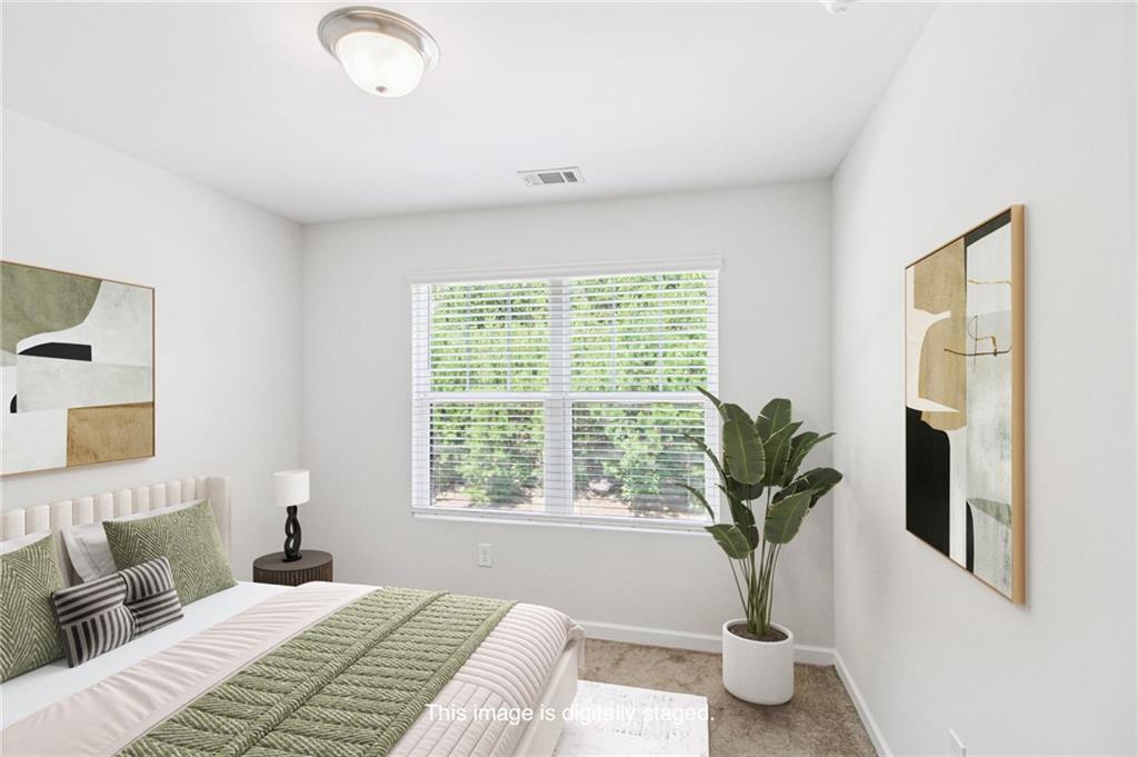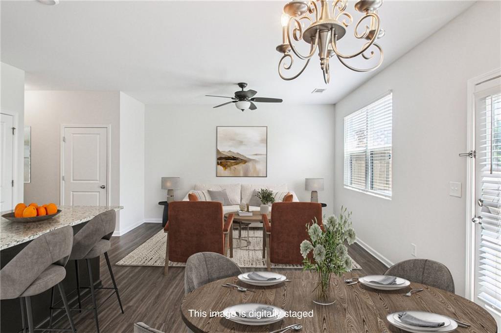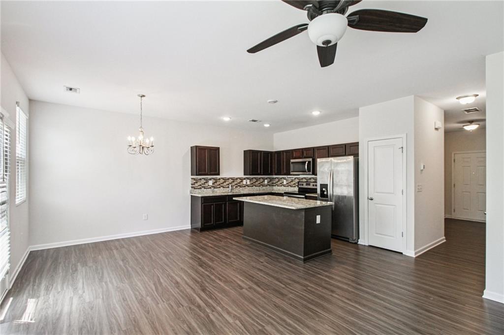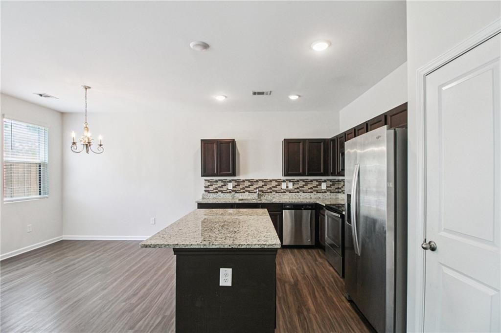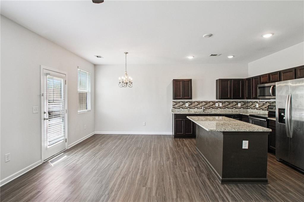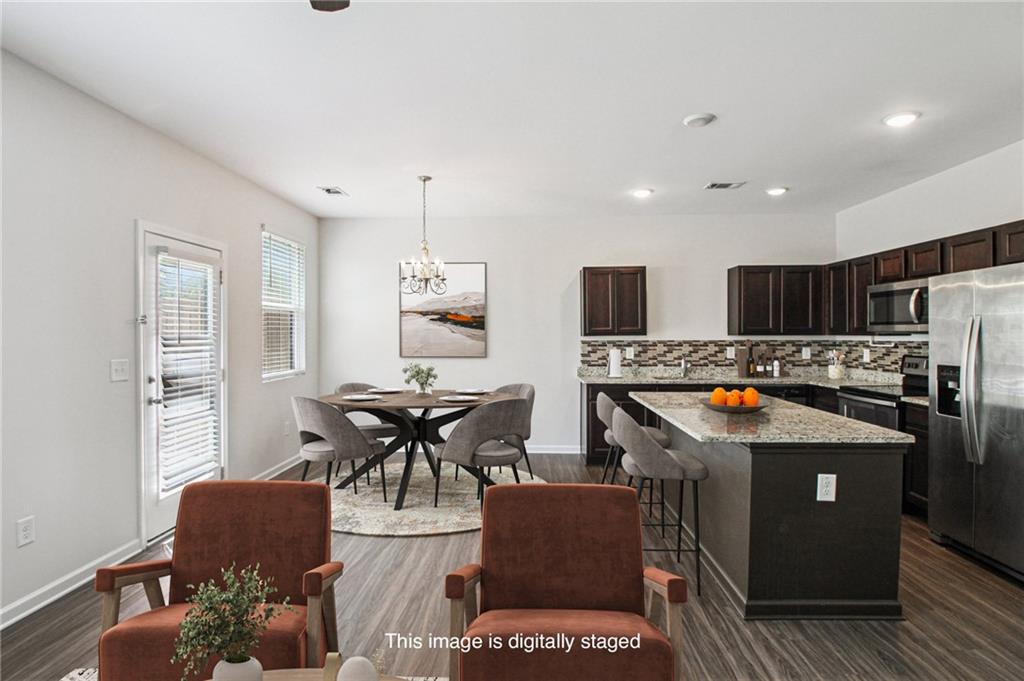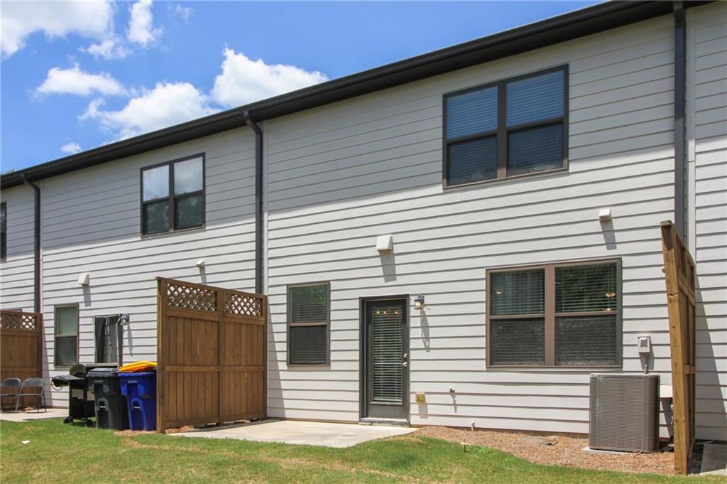 Newer Townhome with Contemporary Design Features throughout and Lots of Natural Light. Open Concept Kitchen features Stainless Steel Appliances, 9-foot Ceilings, Espresso Cabinetry, Granite Countertops, Center Island, Large Pantry and Overlooks the Family Room. Breakfast area opens to a private back patio. Great for gathering with family and friends. Half bath on main. Upstairs features a spacious owner's suite with a walk-in closet and a shower. The two additional bedrooms share a spacious hall full bath. Fresh interior paint throughout. Enjoy the private views of the wooded area in the back. Single-car garage and driveway as well as plenty of room for additional parking. Great location, convenient to Truist Park, Smyrna Market Village, West Midtown, and The Silver Comet Trail! Tucked away in a quiet, residential area just minutes down the road from the Publix shopping center. Community includes a Swimming Pool and a Cabana. All kitchen appliances and washer and dryer included.